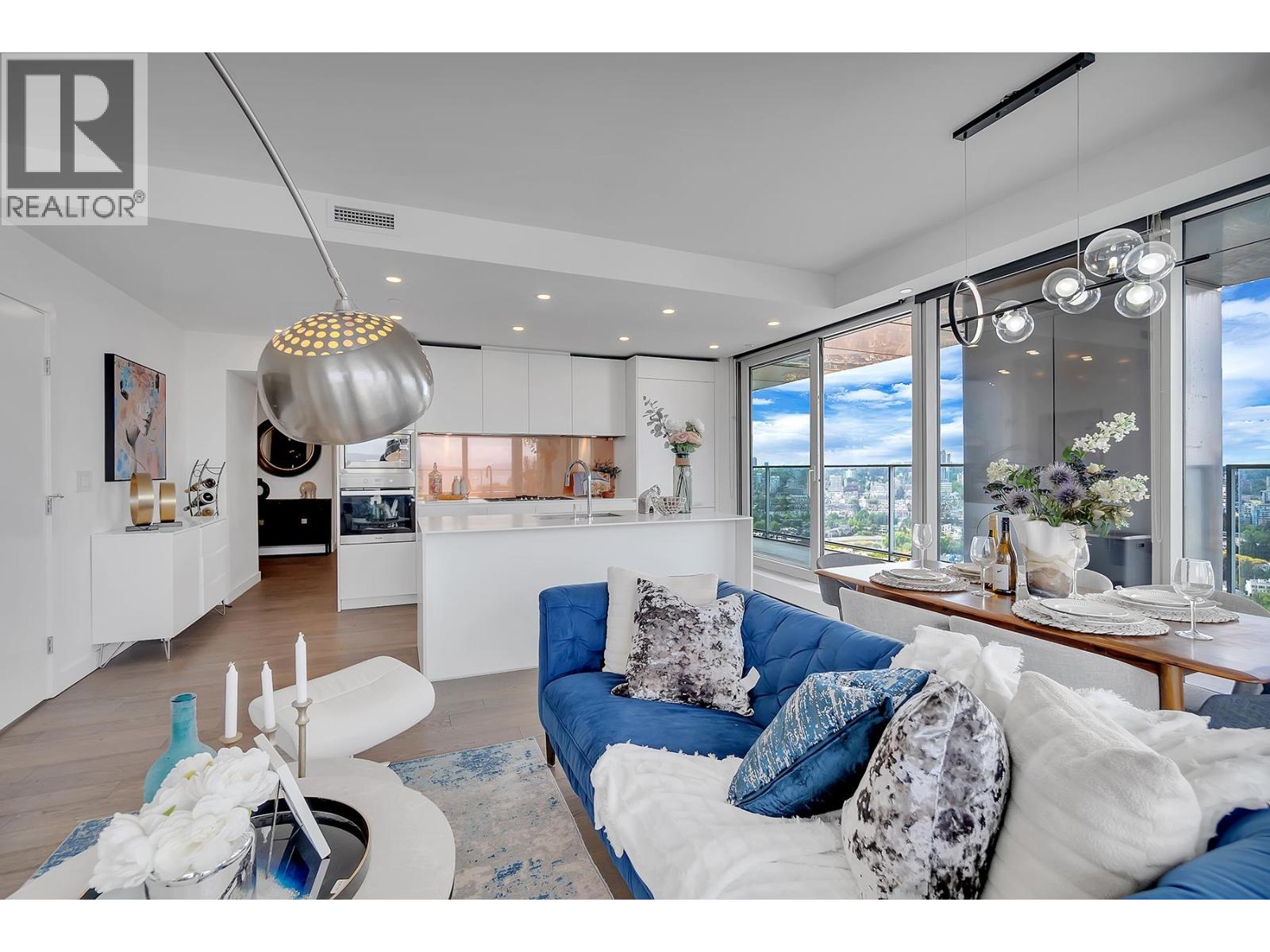 Experience unparalleled luxury in this stunning Vancouver House corner estate, an architectural masterpiece by Bjarke Ingels redefining the city skyline. This iconic 3-bedroom home offers 1,572 sqft of refined interiors and nearly 500 sqft of outdoor space with sweeping southwest views of English Bay, the mountains, Granville Island, and Stanley Park, perfect for sunsets and summer fireworks. The chef´s kitchen features a copper backsplash, Italian cabinetry, and Miele appliances & includes a gas cooktop and wine fridge. Enjoy exclusive access to world-class amenities including a 24-hour concierge, a 25-meter heated outdoor pool, hot tub, state-of-the-art fitness and wellness Centre, golf simulator, and BMW car share program. A must see before it is gone. Open House Sep 28 Sunday 1-3 pm (id:58403)