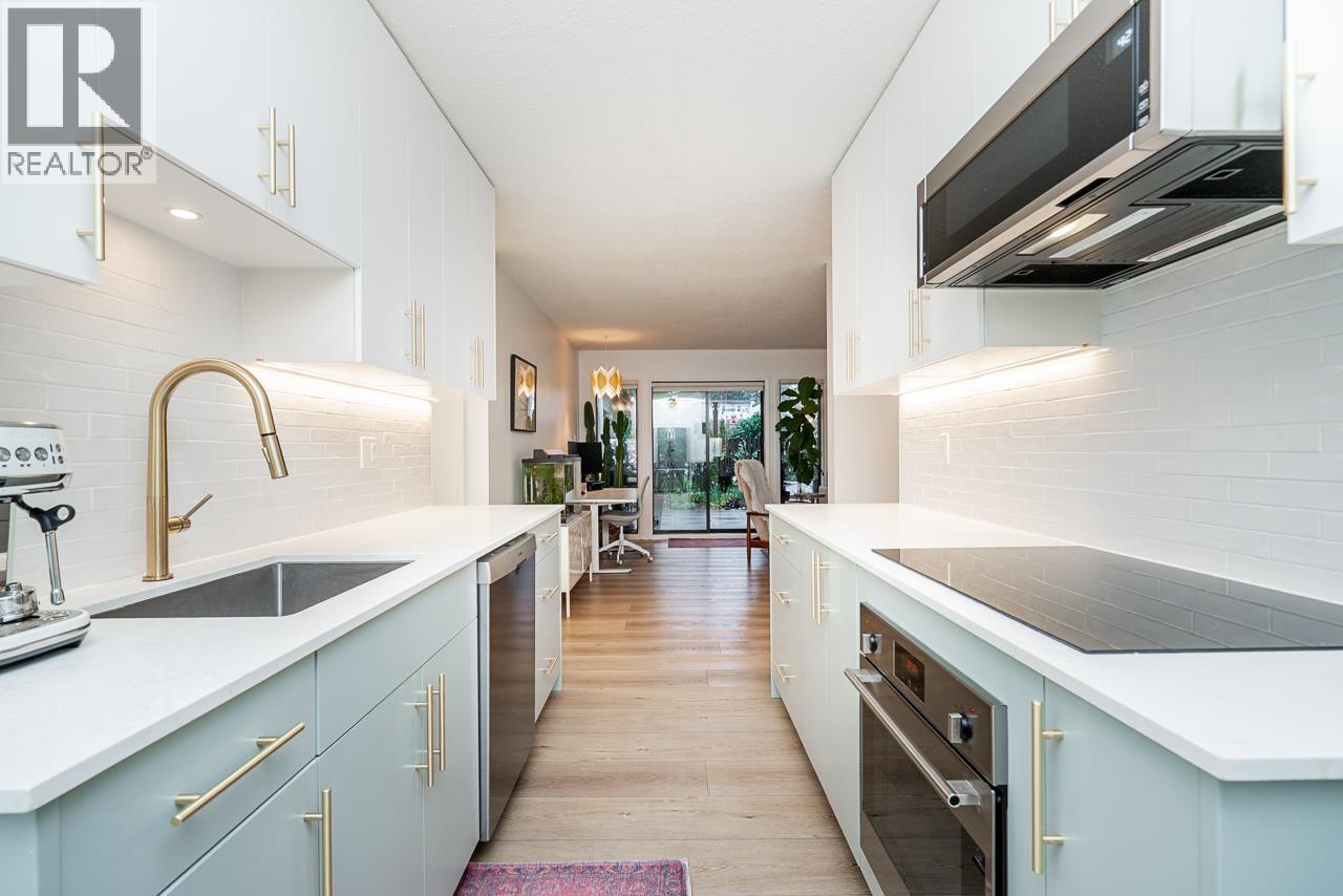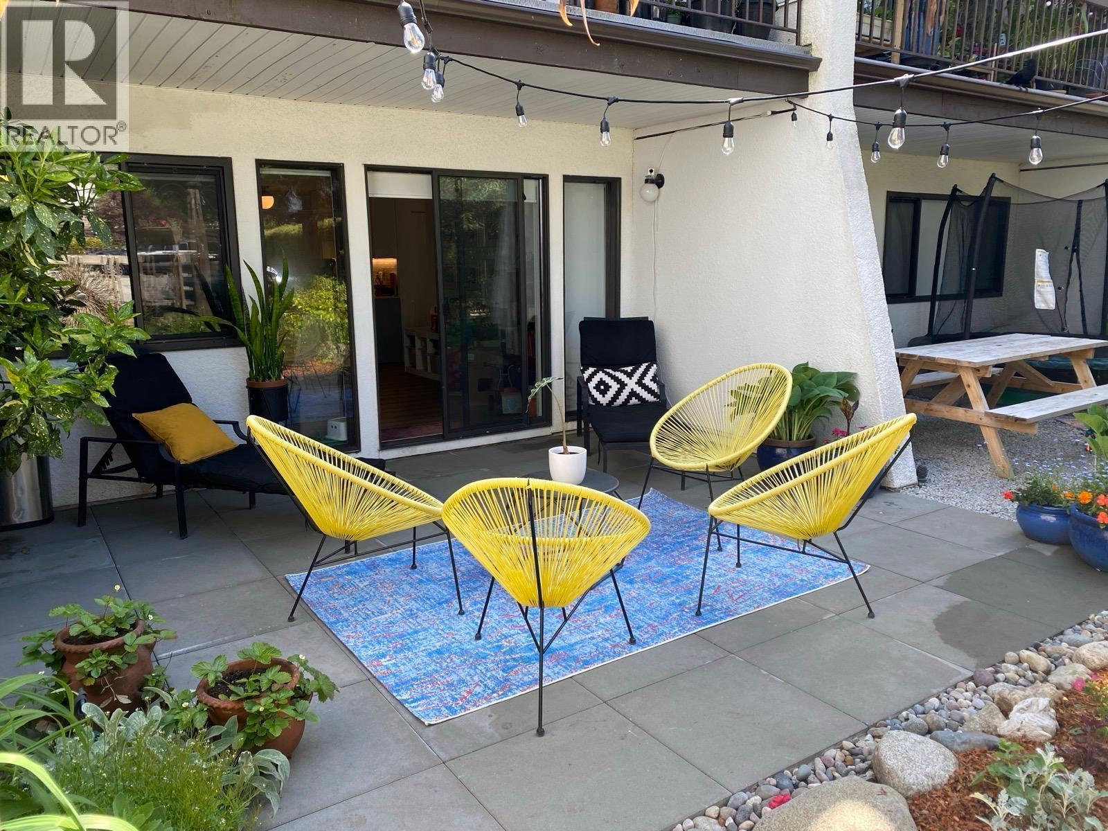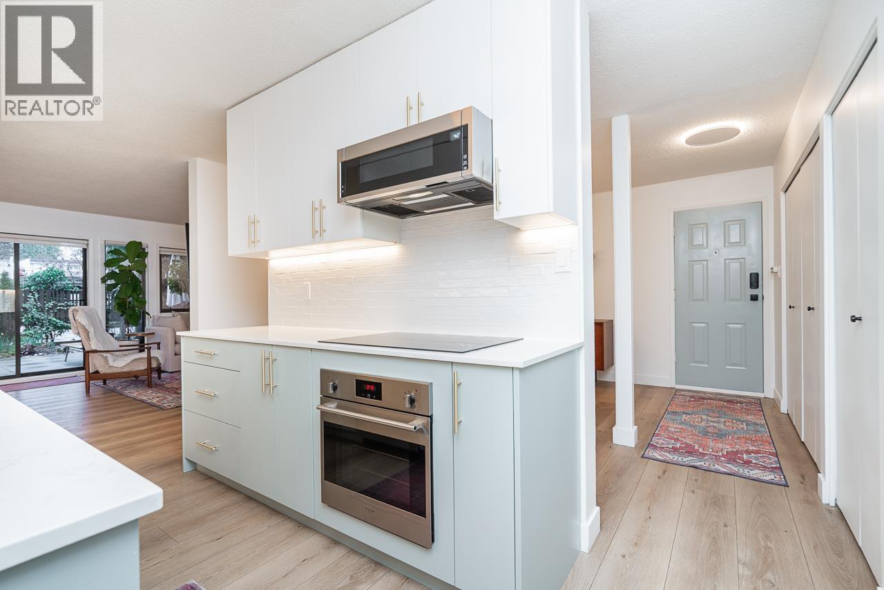 Stunning & fully renovated! This 2BR/1.5BA one-level townhouse features a massive 800+ sqft walk-out patio - the ultimate space for summer entertaining. The interior offers a custom-built kitchen with a huge pantry, Bosch kitchen appliances, in-suite laundry, and abundant storage. The primary bedroom easily accommodates a king-size bed and a desk., has a walk-in closet and 2 piece ensuite. The main bathroom features double sinks along with a gorgeous tub/shower. Located in a quiet, proactive, and pet-friendly complex boasting an outdoor & kiddie pool, clubhouse, and a new roof. Ideally situated steps from Montecito Elmntry & Burnaby Mntn Golf Course. Commuting is a breeze with easy access to the Millennium Line, Hwy 1, walking trails, and Sungiven Foods. OH Sat, March 14th 2 - 4 PM (id:58403)