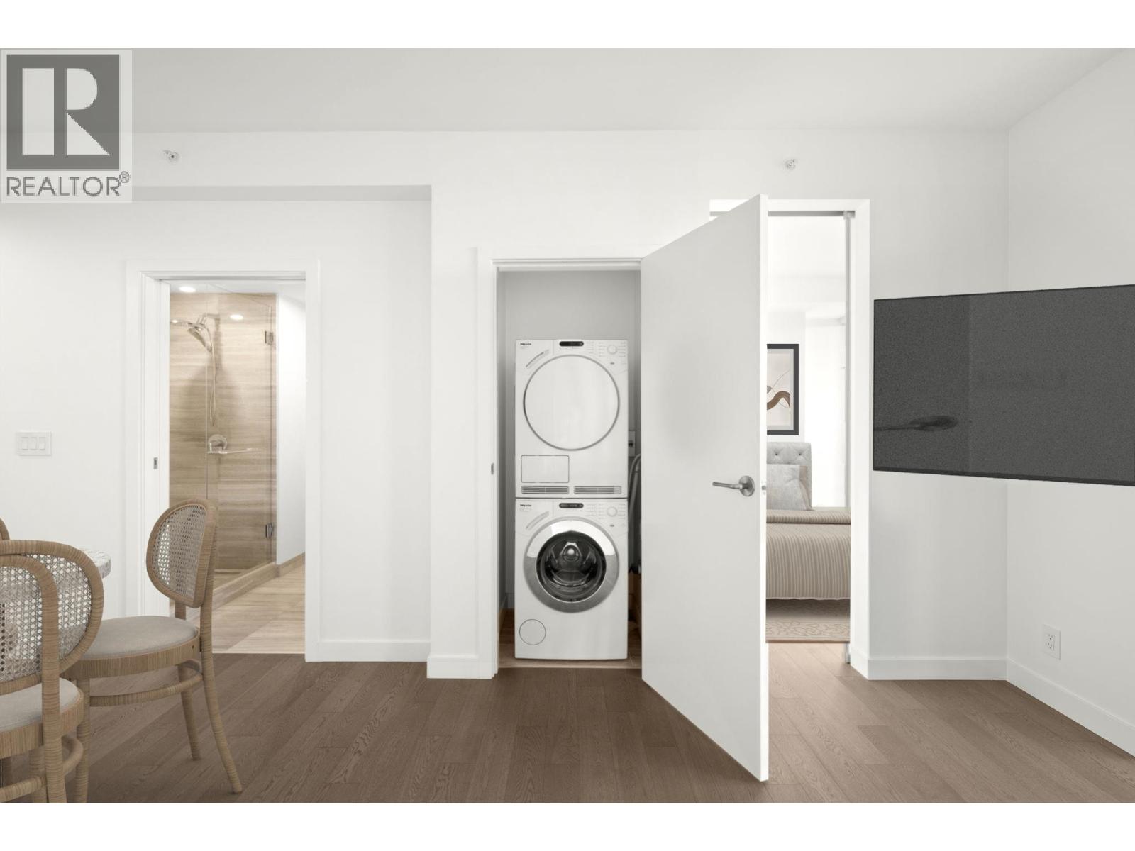 Welcome to Vancouver´s most distinguished buildings designed by Bjarke Ingels, Vancouver House. This incredible 2-bedroom, 1 bathroom unit offers sweeping views of False Creek, the North Shore Mountains, and the city skyline. Expansive living and dining space features engineered hardwood floors, expansive floor to ceiling windows and air-conditioning for comfort. Kitchen includes Corian countertops, copper backsplash, stainless-steel Miele appliances and a large kitchen island perfect for entertaining family & friends. Over 10,000SF for amenities including a heated-lap pool, golf simulator, HOUSE Concept Fitness Centre and 24-hour concierge service. 1 Parking Stall + 1 Storage Locker Included (id:58403)