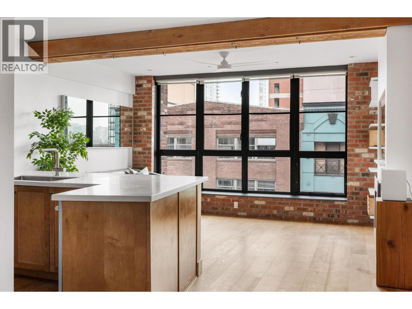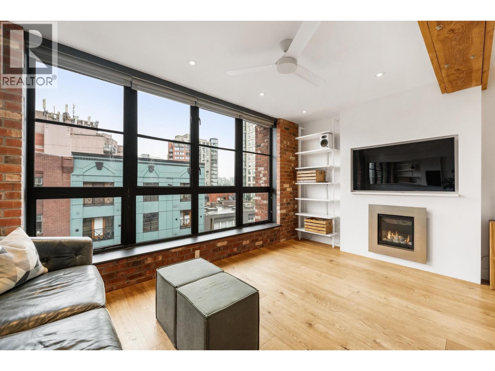 Live in a true piece of Vancouver history in the heart of Yaletown´s warehouse district. This striking heritage conversion showcases its original character with exposed brick walls and architectural beams, paired with wide plank white oak floors and a sleek gas fireplace with built-in TV. A full wall of floor-to-ceiling windows floods the home with natural light. The open kitchen works as well as it looks, with an eating bar, oversized sink, stainless steel appliances, and a gas range with griddle, all finished with high-end Corian countertops. Generous bedrooms, full sized laundry and a beautiful updated bathroom. Step outside to David Lam Park, the seawall, the Canada Line and some of the city´s best dining, all just a few blocks away. Includes parking and storage. (id:58403)