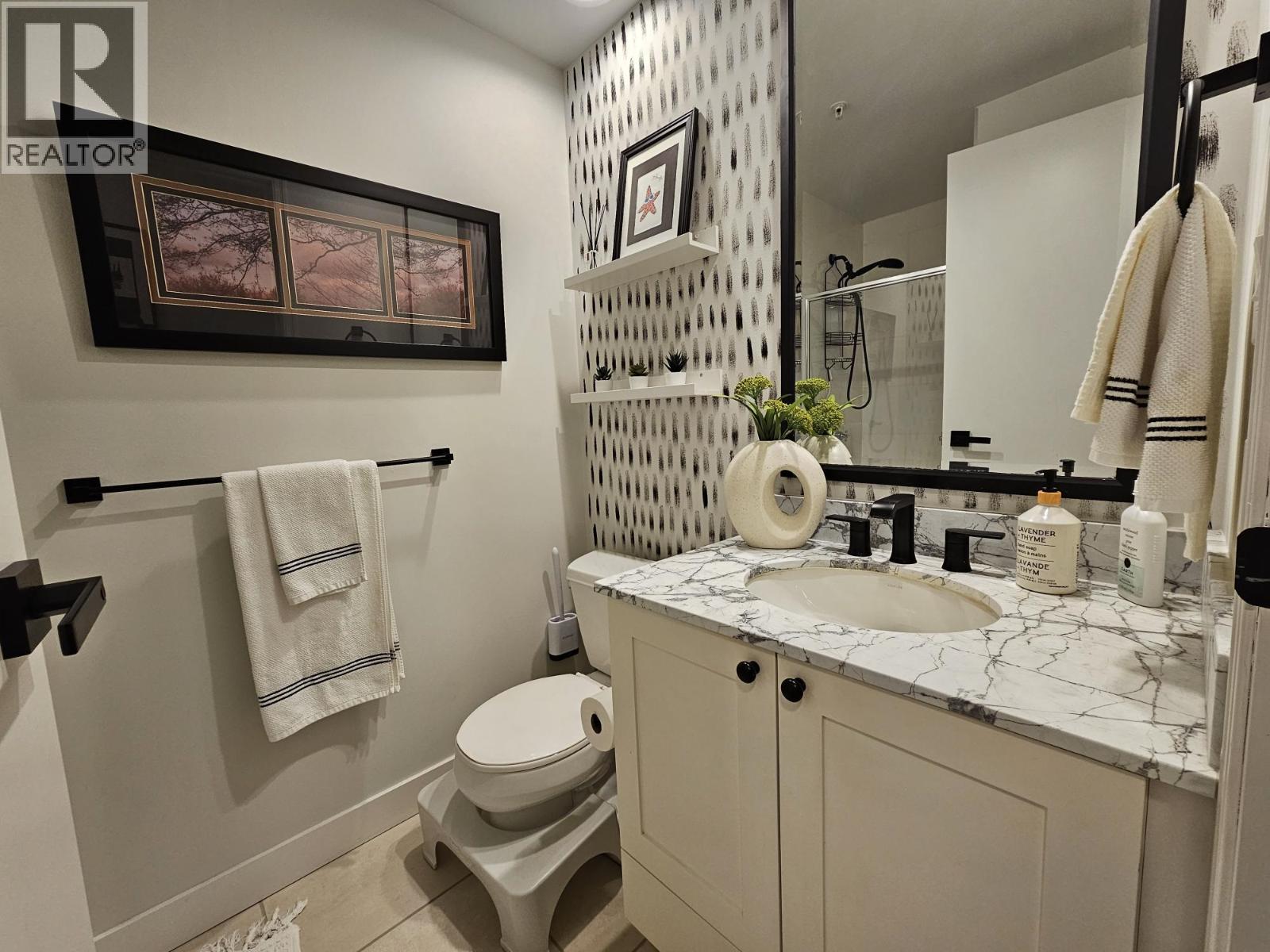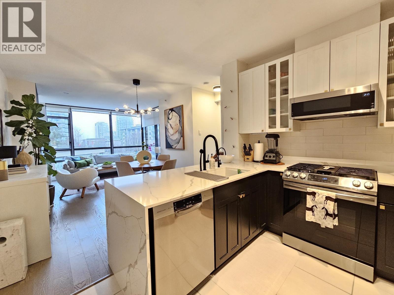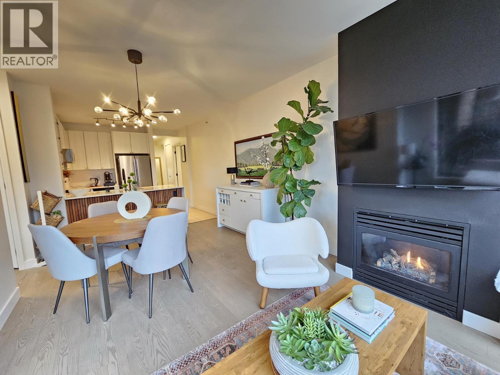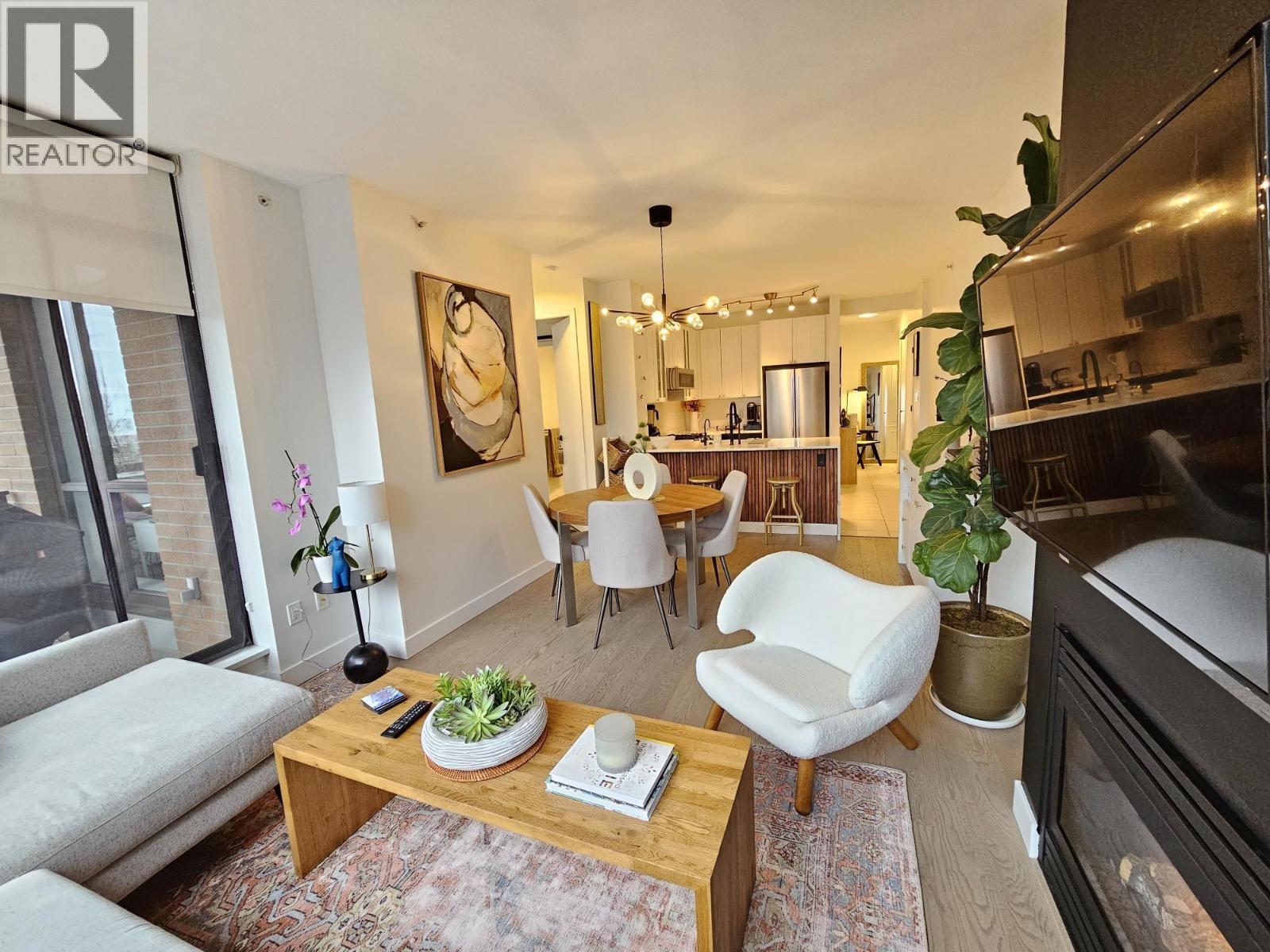 Wake up to sunshine in this bright SE corner suite at the Georgie Award-winning One Park Lane. This beautifully renovated 2-bed, 2-bath home features 9' ceilings, an open-concept layout, and wide-plank engineered hardwood floors throughout. The stunning kitchen has been upgraded with a quartz waterfall island, gas range, and full stainless appliance package. The primary ensuite offers a soaker tub, separate glass shower, and marble counters. Cozy up by the gas fireplace in winter or step out to your private balcony with BBQ gas hookup in summer. The second bedroom works perfectly as a home office or guest room. Building amenities include a fully equipped gym, theatre room, and elegant lobby. One underground parking and storage included. Steps to the Shipyards, Lonsdale Quay and the Seabus. (id:58403)