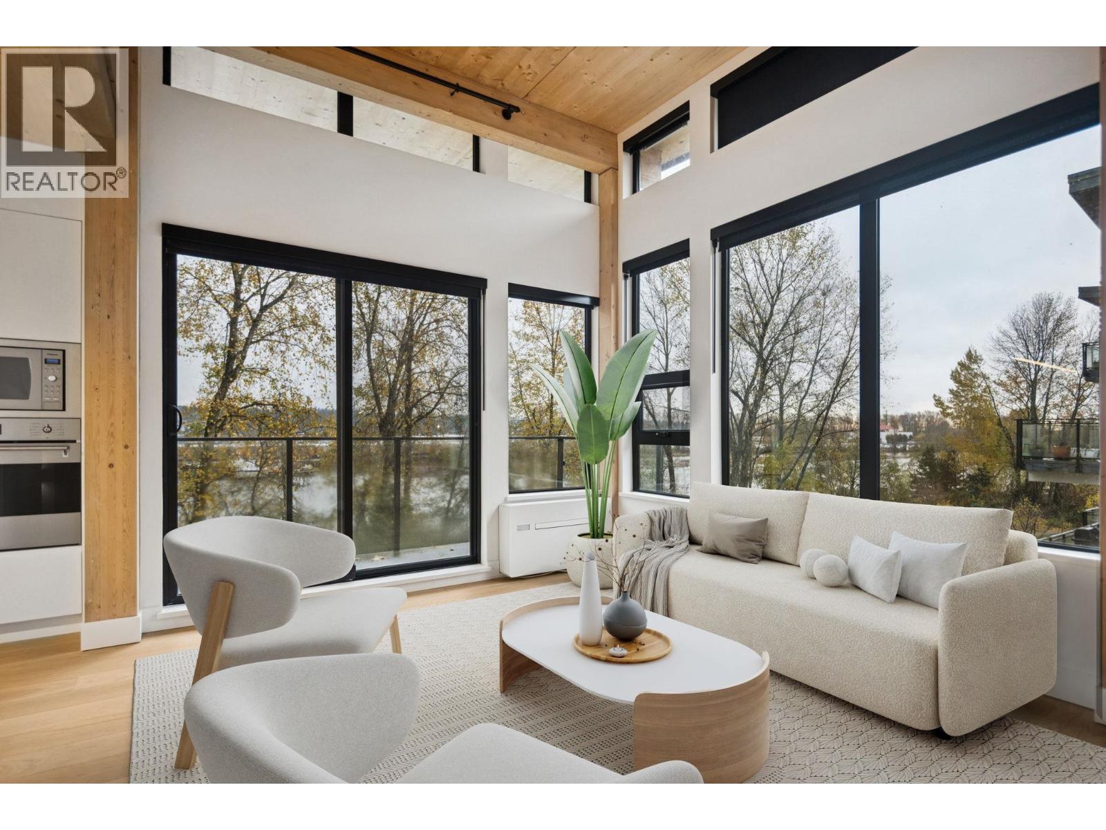 NEW PRICING & MOVE-IN READY! This 2-level, 1,526 SF 3 bed, 2 bath PENTHOUSE at Timber House by Aragon blends modern design with nature, featuring direct river views, exposed CLT walls/ceilings, skylights & a 435 SF private roof terrace with outdoor kitchen (BBQ, sink, fridge) & stunning riverfront outlook. Interiors include wide-plank oak floors, A/C & a sleek kitchen with F&P + Smeg appliances, quartz counters & built-in pantry. Spa-style baths offer heated floors & floating vanities. Amenities: landscaped courtyard, gym, BBQ area, dog wash, 2 parking (EV-ready opt) & storage. Steps to the boardwalk, 12 min to DT New West, 30 to YVR, 35 to DT Van. Sales Centre OPEN Saturday/Sunday and Mondays from 1 to 4 pm or by appointment. (id:58403)