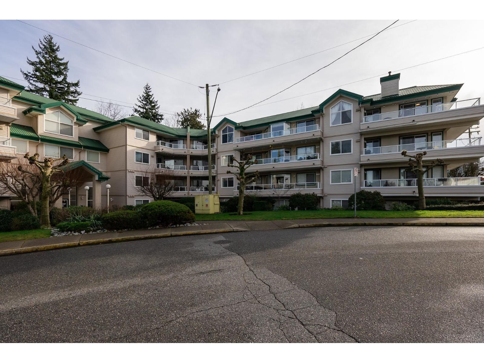 Welcome home to the northwest facing penthouse in Central Abbotsford's 'The Fairlane' building! This oversized two-bedroom and two-bathroom corner suite offers a very efficient, open-concept 978 square foot layout with generous room sizes throughout including a dreamy primary bedroom with vaulted ceilings, a walkthrough closet and an ensuite, and the second bedroom on the opposite side of the suite to provide plenty of privacy. Other great features include a huge 236 square foot wrap-around patio, a cozy gas fireplace (gas included in the maintenance fees!), an in-suite laundry room, plenty of updates throughout, and one parking stall. Situated in a prime location with Sevenoaks Shopping Centre, Mill Lake, shops, restaurants, banks, and all of your essential amenities within walking distance. Open House: Saturday, March 7th from 2-4pm. (id:58403)