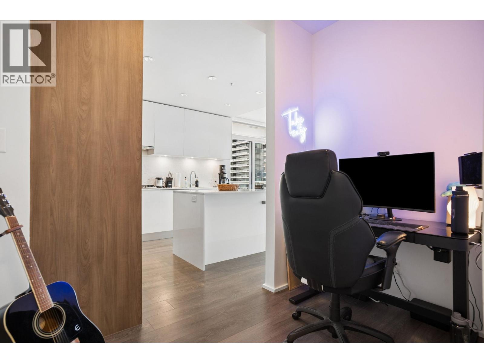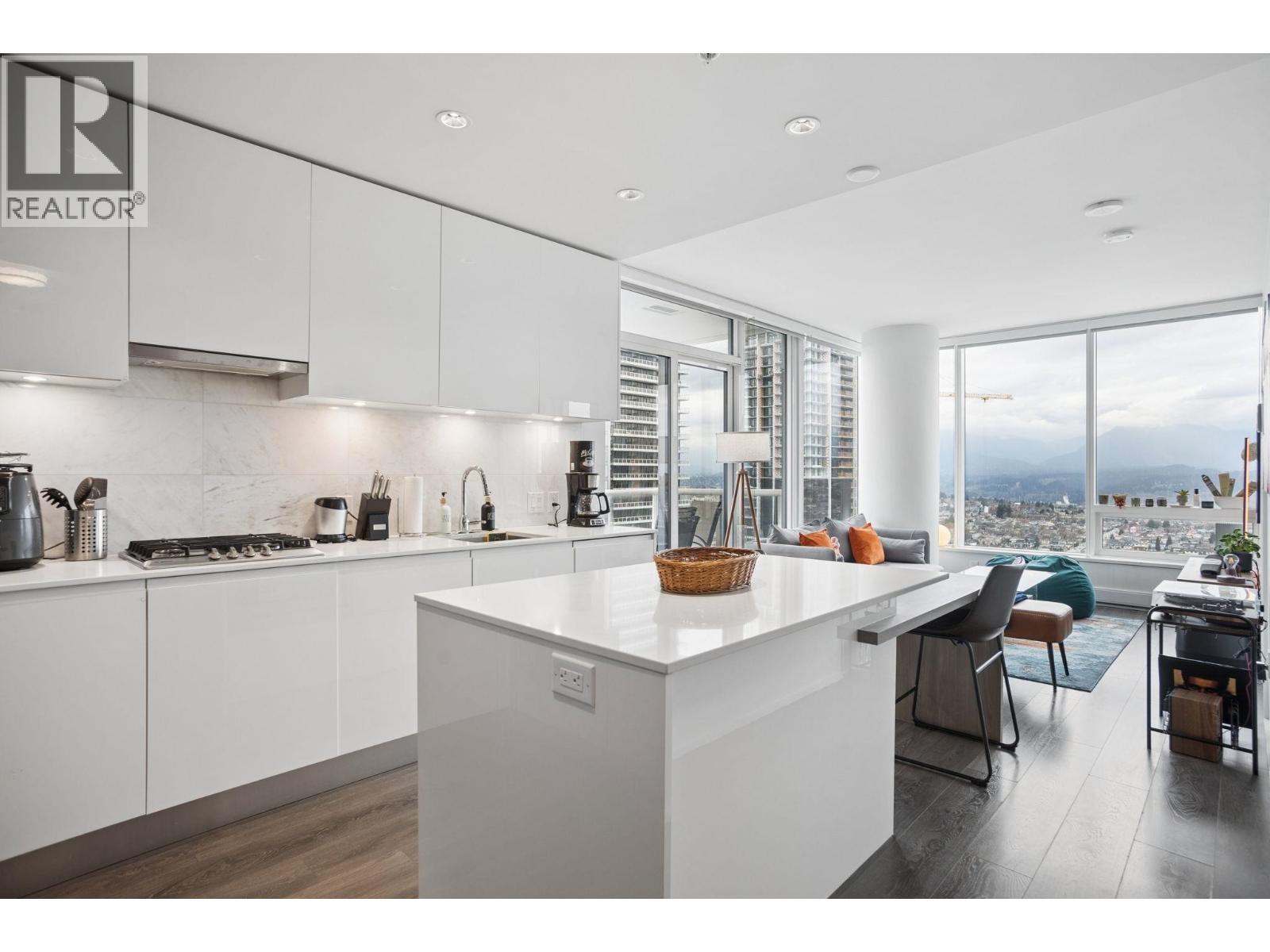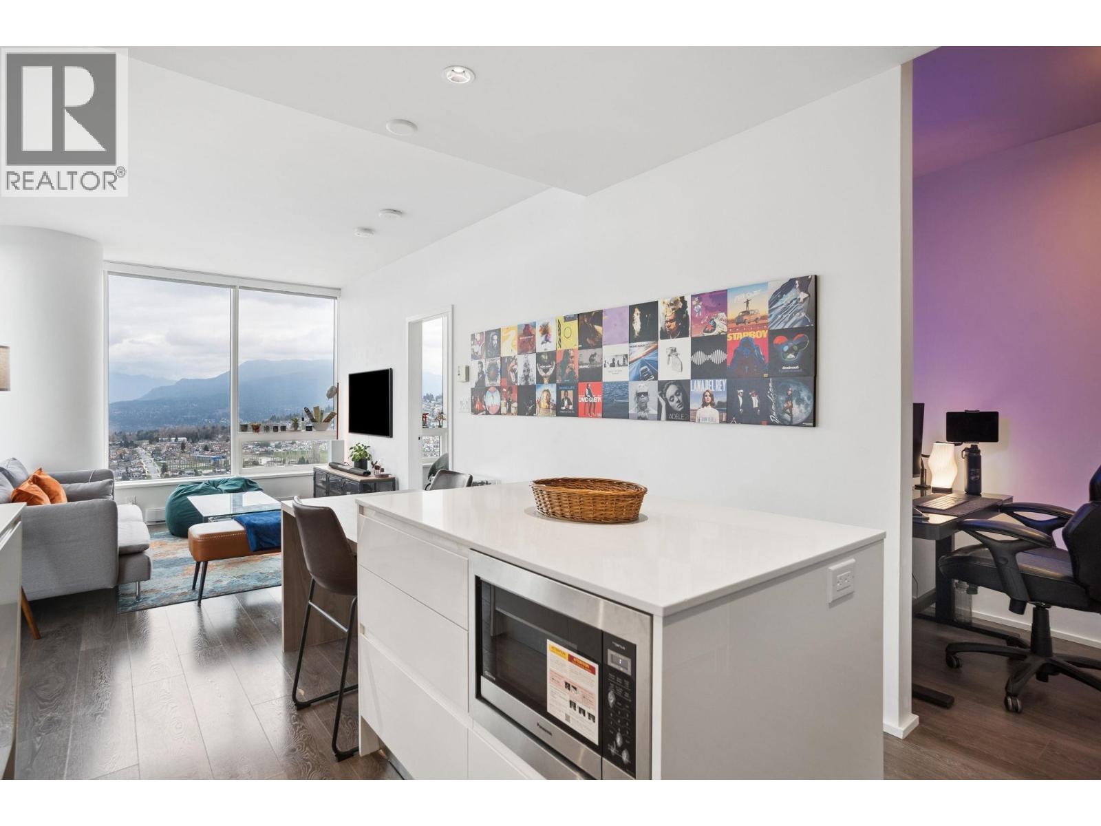STUNNING NORTHWEST CITY, MOUNTAIN & WATER VIEWS from this corner 2 bedroom + nook, 2 bathroom skyhome. Appreciate an open concept floorplan, centred around a gourmet kitchen with floor to ceiling cabinets, integrated appliances (including gas cooktop) and kitchen island...flowing on laminate flooring into the dining/living rooms punctuated by oversized windows leading onto the oversized patio. The spacious primary suite features a walk-in-closet and is separated from the second bedroom for extra privacy. Appreciate a separate work space/office setup as well. All of this, with the city's best shopping, eateries, entertainment and transit at your doorstep! 1 parking & 1 storage. ***OPEN HOUSE: SAT APRIL 11 & SUN APRIL 12 2-4PM*** (id:58403)