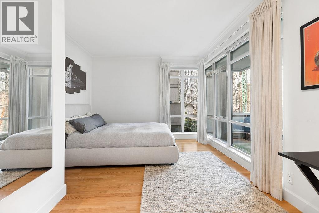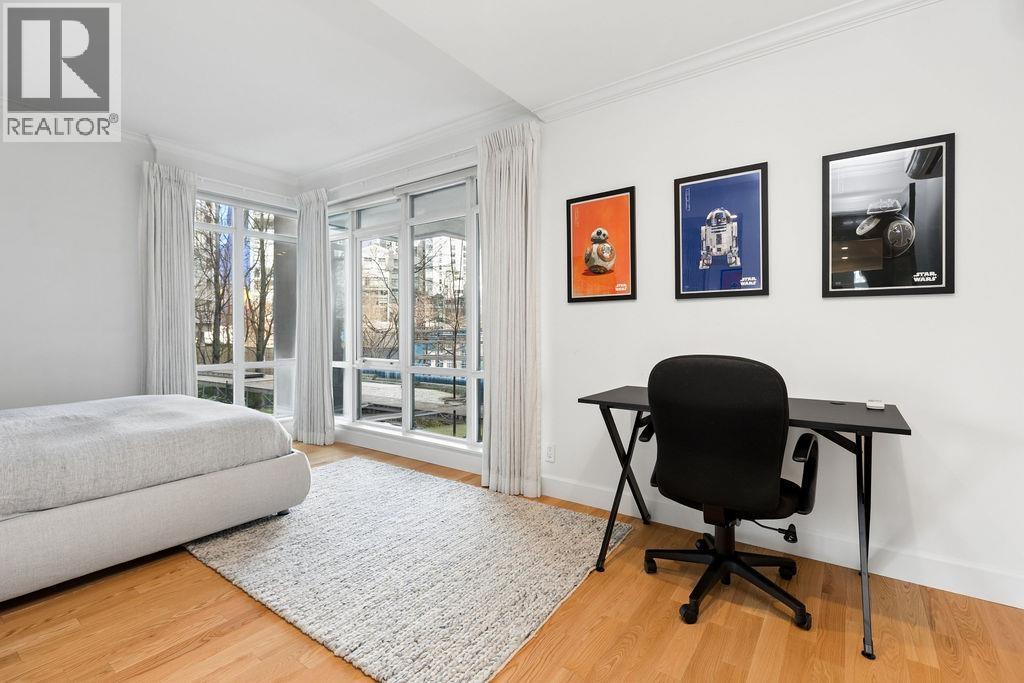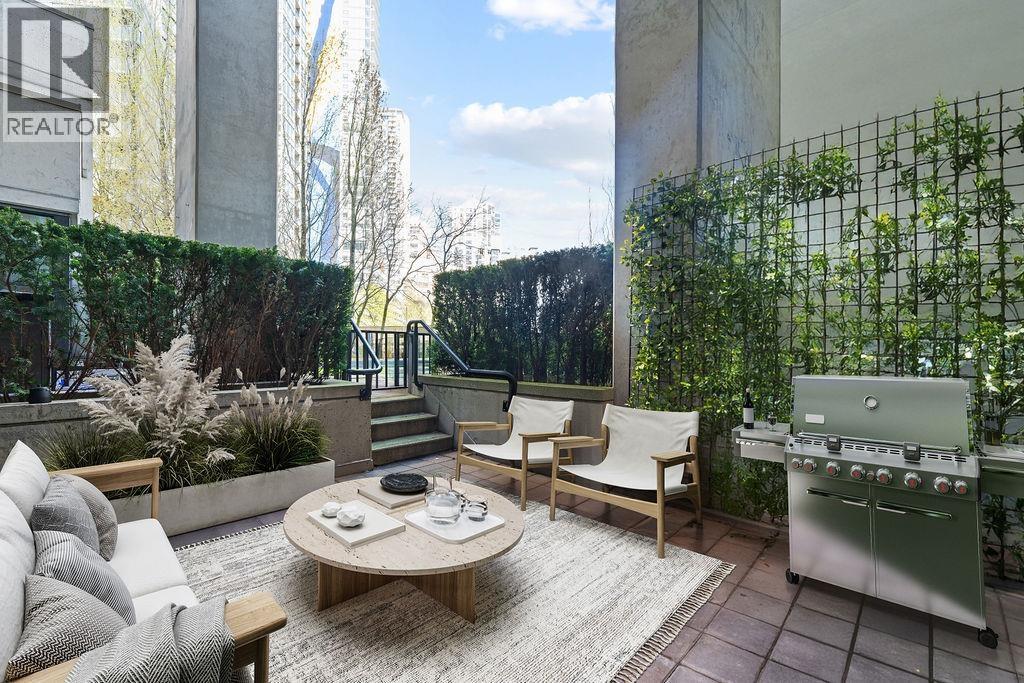 An exceptional luxury residence at Beach Crescent in the heart of Yaletown, ideally positioned directly across from George Wainborn Park and just steps to the seawall and False Creek. This rare THREE Bedroom, 2.5-bathroom TWO-Level home features a private, street-level entrance and two walk-out garden terraces offering serene views of the water, marina, and Granville Island off of the primary.. Designed for elevated living with three bedrooms up, the home showcases high-end materials, gourmet kitchen, and a refined primary suite. Enjoy resort-style amenities including concierge service, A/C, pool, hot tub, racquetball courts, guest suite, boardroom, lounge with pool table, and TWO parking stalls. With the park and seawall as your front yard, this is Vancouver waterfront living at its finest. (id:58403)