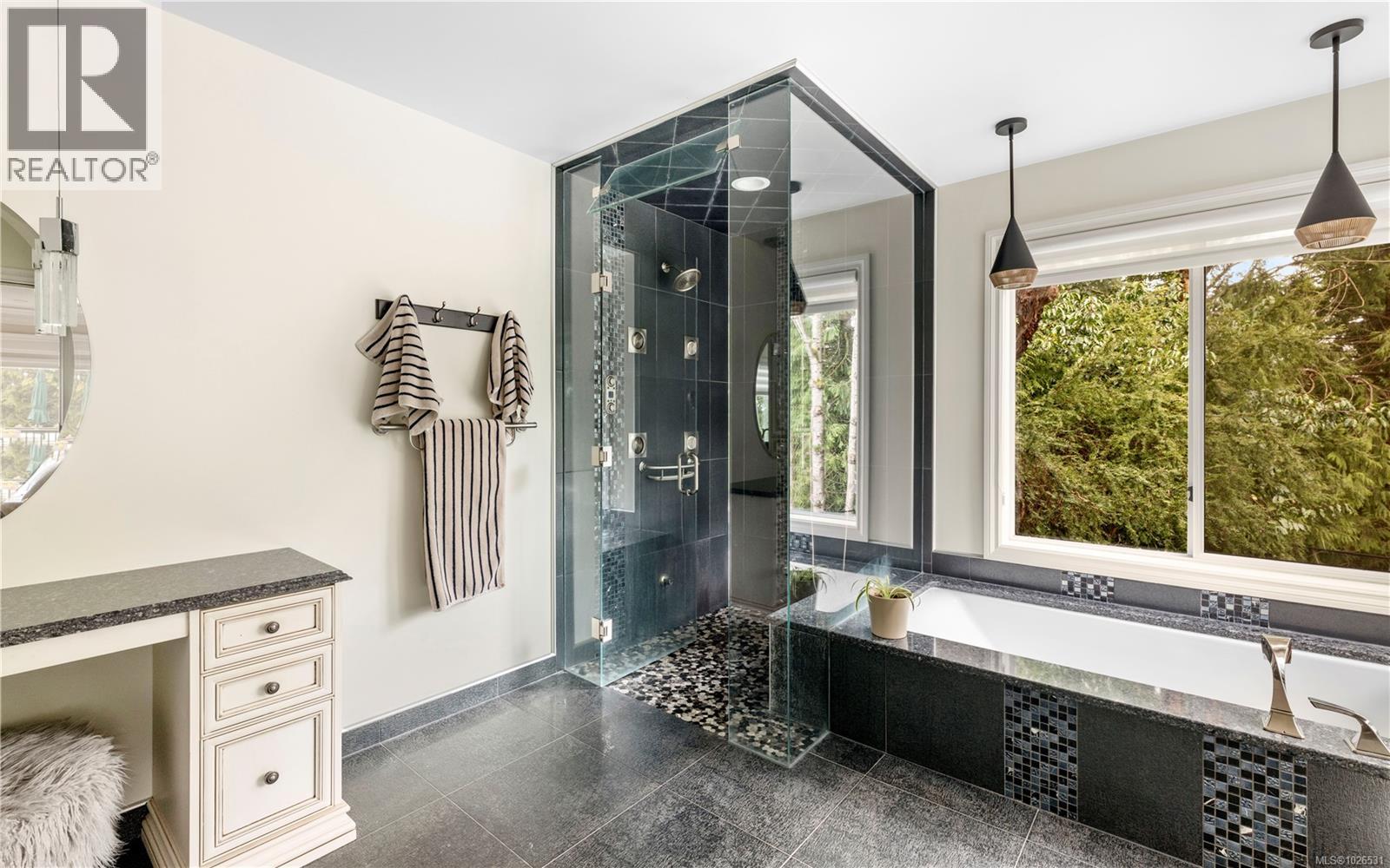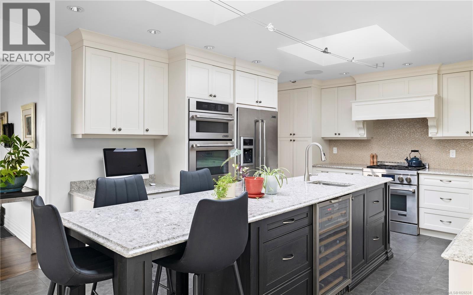 Tucked away on a quiet cul-de-sac in sought-after Cordova Bay, this updated West Coast residence offers nearly 4,000 sq ft of well-designed living space, with 4 bedrooms, 3 bathrooms, beautiful ocean views, and a gourmet kitchen with heated tile floors. Designed for comfort and entertaining, the main level features oak floors, vaulted ceilings, a striking stone fireplace, and expansive windows that fill the home with natural light. The gourmet kitchen is a standout, complete with ocean views, an oversized island, heated floors, and ample space for gathering. The sunny deck overlooks the private rear yard, where a water feature adds to the peaceful setting. The generous primary suite offers a place to unwind, with a walk-in closet and a 5-piece ensuite. Recent improvements include fresh paint, updated flooring, office and laundry renovations, new deck railings, a heat pump, and a new gas fireplace. Located close to schools, renowned beaches, lakes, hiking trails, and golf. (id:58403)