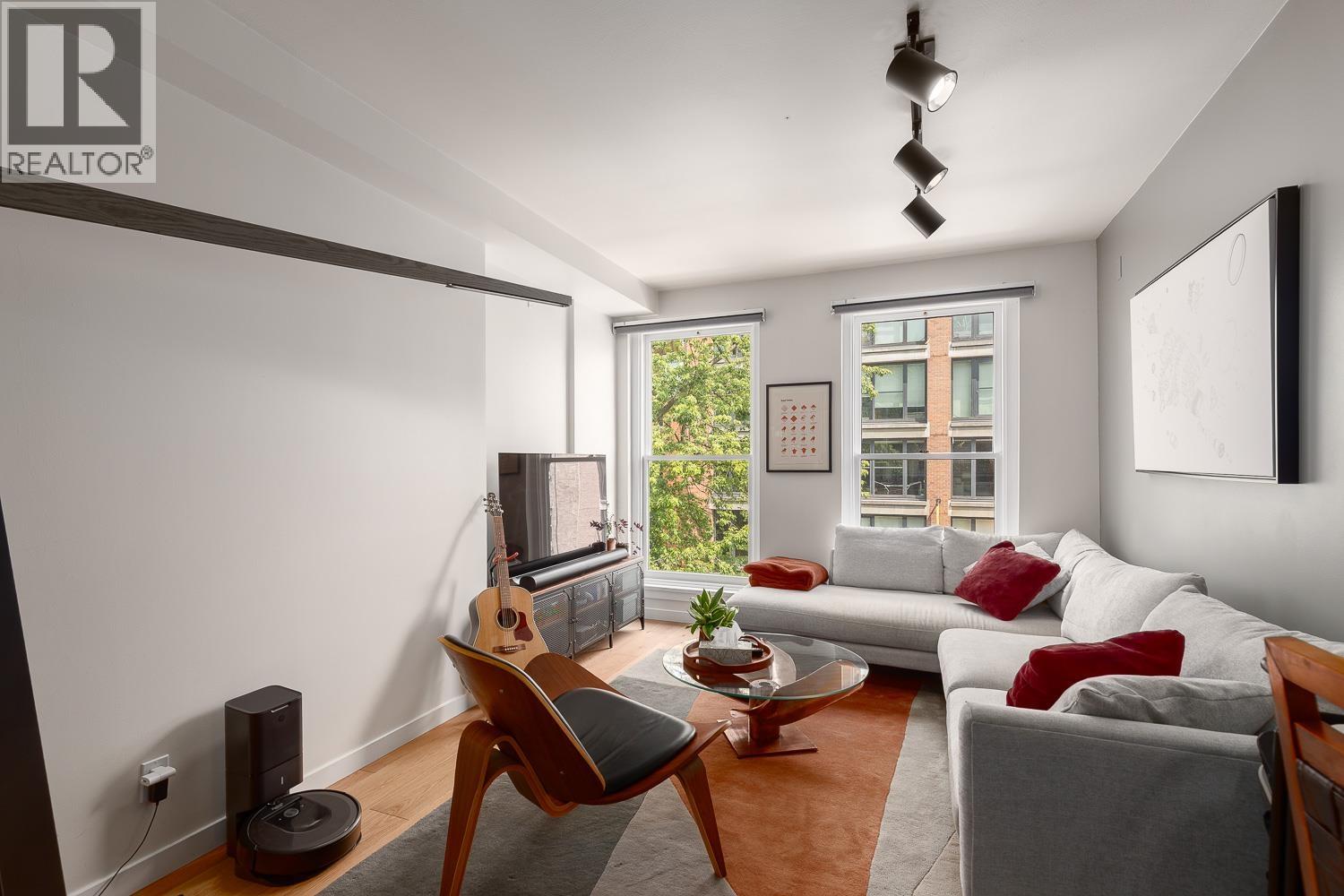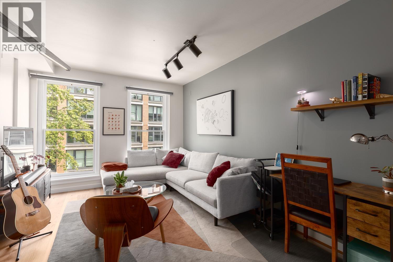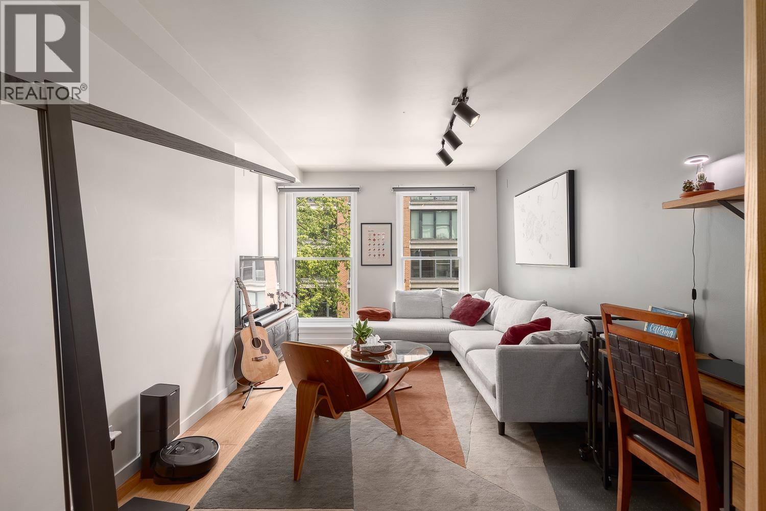 Discover the perfect balance of old-world charm and modern sophistication in this beautifully crafted residence at Terminus, one of Gastown's best boutique buildings! Set against a backdrop of cobblestone streets and historic architecture, this property offers over 900 SF of living space with integrated cabinetry, AC, and clever design and storage solutions throughout. The large windows allow natural light to flood the space highlighting the clean lines and polished finishes. The open-concept layout seamlessly connects the kitchen, dining, and living area. There is also a shared rooftop deck with fantastic views of the Vancouver skyline. Steps to the best restaurants, bars and hot spots in the City! 1 Parking included. Pets and rentals OK with restrictions. (id:58403)
