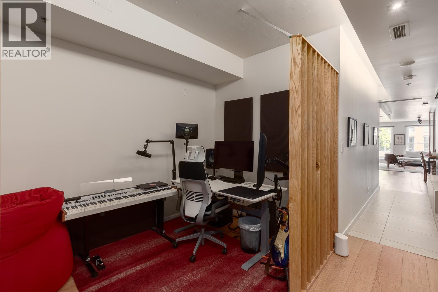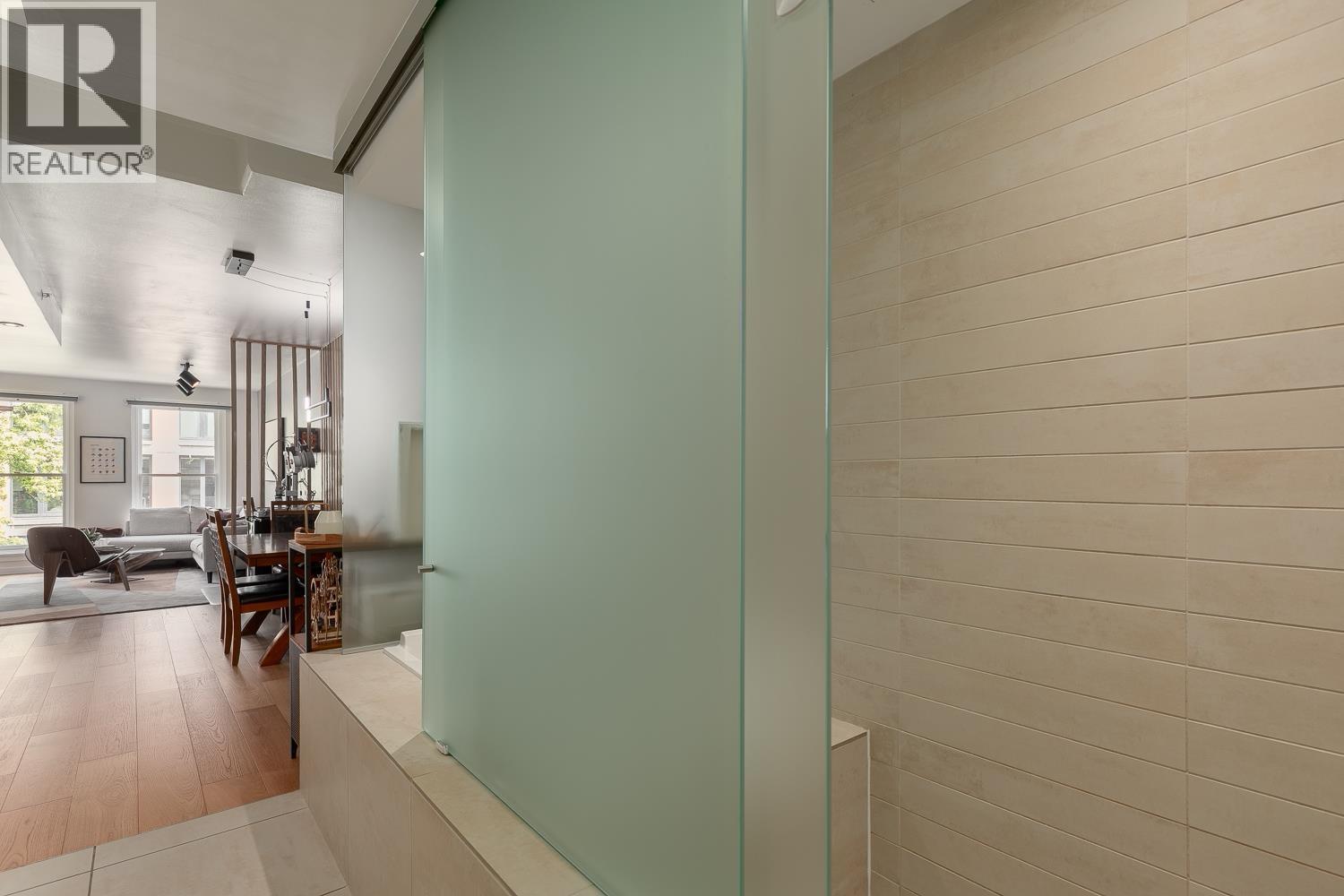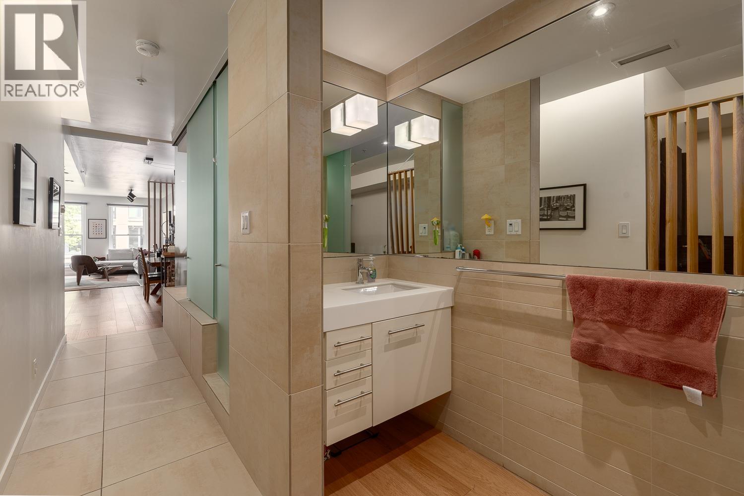 Discover the perfect balance of old-world charm and modern sophistication in this beautifully crafted residence at Terminus, one of Gastown's best boutique buildings! Set against a backdrop of cobblestone streets and historic architecture, this property offers over 900 SF of living space with integrated cabinetry, AC, and clever design and storage solutions throughout. The large windows allow natural light to flood the space highlighting the clean lines and polished finishes. The open-concept layout seamlessly connects the kitchen, dining, and living area. There is also a shared rooftop deck with fantastic views of the Vancouver skyline. Steps to the best restaurants, bars and hot spots in the City! 1 Parking included. Pets and rentals OK with restrictions. (id:58403)