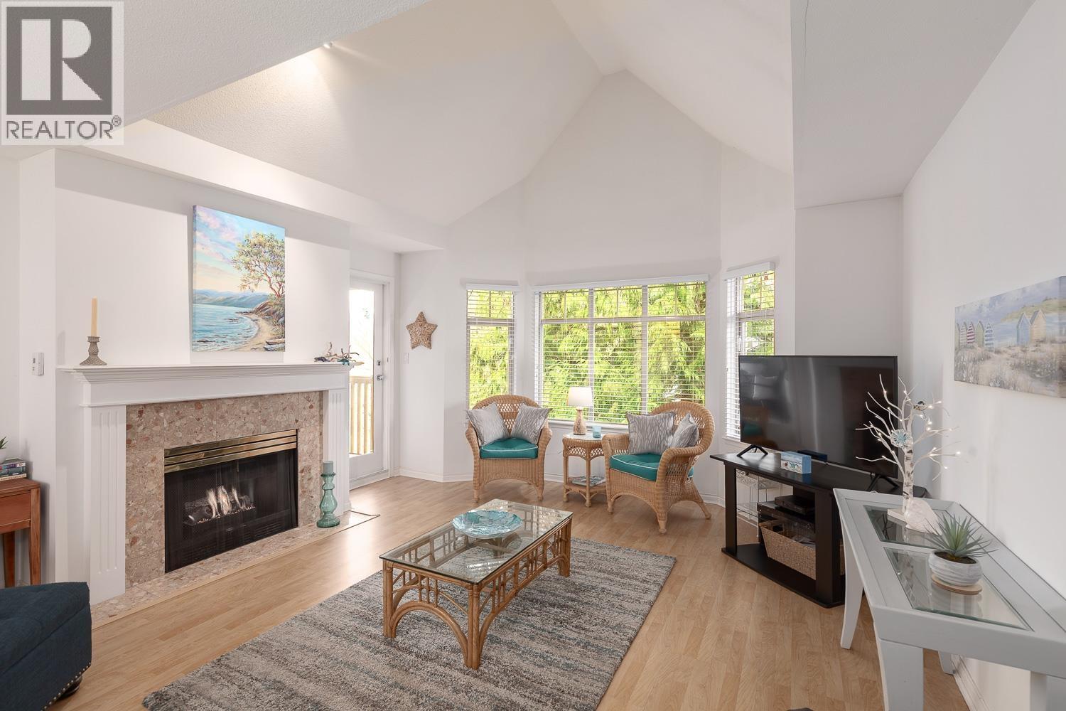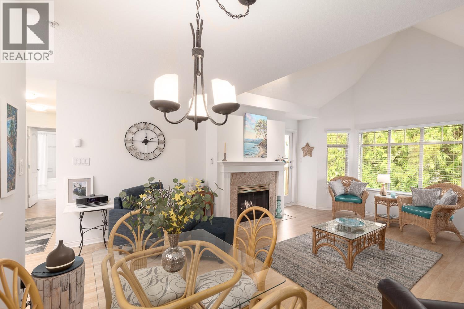 RARELY available - fully updated & elegantly appointed PENTHOUSE suite with vaulted ceilings on the highly desired quiet side of RIDGE PARK GARDENS. Spacious 985 Sq. Ft. floor plan with 2 bedrooms, 2 full bathrooms, gas fireplace, in-suite laundry, radiant in-floor heating and serene outlook to the North Shore mountains. 1 Parking stall, an extra large storage room and ample underground visitor parking. Exceptionally well-maintained 55+ strata that welcomes pets and is just steps to Wagg Park. Fabulous amenities including a guest suite, residents´ lounge with fireplace, kitchen, pool table, TV room, inner courtyard garden and workshop. Walking distance to all that you need in Central Lonsdale. It simply does not get any better than this! Visit realtor's website for video and floor plan. EASY TO SHOW BY APPOINTMENT. (id:58403)