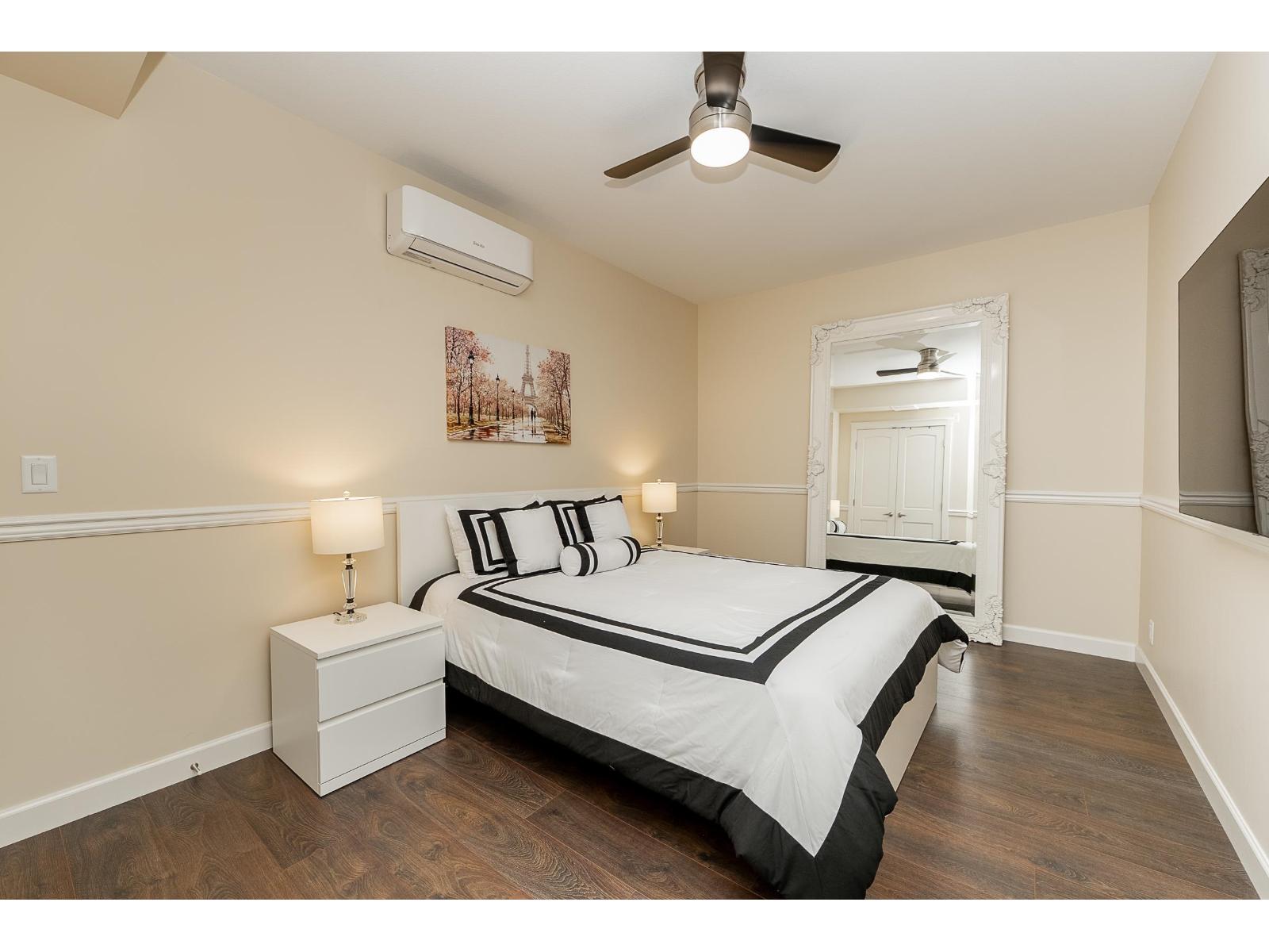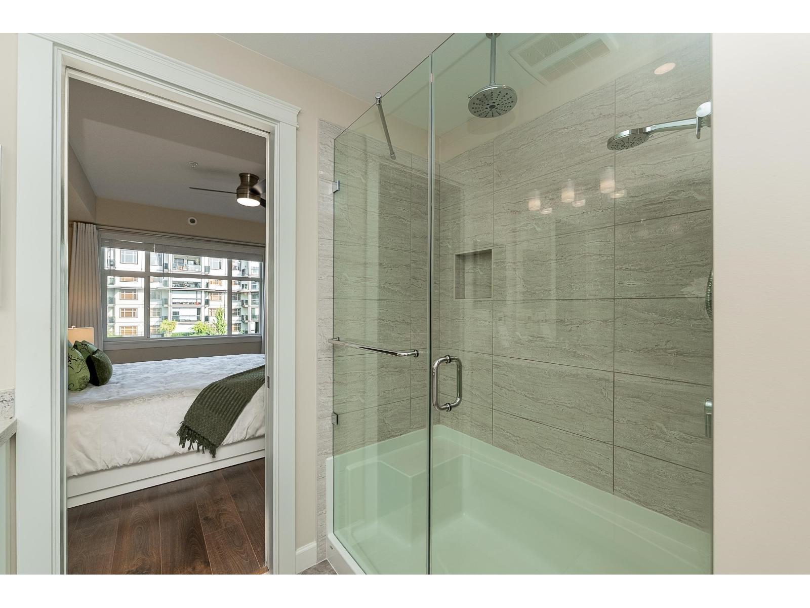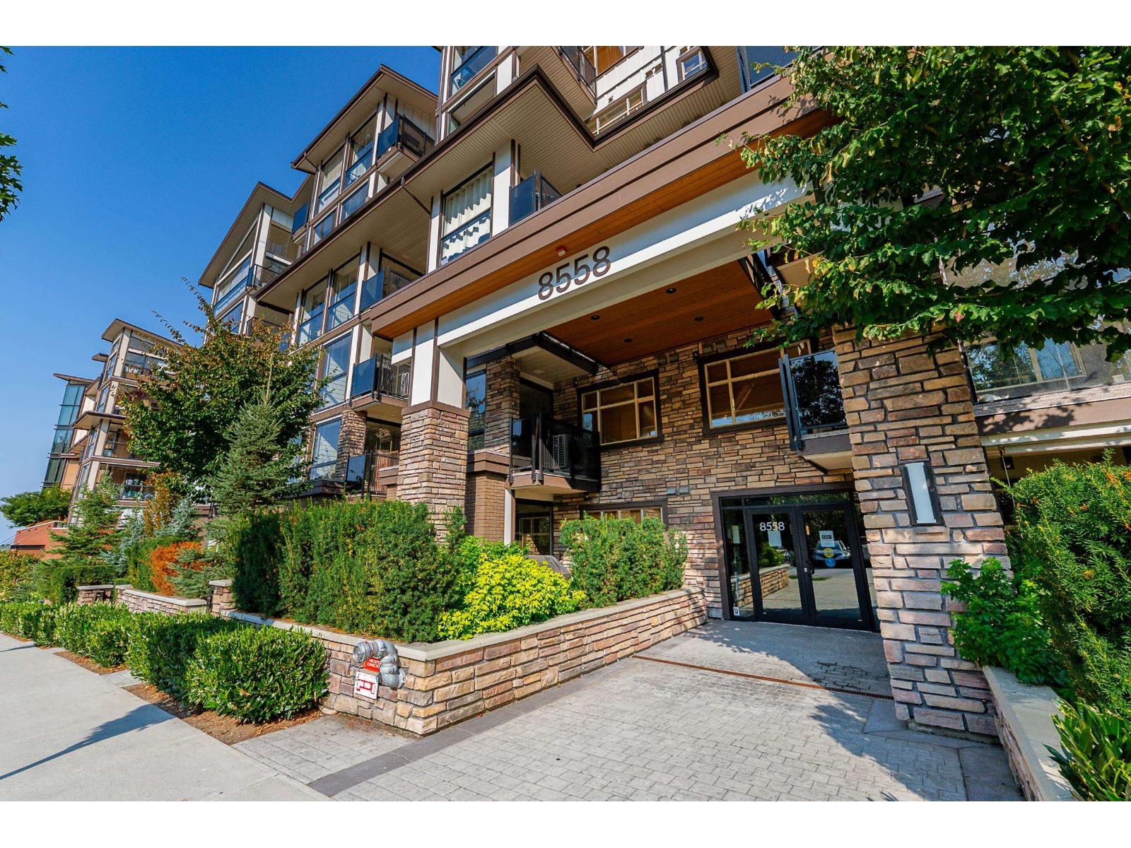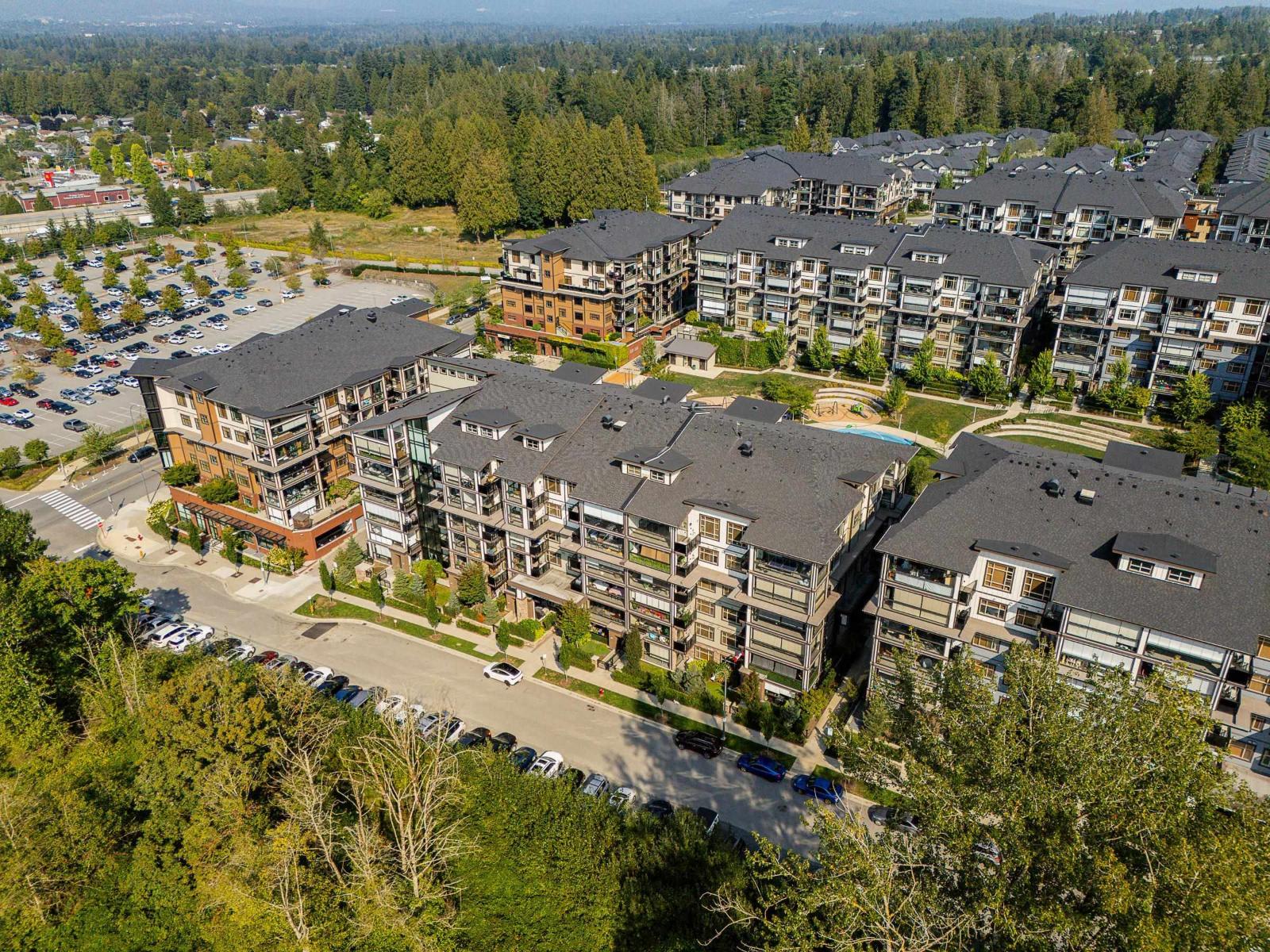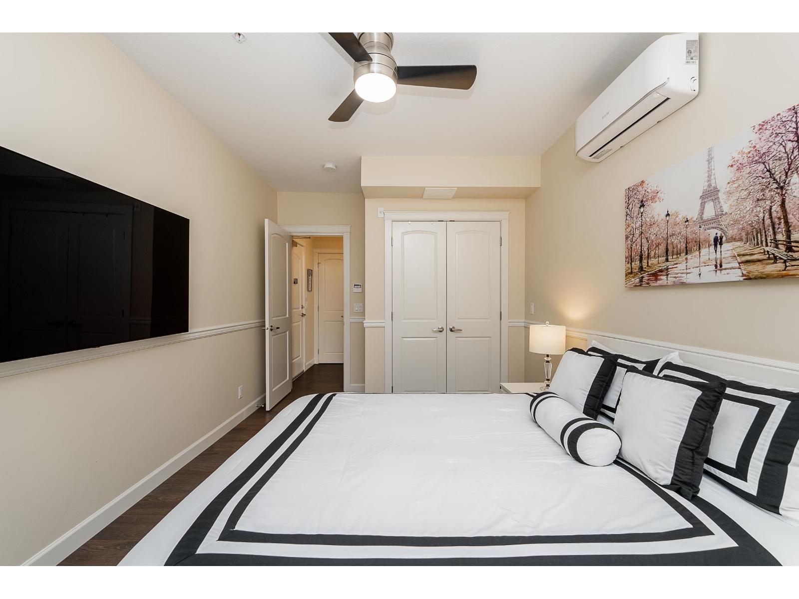 Immaculate and spacious East-facing 3 bedroom + den at sought-after Yorkson Park! Offering 1,583 sq ft of bright and air conditioned living space, plus a 225 sq ft solarium/balcony with retractable glass panels and courtyard views. The gourmet kitchen features a peninsula with seating, gas range and sleek cabinetry, seamlessly connecting to the dining and living area. Designed for year-round enjoyment, the solarium expands your living space. Generous bedrooms include two with luxurious ensuites, double vanities, frameless glass showers, walk-in closets, and access to the solarium. Added features include an energy-efficient heat pump with A/C, gas BBQ hookup, 2 parking stalls, and a storage locker. Conveniently located near Carvolth Exchange, shopping, restaurants, and quick highway access. (id:58403)