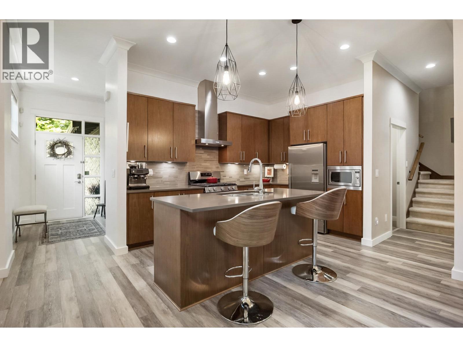 This stunning 4-bedroom, 4-bathroom residence located in the tranquil Tsawwassen Springs, features a double car garage & a serene garden oasis - with lush greenery, lilacs & wisteria. The main floor offers 1,427 sq. ft. of living space with soaring 11' ceilings, an open-concept layout, and a spacious kitchen with SS appliances, stone countertops, & island seating. The luxurious primary suite boasts a spa-like ensuite with soaker tub, double vanity & walk-in shower, and a private second bedroom also includes its own ensuite. Upstairs, you'll find two additional large bedrooms and a shared bathroom. Whether hosting guests or enjoying a quiet moment with a book, the back deck-with its gas heater and awning-offers true resort-style living. OPEN HOUSE SAT OCT 11 2-4PM (id:58403)