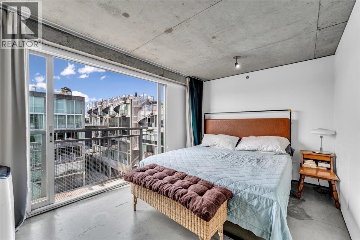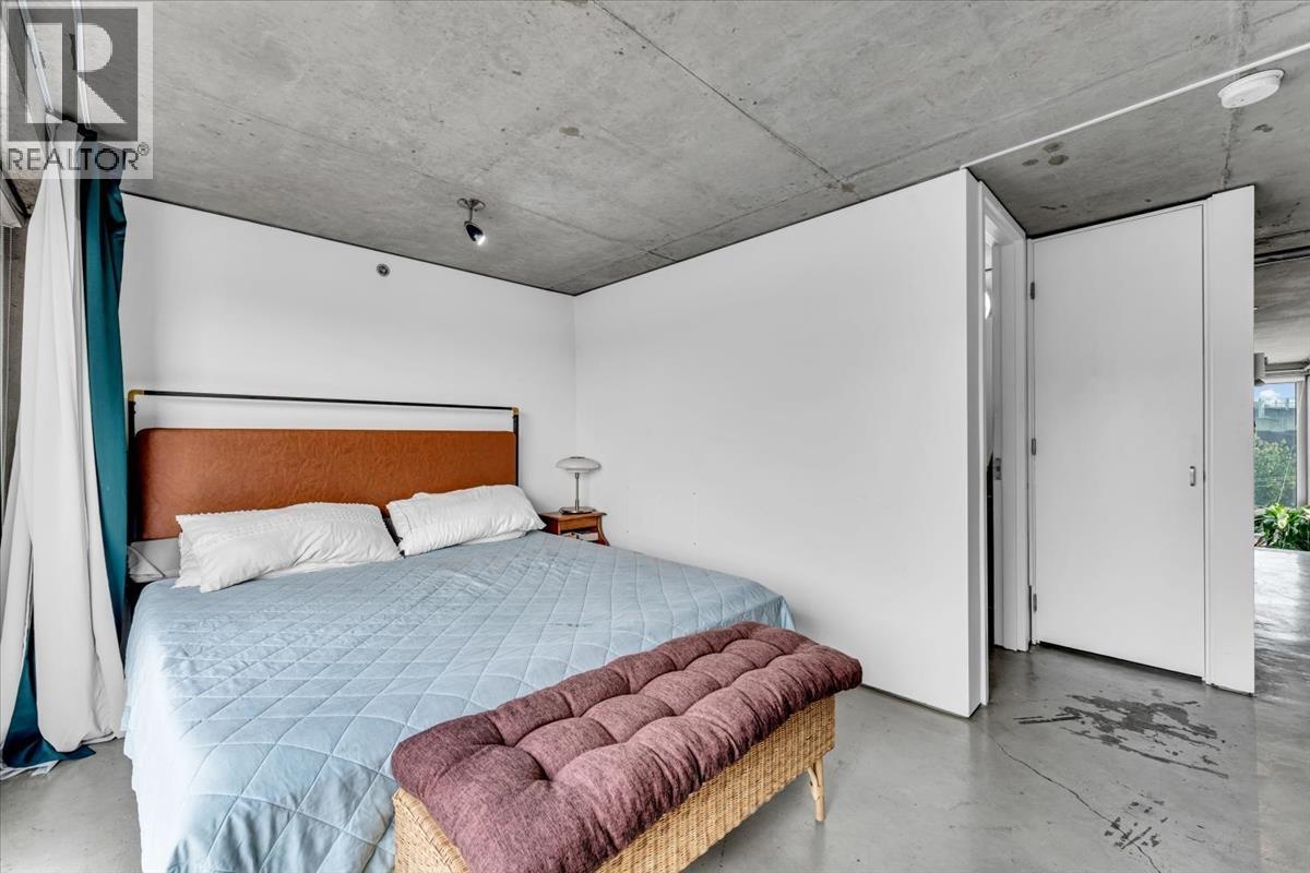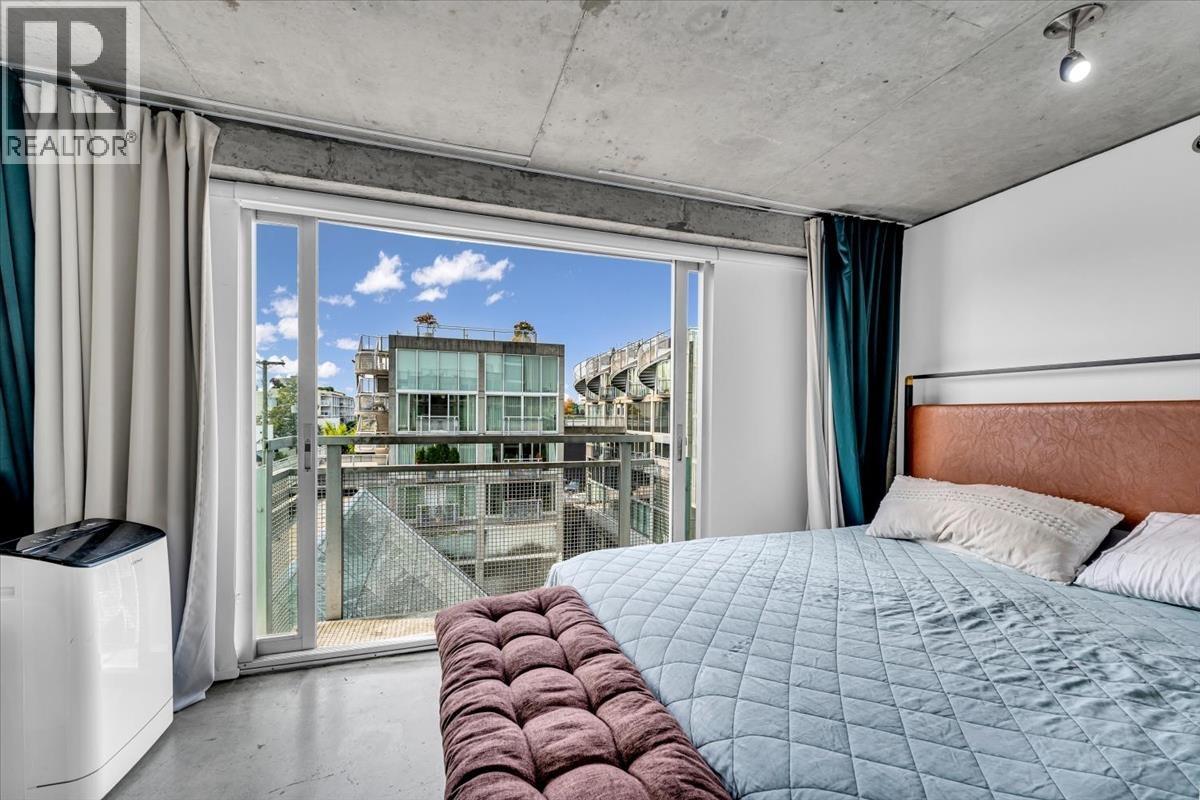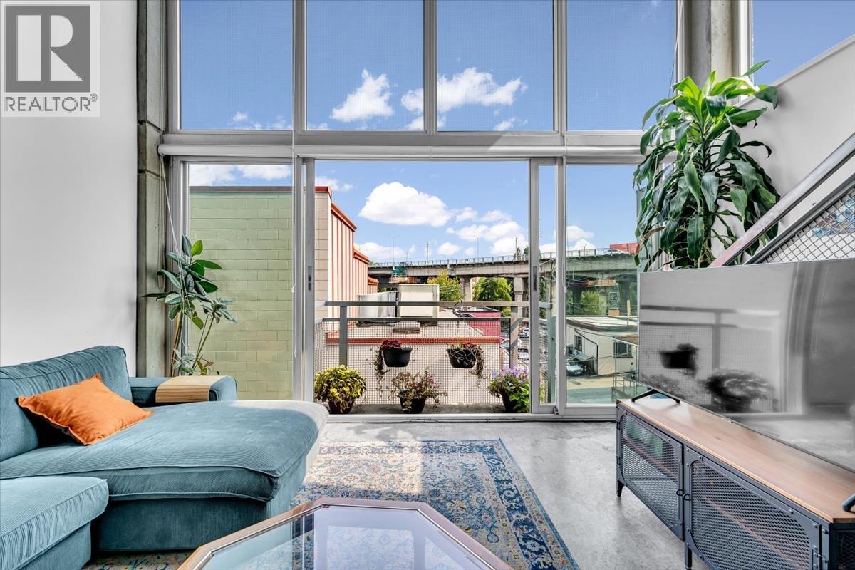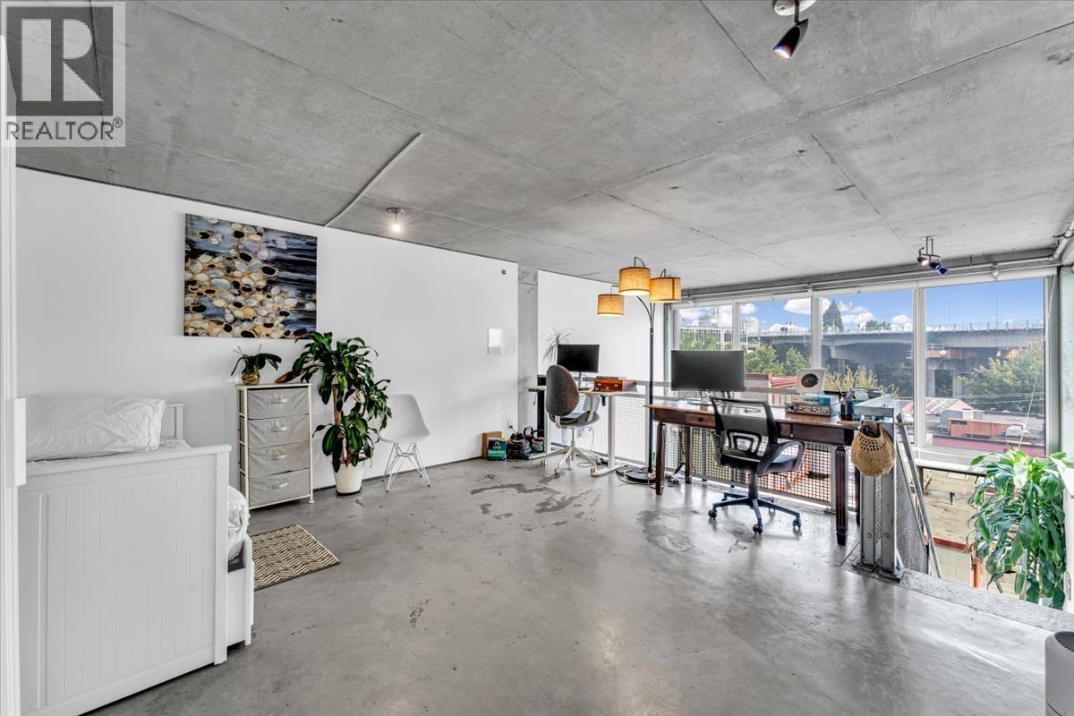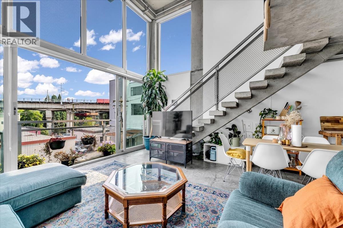 An architectural icon at the gateway to Granville Island-welcome to the award-winning Waterfall Building by Arthur Erickson. This one-bedroom loft with a spacious office/den (could be 2nd bedroom) features soaring 16´ ceilings, radiant heated concrete floors, exposed concrete walls, and a striking floating staircase. Juliet balconies on opposite ends create a refreshing cross-breeze, while floor-to-ceiling windows flood the home with natural light. Perfectly located just steps to Granville Island, W4th Ave and Granville shops. Zoned C-2B for live/work use. Includes one parking and one storage. (id:58403)