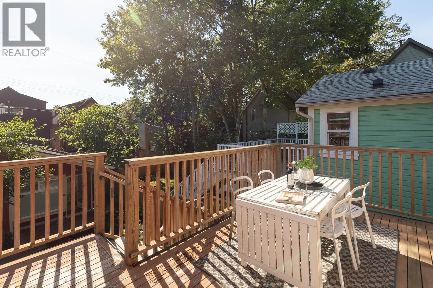 A welcoming front porch sets the tone for this Strathcona Character home offering the perfect spot to connect with this vibrant neighbourhood. The main floor flows as a bright open space with warm character details, a full bath and a sunny south-facing deck. The private backyard is a gardener´s delight, ready for outdoor dining & quiet retreats. Upstairs, a cosy loft provides a space for a bedroom, office, or reading nook. The lower level offers three bedrooms, a bathroom, and direct access to the garden. A newer double garage/ flex space with its own bathroom adds valuable flexibility as a studio, office, or creative workshop. This home blends heritage charm, thoughtful upgrades, and a flexible floor plan. OPEN HOUSE: Sunday, October 12th, 2- 4 pm (id:58403)