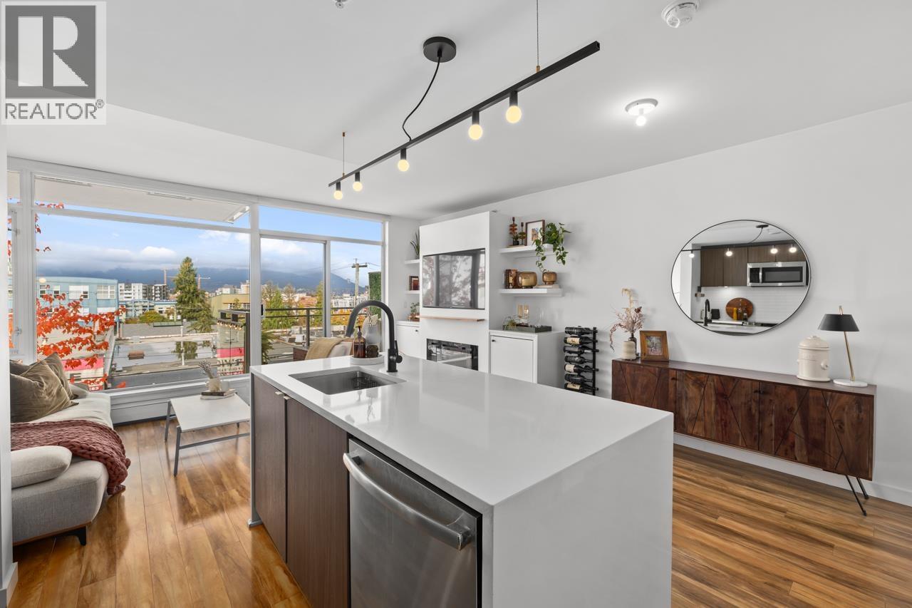 Welcome to this bright & spacious MOUNTAIN VIEW home in SHINE, a BOUTIQUE CONCRETE BUILDING in the heart of MOUNT PLEASANT. OPEN-CONCEPT living & dining area features ABUNDANT NATURAL LIGHT and is anchored by the CUSTOM-BUILT FIREPLACE & shelving. CHEF´S KITCHEN offers QUARTZ COUNTERS, STAINLESS STEEL APPLIANCES, and LARGE ISLAND with waterfall detailing and COUNTER SEATING is perfect for entertaining. Enjoy this PRIVATE BALCONY ideal for morning coffee. Unwind in the spa-like bathroom with a deep soaker tub. Building amenities include GYM, MEETING ROOM, ROOFTOP patio, ROOFTOP TERRACE with BBQ, and GARDENS. PETS and RENTALS allowed. Includes 1 PARKING & 1 LARGE STORAGE LOCKER. Steps to MAIN STREET cafés, restaurants, breweries, & future BROADWAY SKYTRAIN STN. (id:58403)