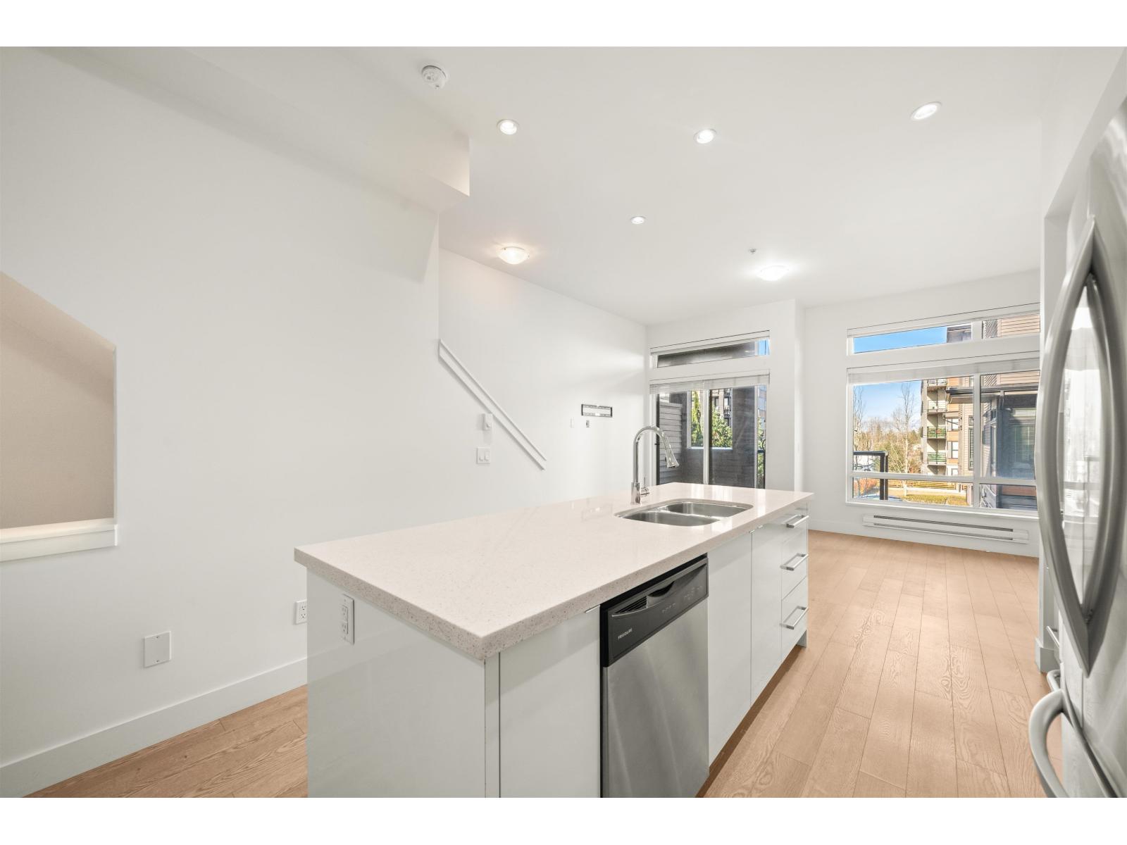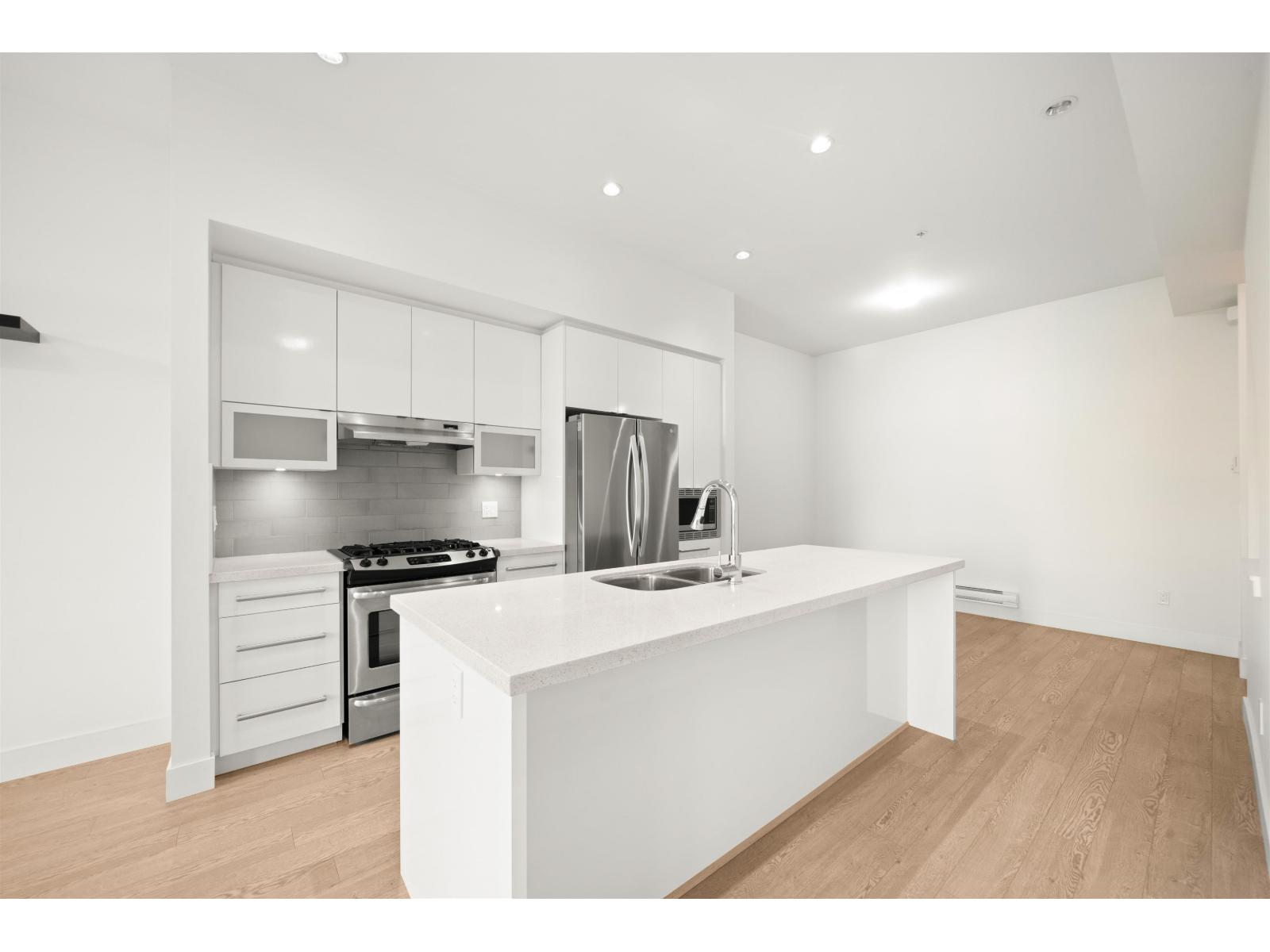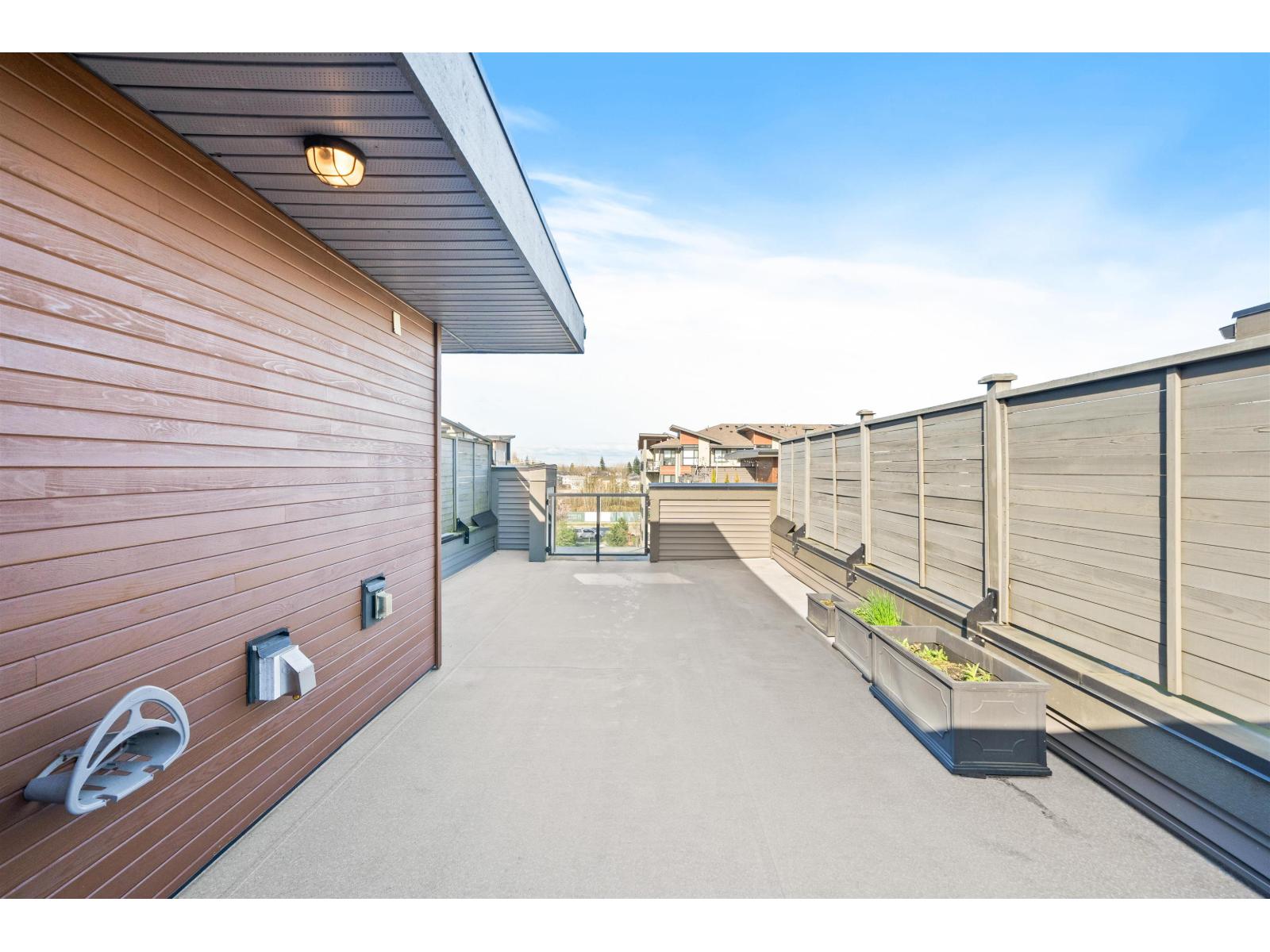 Located in the heart of Willoughby, this 2 bed, 2 bath townhouse features an incredible 500 SF private rooftop patio with gas and TV hookups-perfect for entertaining, relaxing, or soaking up the sun! It offers a bright open concept layout, stainless steel appliances, a spacious kitchen with ample storage, and large windows for great natural light. The primary bedroom includes a walk-in closet and private ensuite. Both bedrooms are generously sized. Single car garage plus covered carport-2 parking total. One of the best locations in the complex with no neighbour in front. Close to schools, Willoughby Town Centre, Costco, T&T, restaurants, and Hwy 1. **Some photos virtually staged. OPEN HOUSE: Saturday Oct 4th 1-2pm! (id:58403)