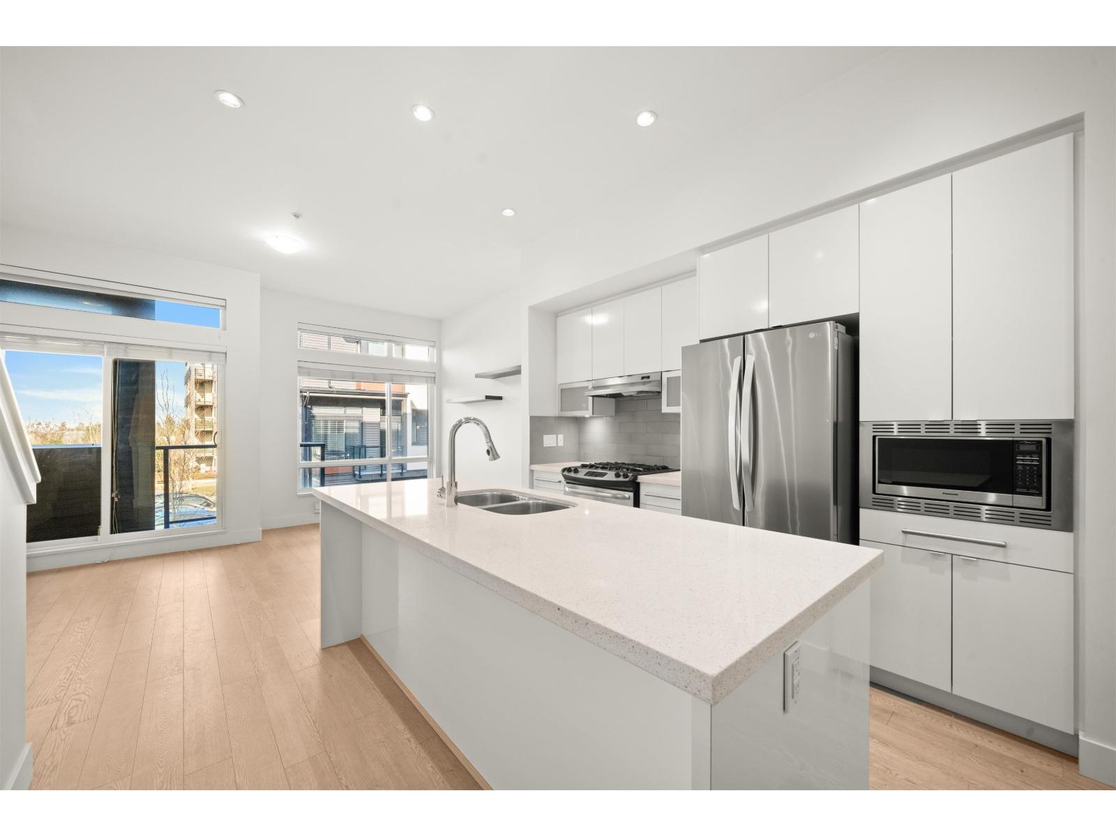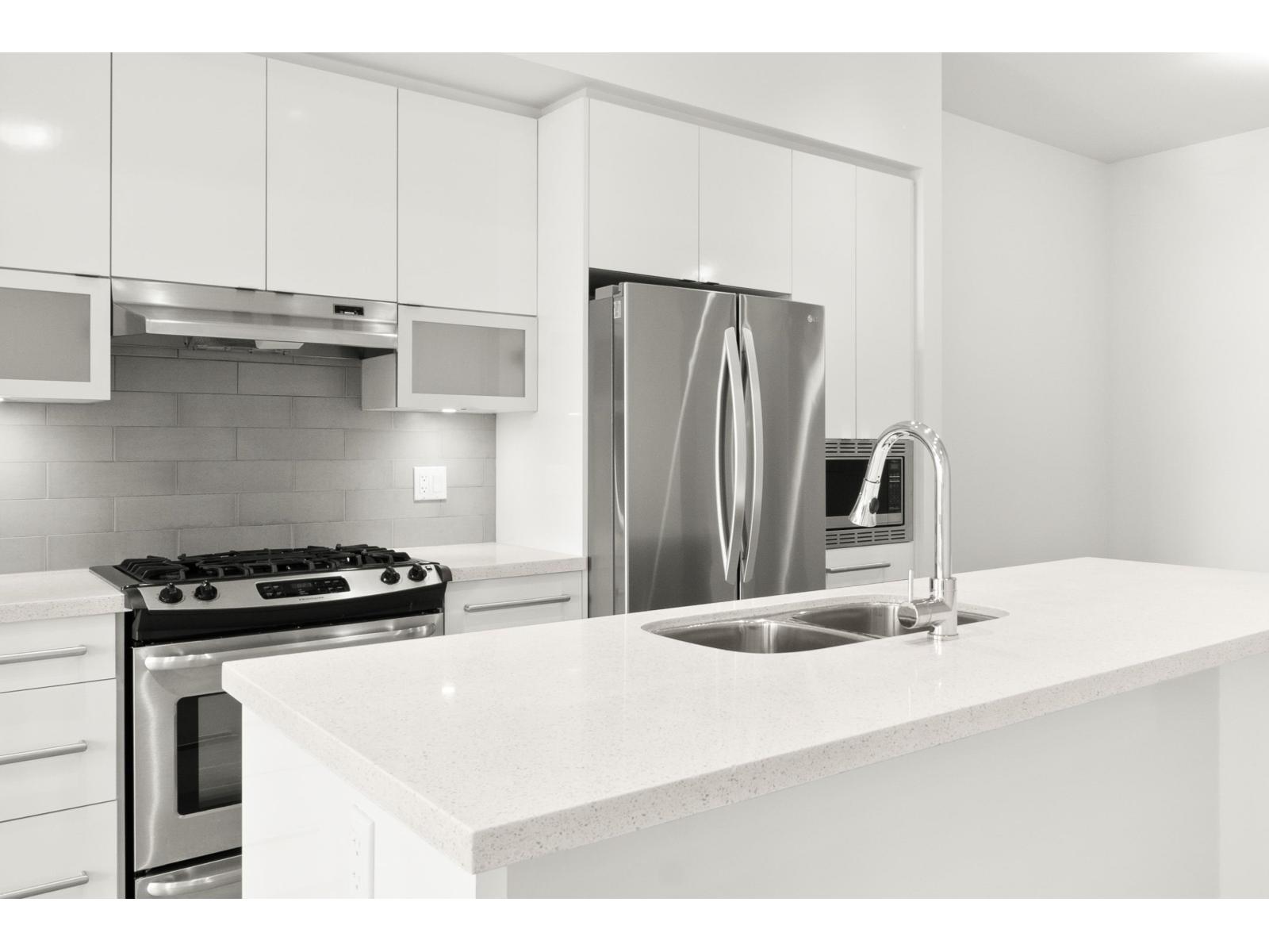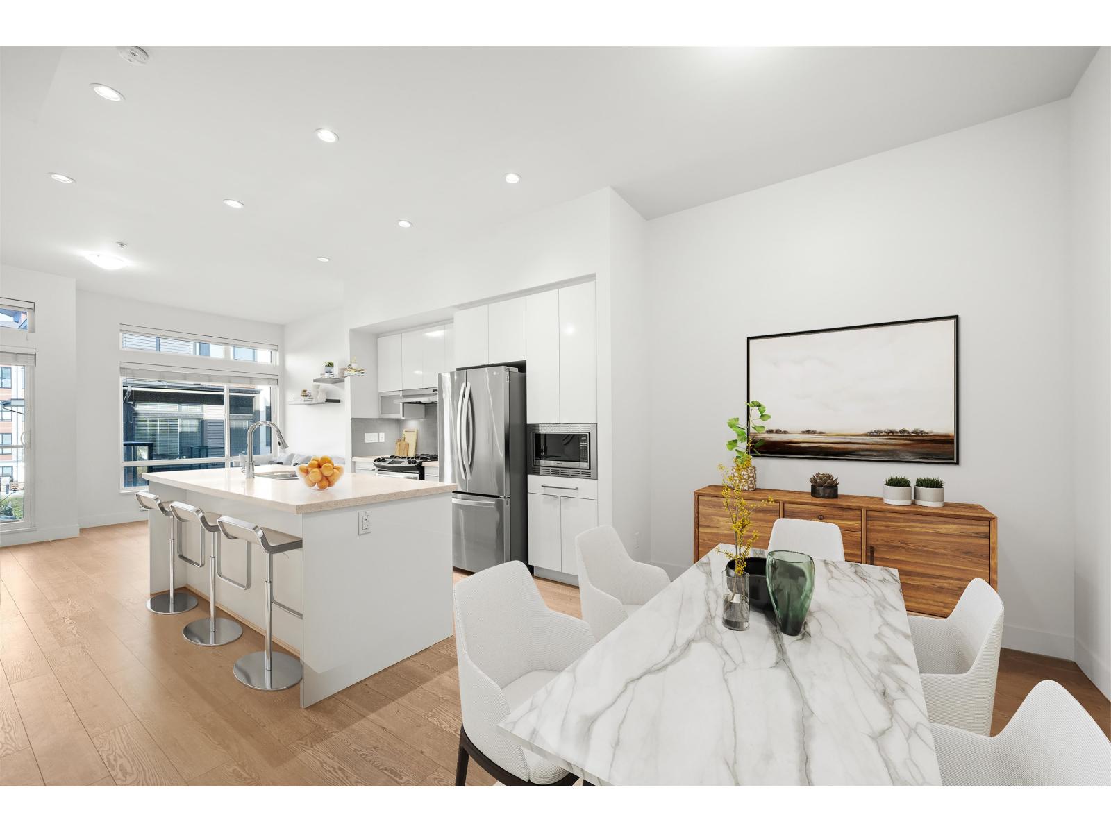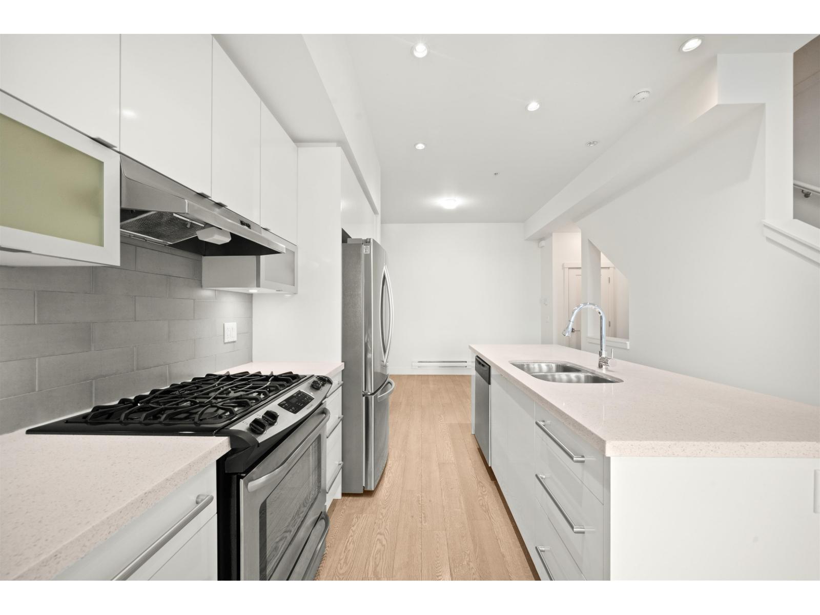 Located in the heart of Willoughby, this 2 bed, 2 bath townhouse features an incredible 500 SF private rooftop patio with gas and TV hookups-perfect for entertaining, relaxing, or soaking up the sun! It offers a bright open concept layout, stainless steel appliances, a spacious kitchen with ample storage, and large windows for great natural light. The primary bedroom includes a walk-in closet and private ensuite. Both bedrooms are generously sized. Single car garage plus covered carport-2 parking total. One of the best locations in the complex with no neighbour in front. Close to schools, Willoughby Town Centre, Costco, T&T, restaurants, and Hwy 1. **Some photos virtually staged. OPEN HOUSE: Saturday Oct 4th 1-2pm! (id:58403)