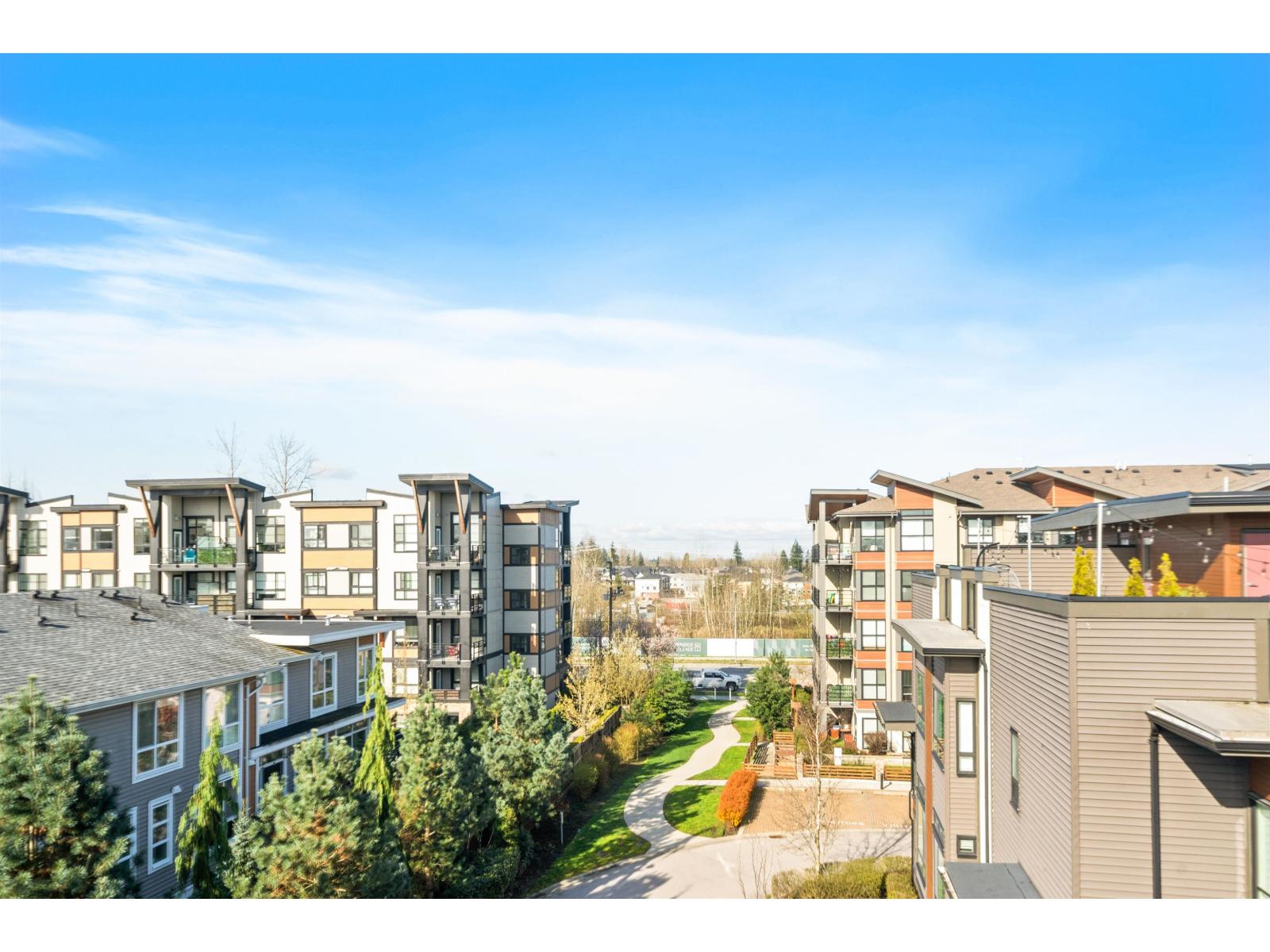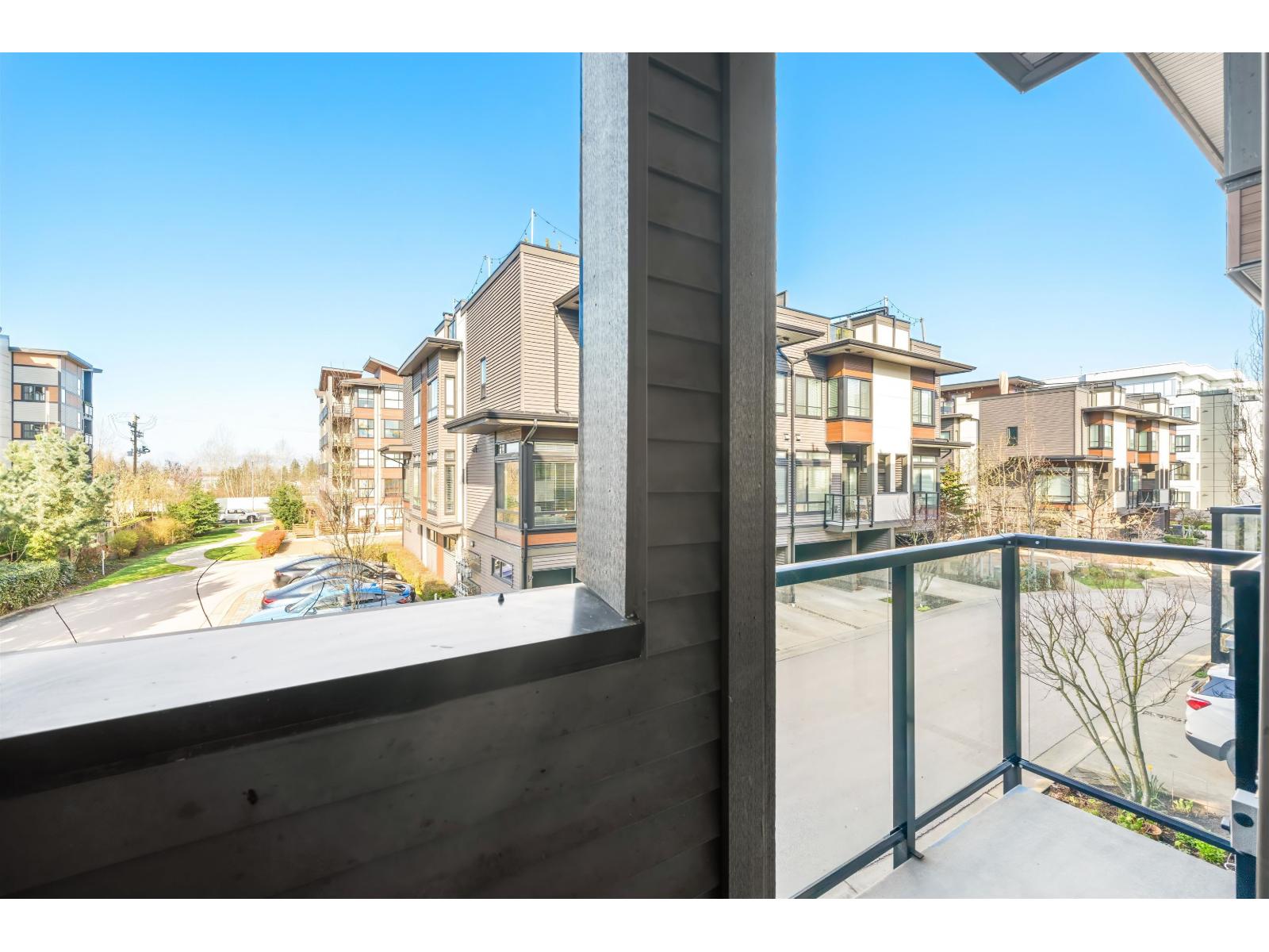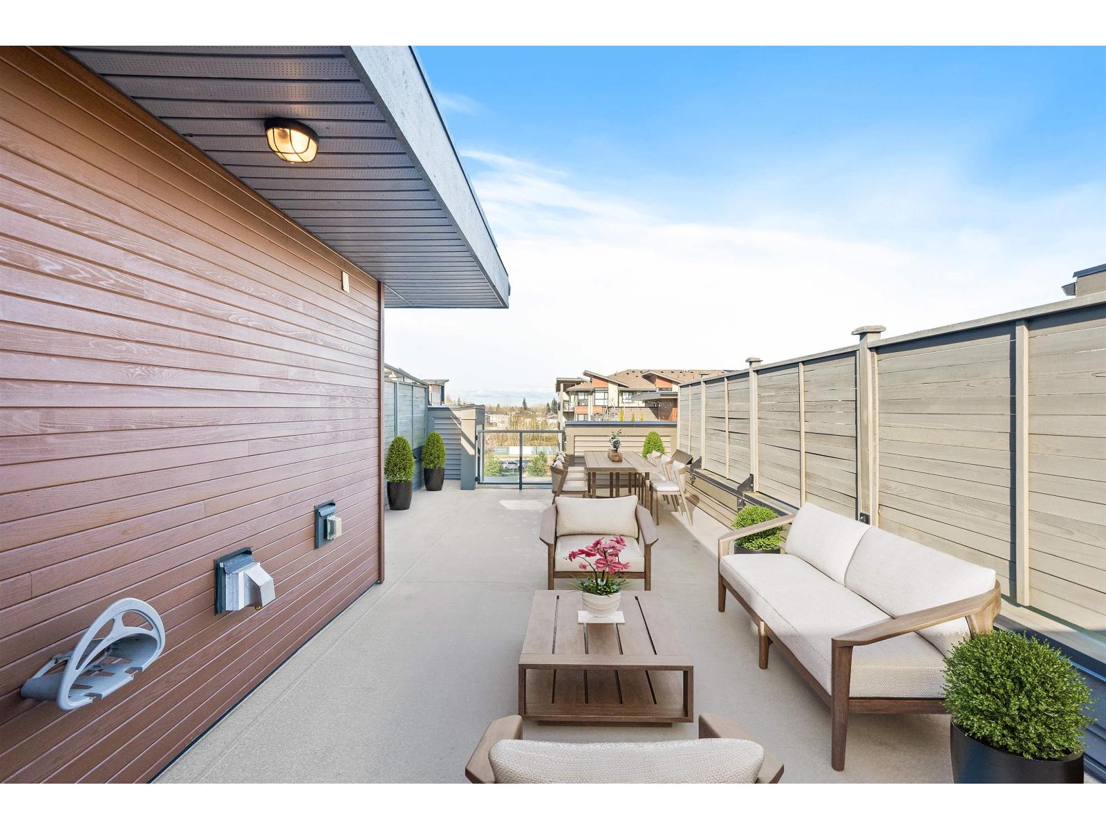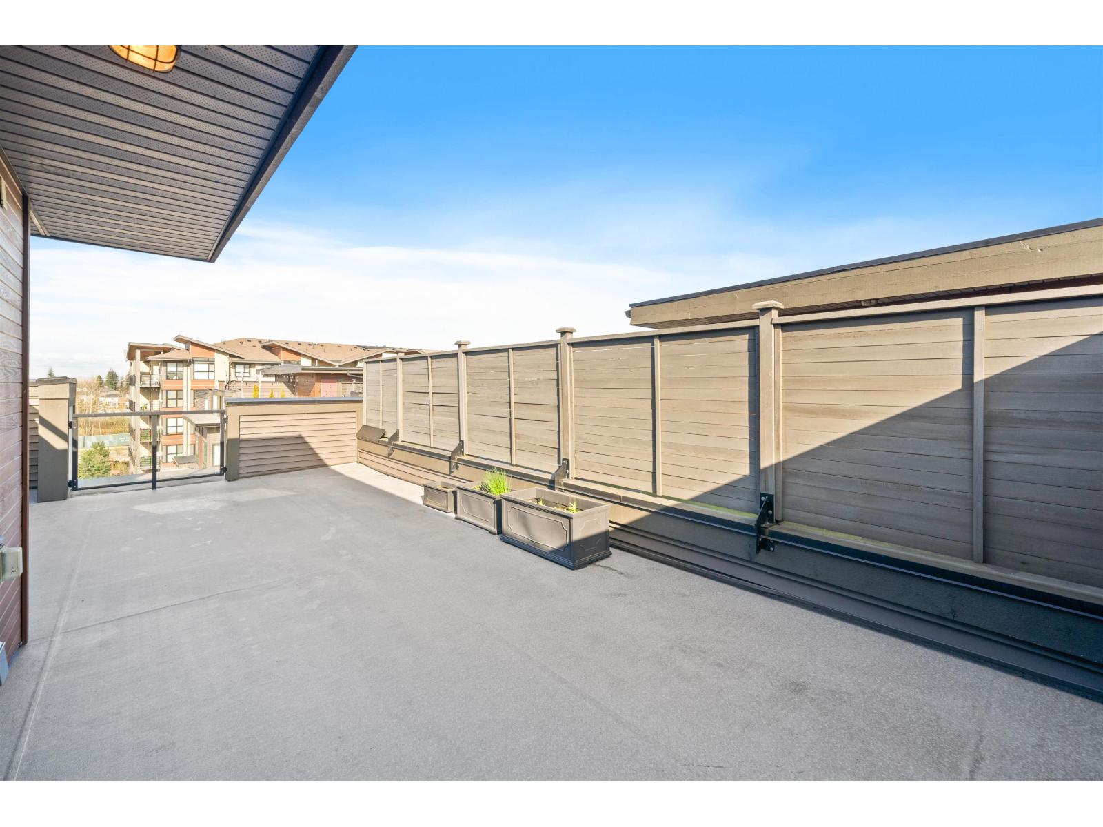 Located in the heart of Willoughby, this 2 bed, 2 bath townhouse features an incredible 500 SF private rooftop patio with gas and TV hookups-perfect for entertaining, relaxing, or soaking up the sun! It offers a bright open concept layout, stainless steel appliances, a spacious kitchen with ample storage, and large windows for great natural light. The primary bedroom includes a walk-in closet and private ensuite. Both bedrooms are generously sized. Single car garage plus covered carport-2 parking total. One of the best locations in the complex with no neighbour in front. Close to schools, Willoughby Town Centre, Costco, T&T, restaurants, and Hwy 1. (id:58403)