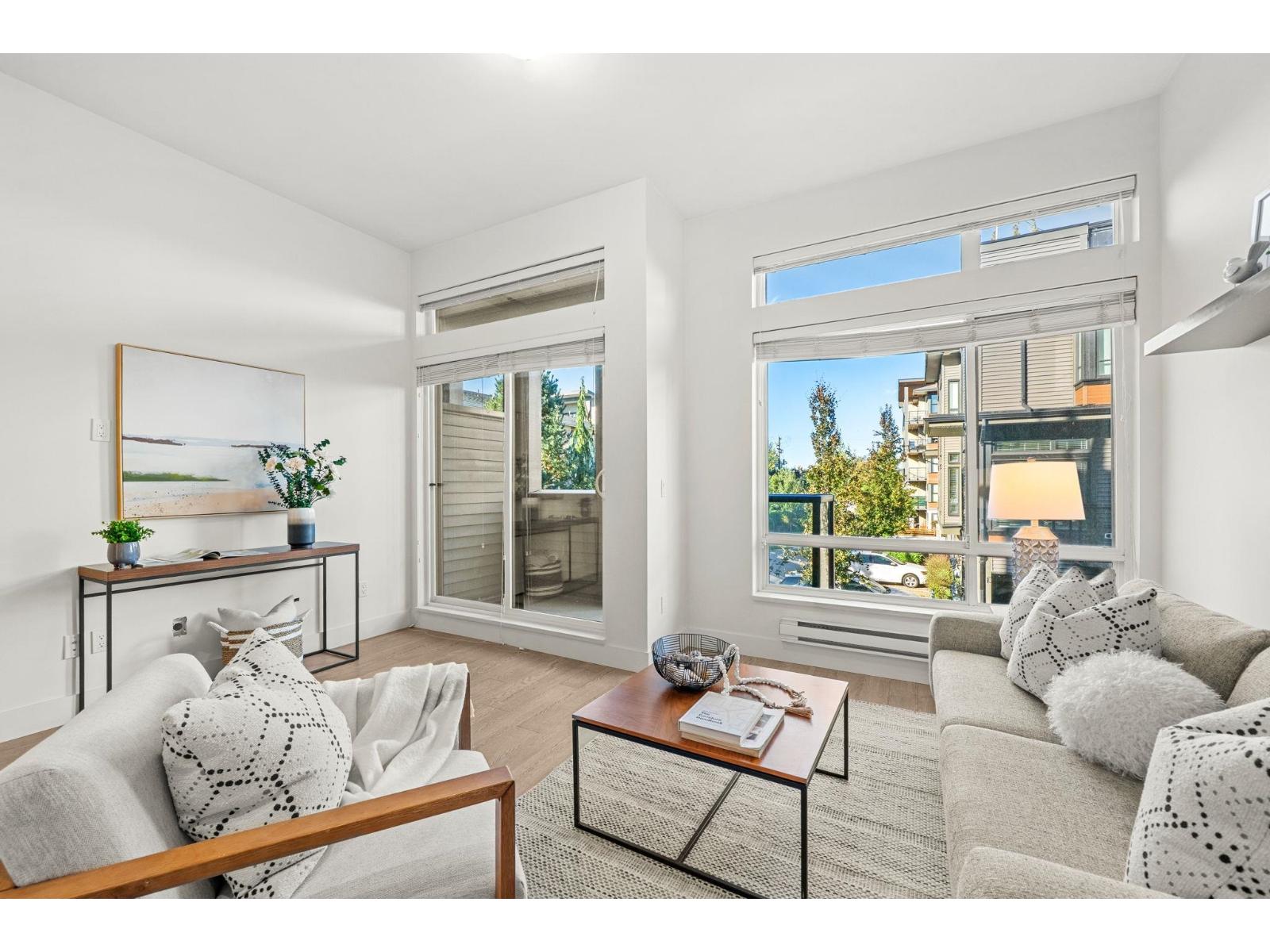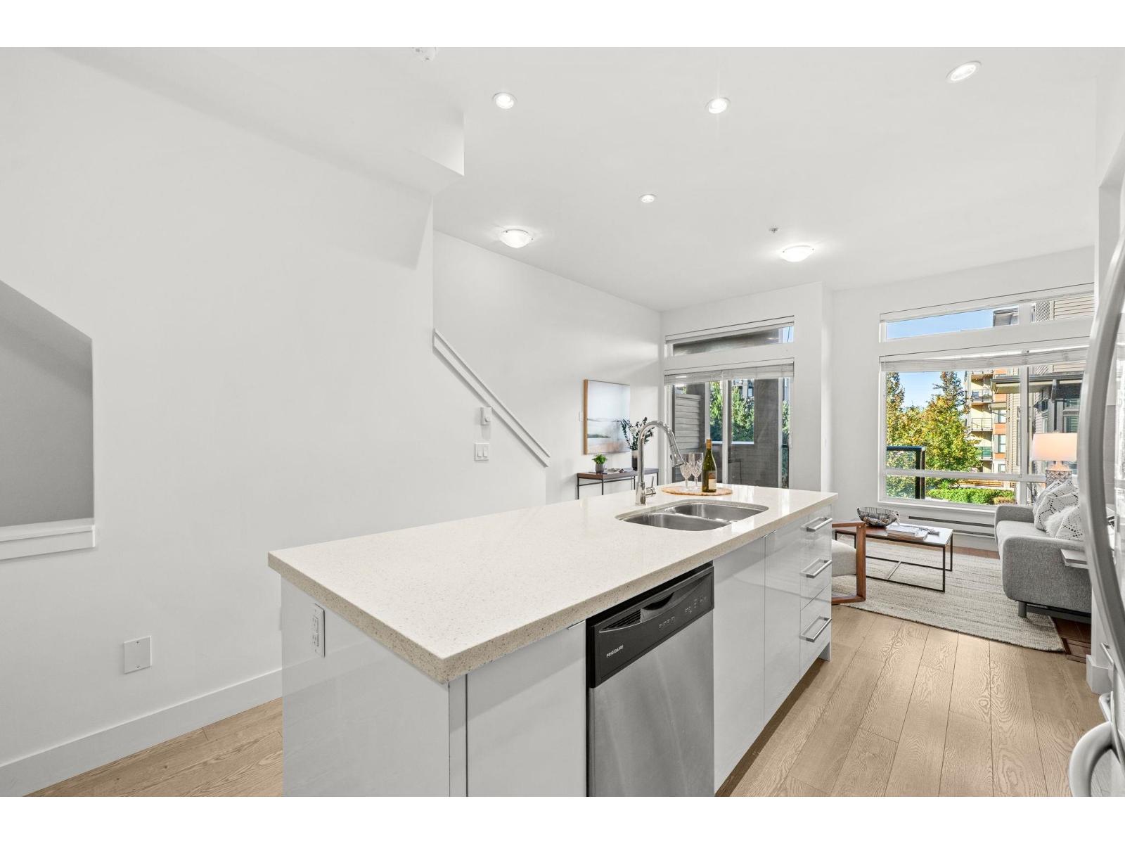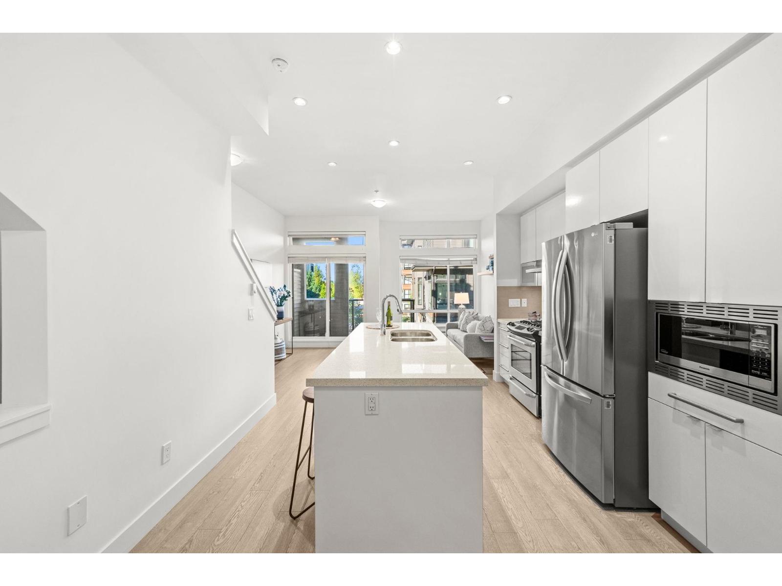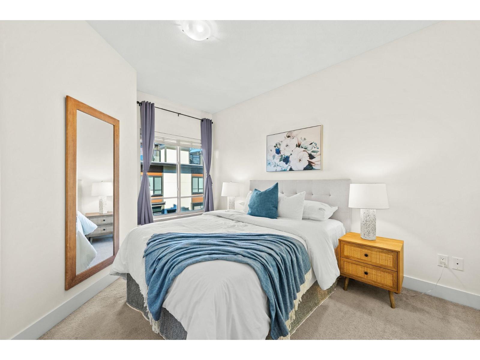 Located in the heart of Willoughby, this 2 bed, 2 bath townhouse features an incredible 500 SF private rooftop patio with gas and TV hookups-perfect for entertaining, relaxing, or soaking up the sun! It offers a bright open concept layout, stainless steel appliances, a spacious kitchen with ample storage, and large windows for great natural light. The primary bedroom includes a walk-in closet and private ensuite. Both bedrooms are generously sized. Single car garage plus covered carport-2 parking total. One of the best locations in the complex with no neighbour in front. Close to schools, Willoughby Town Centre, Costco, T&T, restaurants, and Hwy 1. (id:58403)