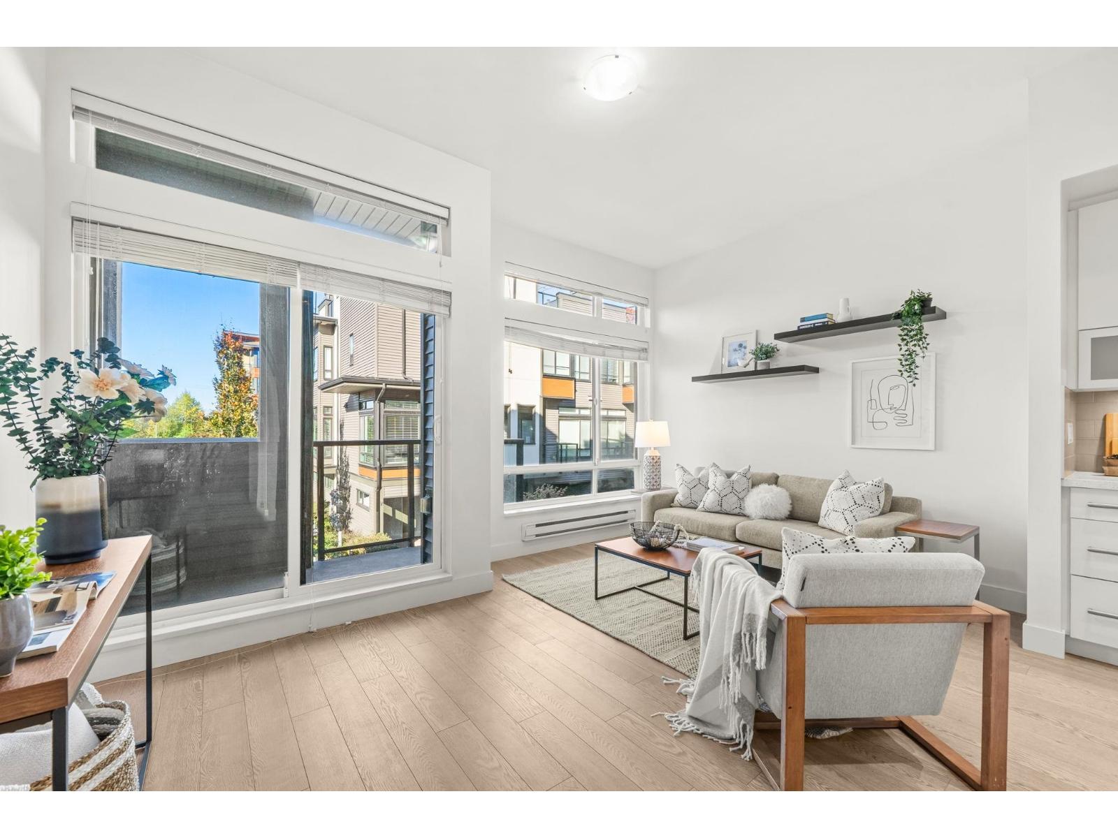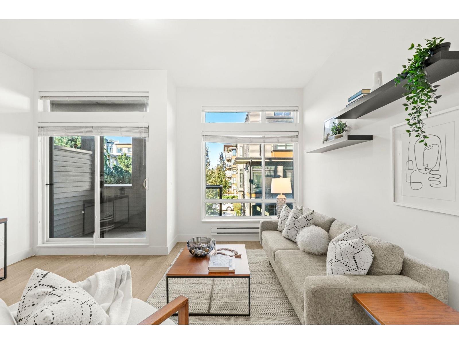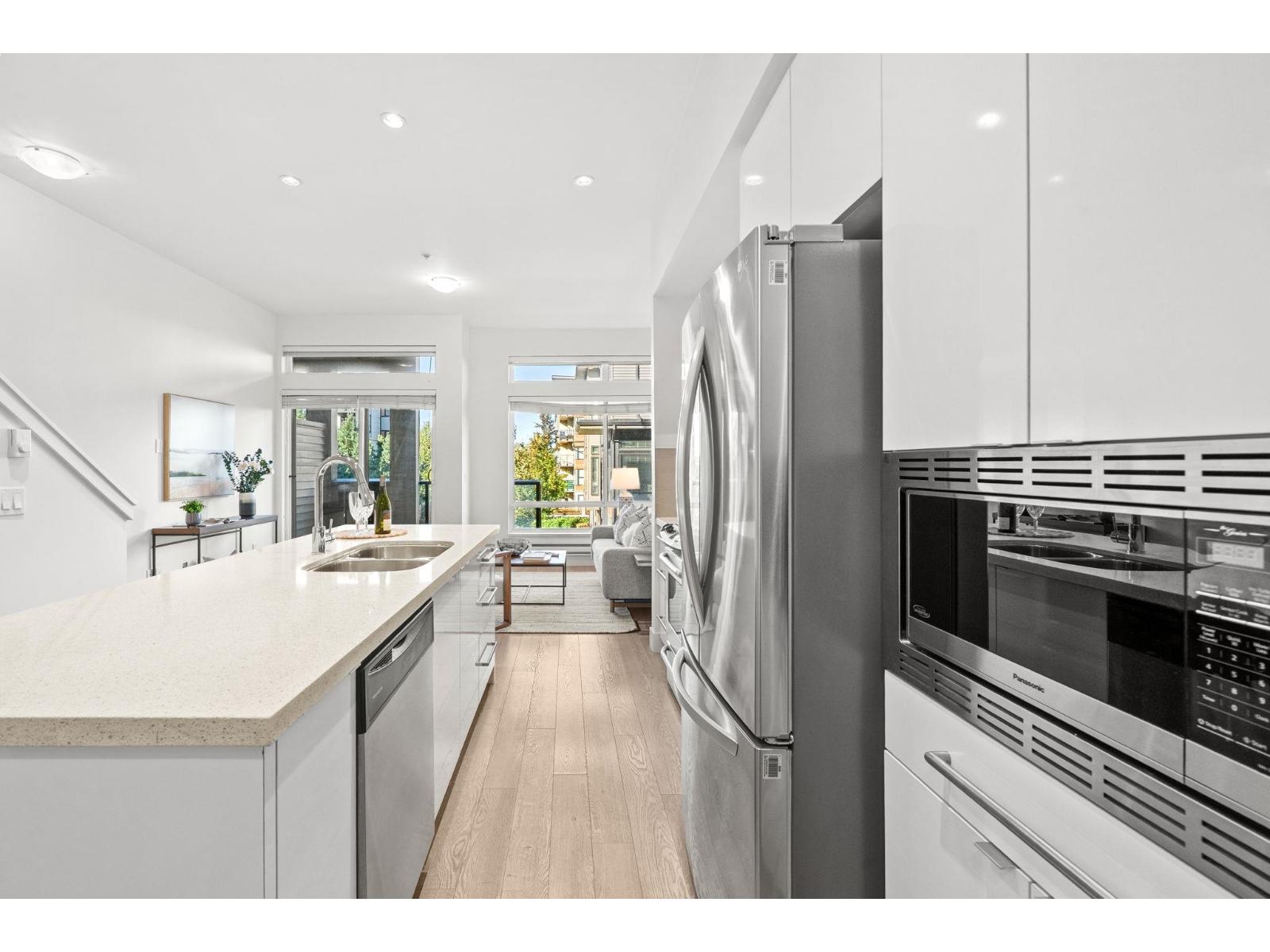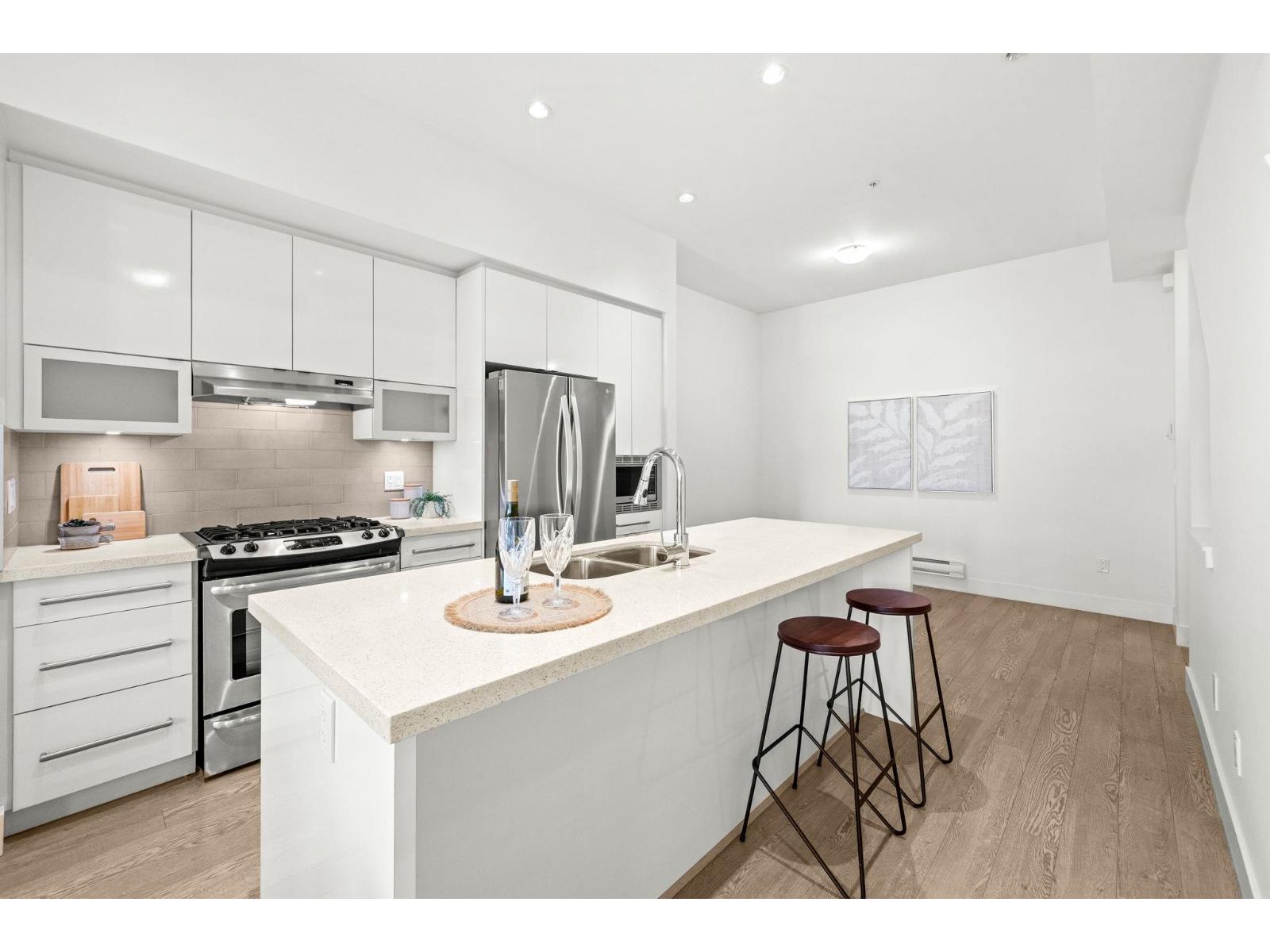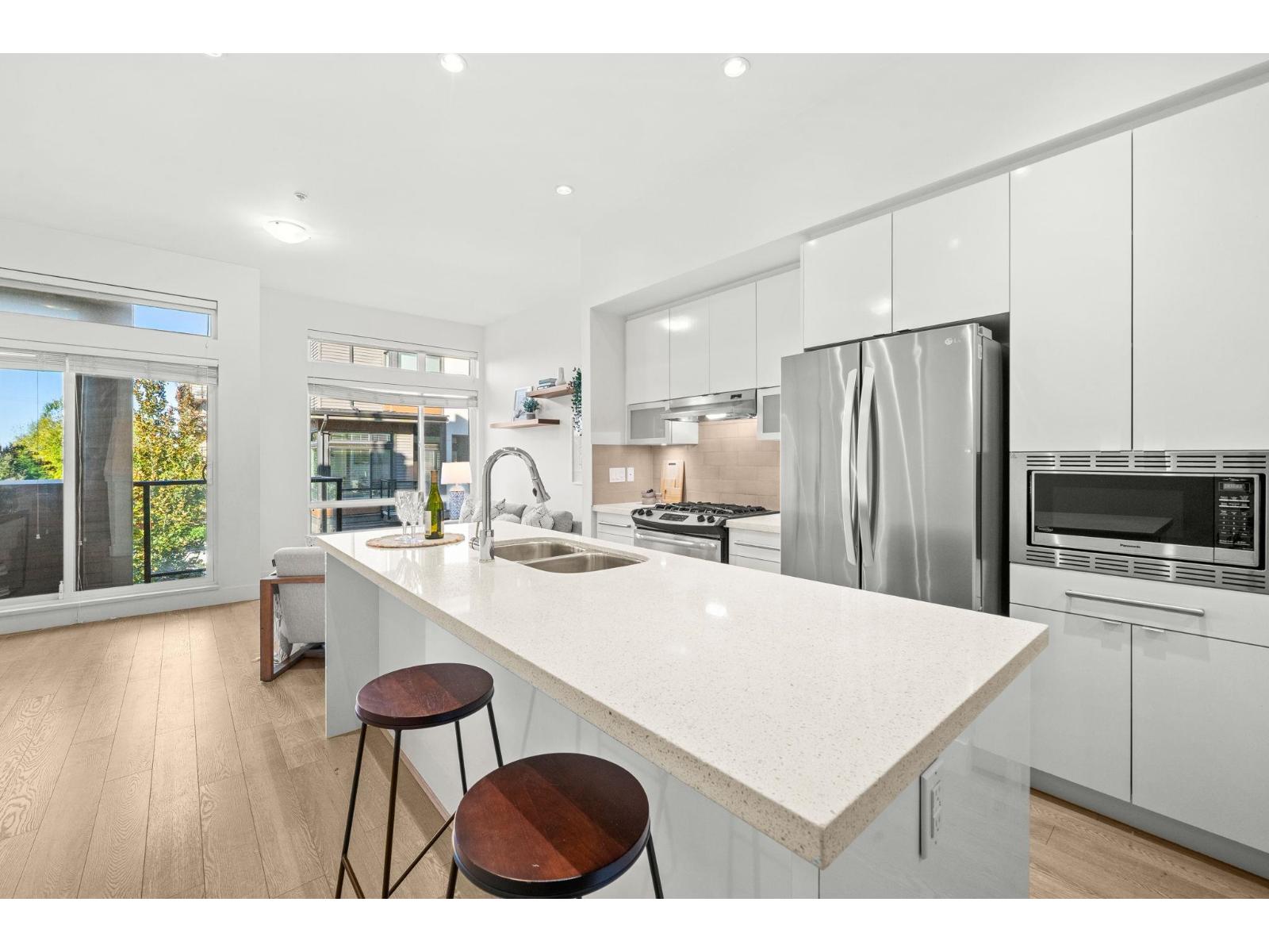 Located in the heart of Willoughby, this 2 bed, 2 bath townhouse features an incredible 500 SF private rooftop patio with gas and TV hookups-perfect for entertaining, relaxing, or soaking up the sun! It offers a bright open concept layout, stainless steel appliances, a spacious kitchen with ample storage, and large windows for great natural light. The primary bedroom includes a walk-in closet and private ensuite. Both bedrooms are generously sized. Single car garage plus covered carport-2 parking total. One of the best locations in the complex with no neighbour in front. Close to schools, Willoughby Town Centre, Costco, T&T, restaurants, and Hwy 1. (id:58403)