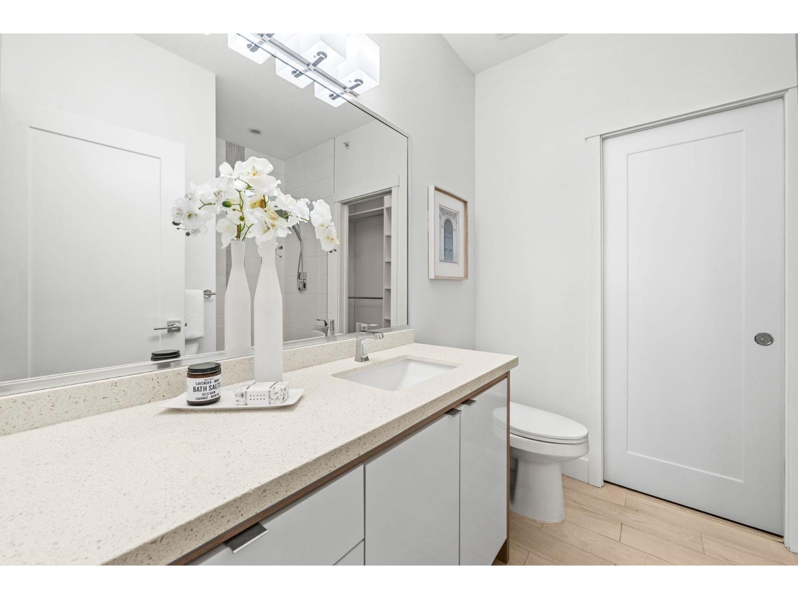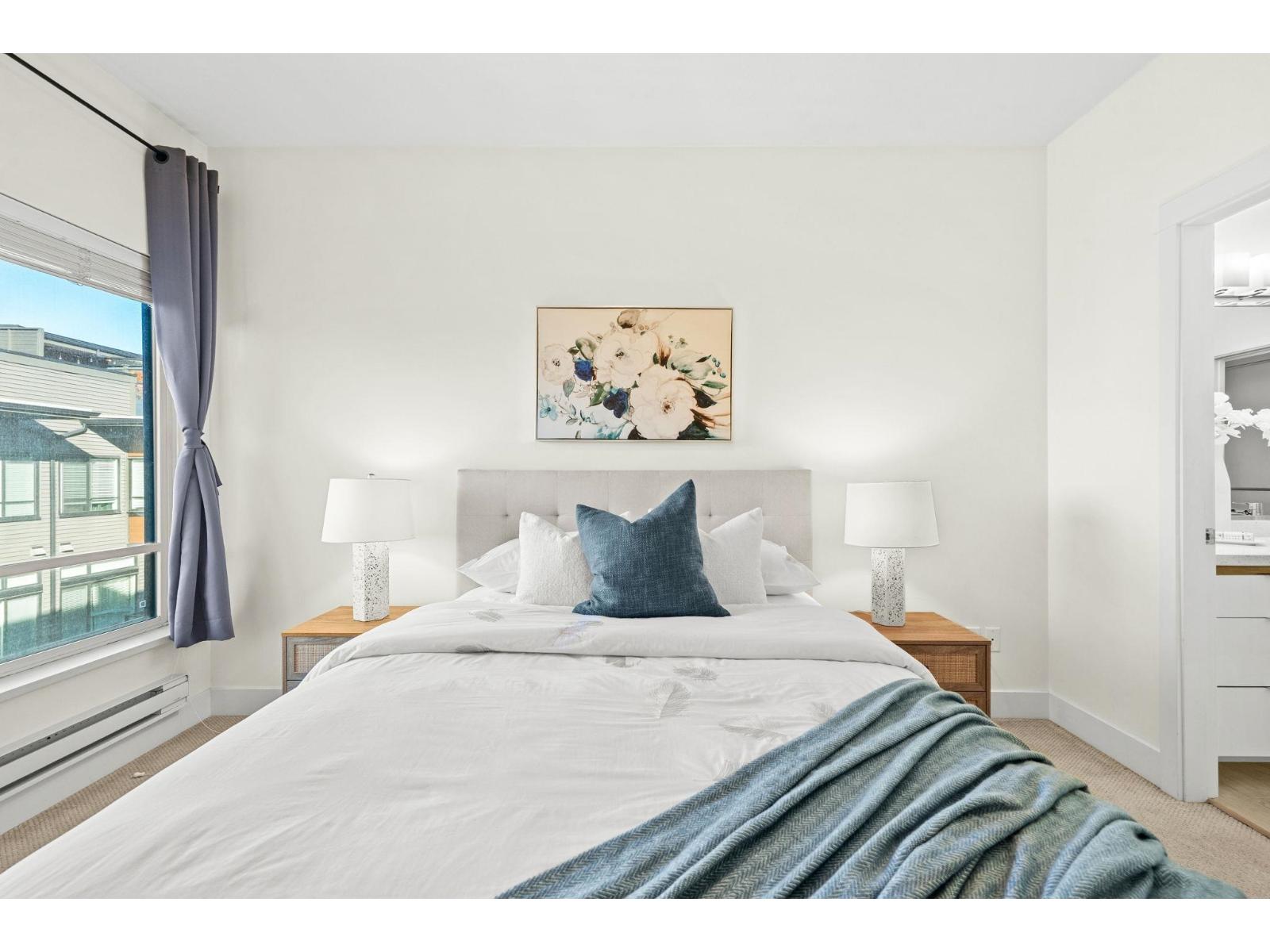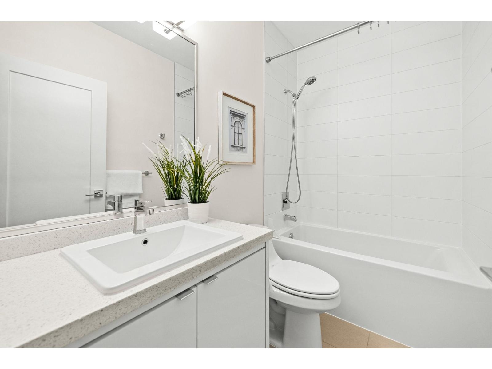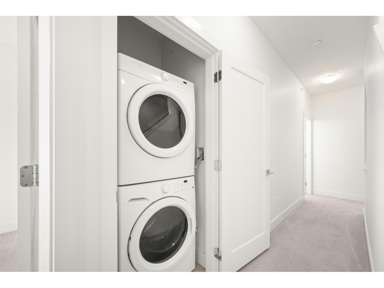 Located in the heart of Willoughby, this 2 bed, 2 bath townhouse features an incredible 500 SF private rooftop patio with gas and TV hookups-perfect for entertaining, relaxing, or soaking up the sun! It offers a bright open concept layout, stainless steel appliances, a spacious kitchen with ample storage, and large windows for great natural light. The primary bedroom includes a walk-in closet and private ensuite. Both bedrooms are generously sized. Single car garage plus covered carport-2 parking total. One of the best locations in the complex with no neighbour in front. Close to schools, Willoughby Town Centre, Costco, T&T, restaurants, and Hwy 1. (id:58403)