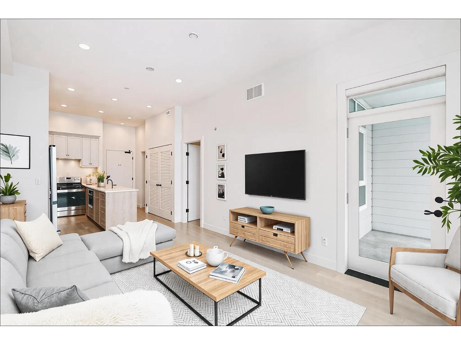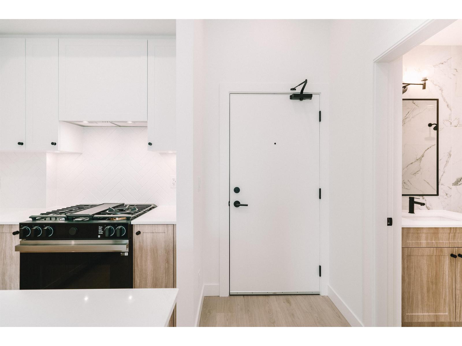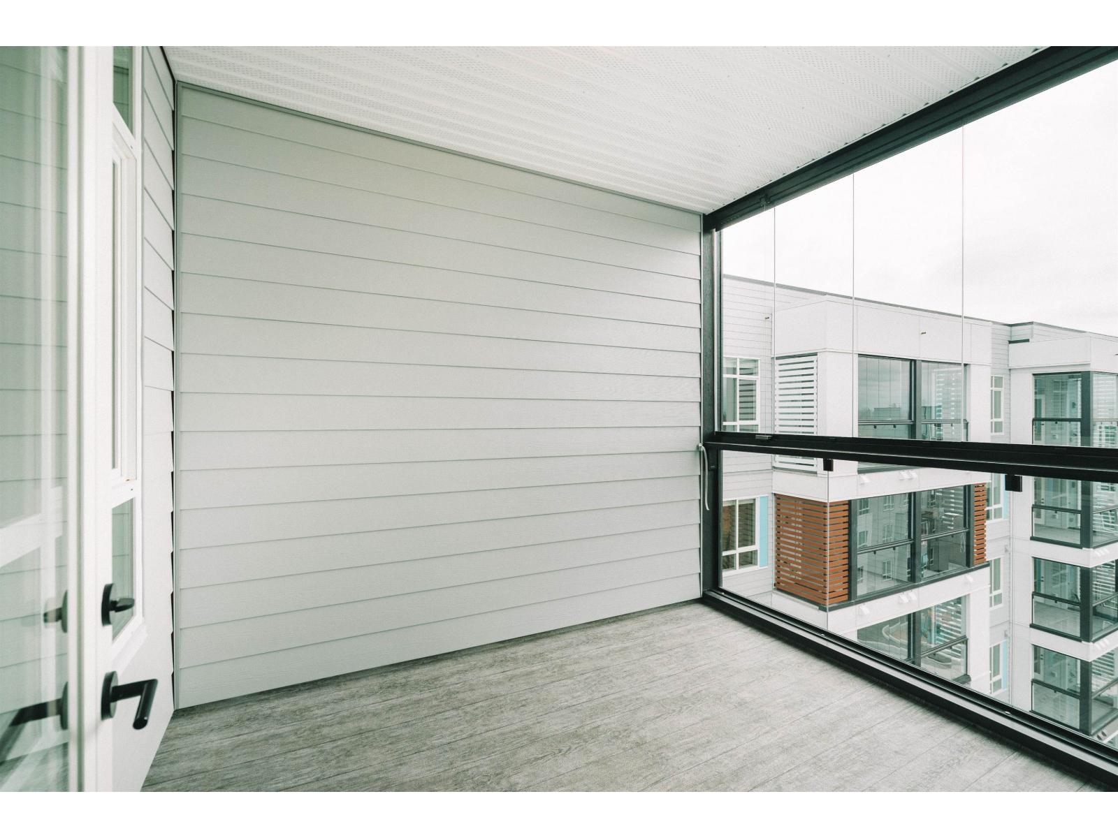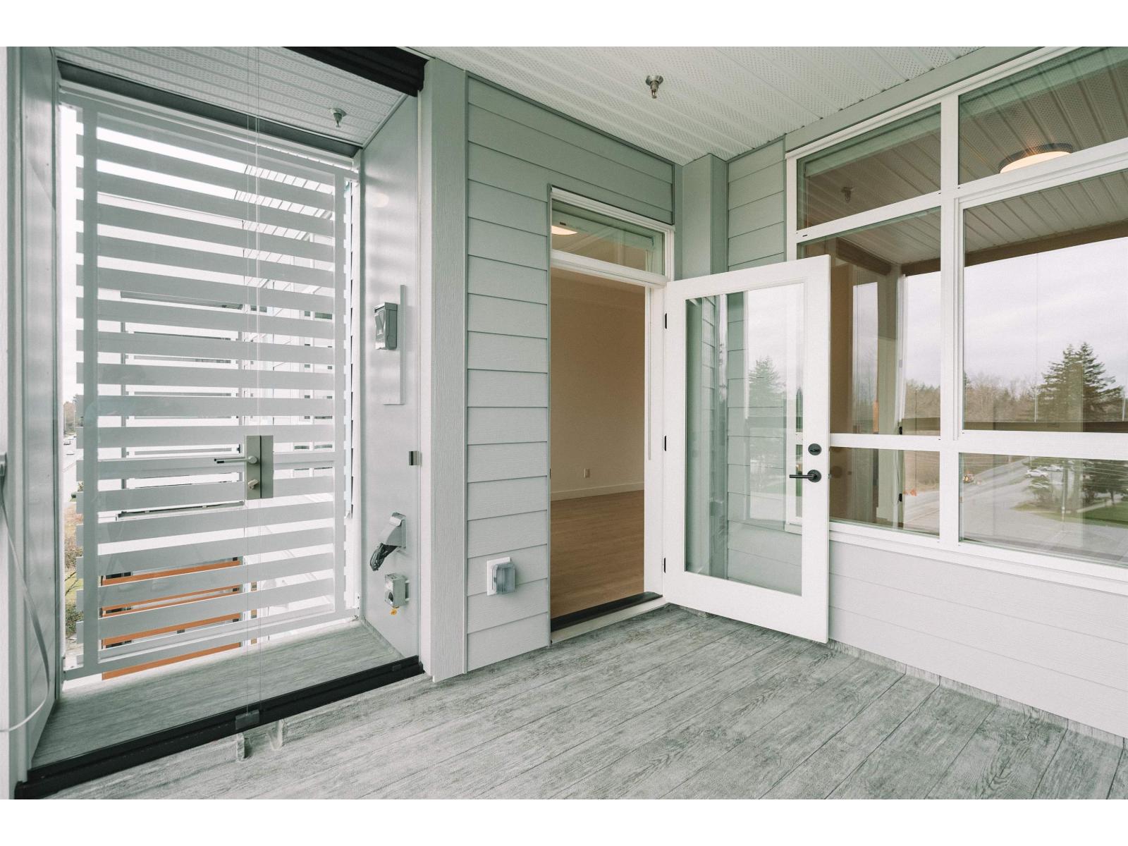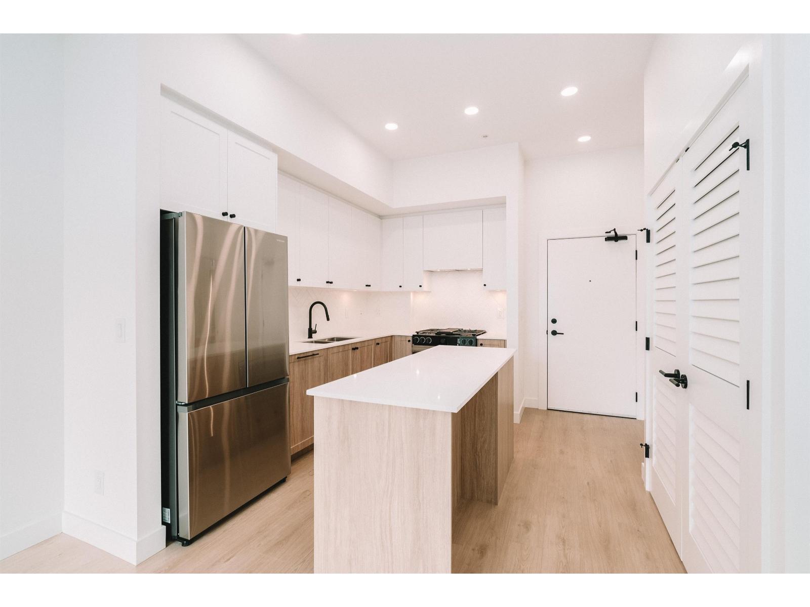 Welcome to HAYER TOWN CENTER, a master-plan community by the popular HAYER Builders Group. This BRAND NEW West facing premium 1 bedroom 1 bath PENTHOUSE unit offers a spacious open plan, laminate flooring throughout, 10' ceilings, spa-inspired bathroom & 100 sqft all season solarium deck with retractable glass, gas hook up & A/C roughed in hook up. The kitchen feat. a huge island, shaker cabinets, herringbone tile backsplash, natural gas range, quartz countertops, full-size S/S appliances & integrated dishwasher panel. Amenities incl. a rooftop deck, games room, fully-fenced dog park, hotel inspired lobby, 24 hr. concierge & Langley's first vertical garden. The Convenience Of Over 35,000 sqft of commercial retail shops & services. UNIT INCLUDES 1 EV Rough-In Parking & 1 Storage Locker. (id:58403)