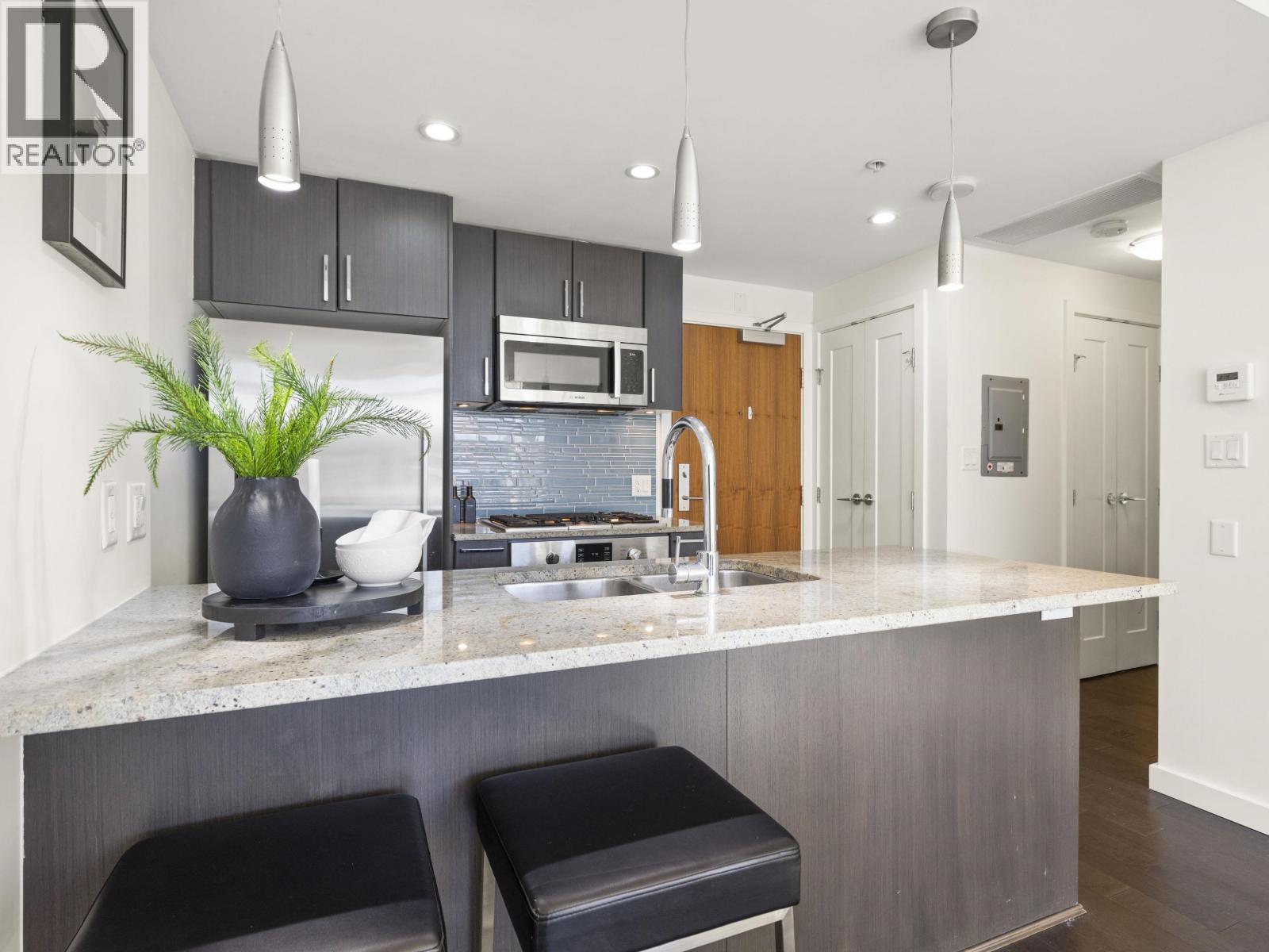 Perfect floor plan for the Olympic Village one bedroom & den home you've been looking for. This layout offers every functional space a home can possess. Full sized appliances in kitchen, ample dining and living room space, well lit den, perfect for a home office, large flex/storage room and a walk in closet. Facing the quiet backside of the building, showered in natural sunlight but cooled by the homes's A/C. The home also includes parking, a storage locker and dedicated bike stall. Prime Olympic Village location steps to the sea wall, restaurants and grocery; a short walk to 2 skytrain options. The One offers an outdoor rooftop pool, fitness centre and party room. This home ticks every box, come see for yourself. (id:58403)