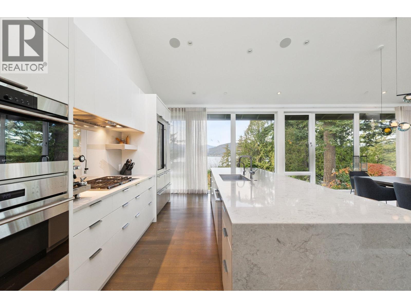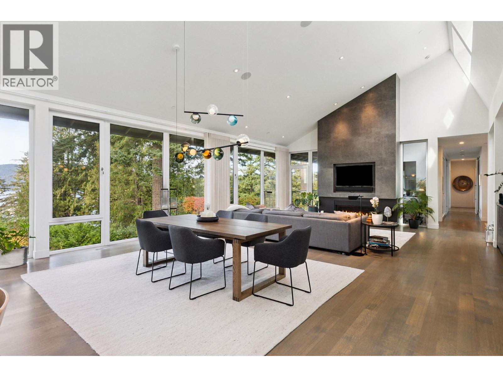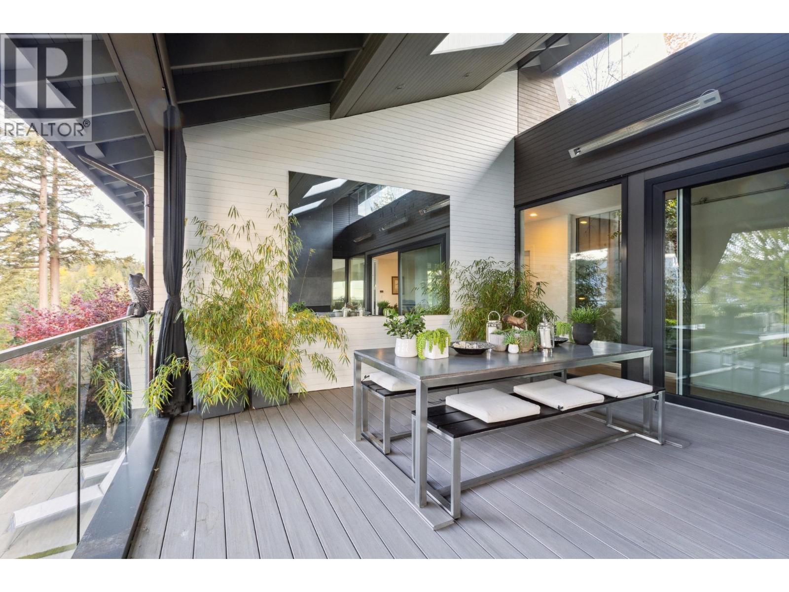 Designed by acclaimed architect Randy Bens, this remarkable 4-bedroom, 4-bath modern home blends light, nature, and design in perfect harmony. Floor-to-ceiling glass frames breathtaking views of Vancouver Island, Howe Sound and Bowen Island, creating a seamless indoor-outdoor flow. A heated, covered terrace extends living and entertaining year-round, while solar panels and smart batteries enhance sustainability. The open plan includes a chef´s kitchen, soaring great room, and multiple decks ideal for sunset gatherings. Set on a private, beautifully landscaped lot, this home offers quiet luxury and serenity just minutes from the city-a stunning retreat where architecture, ocean, and nature unite. (id:58403)