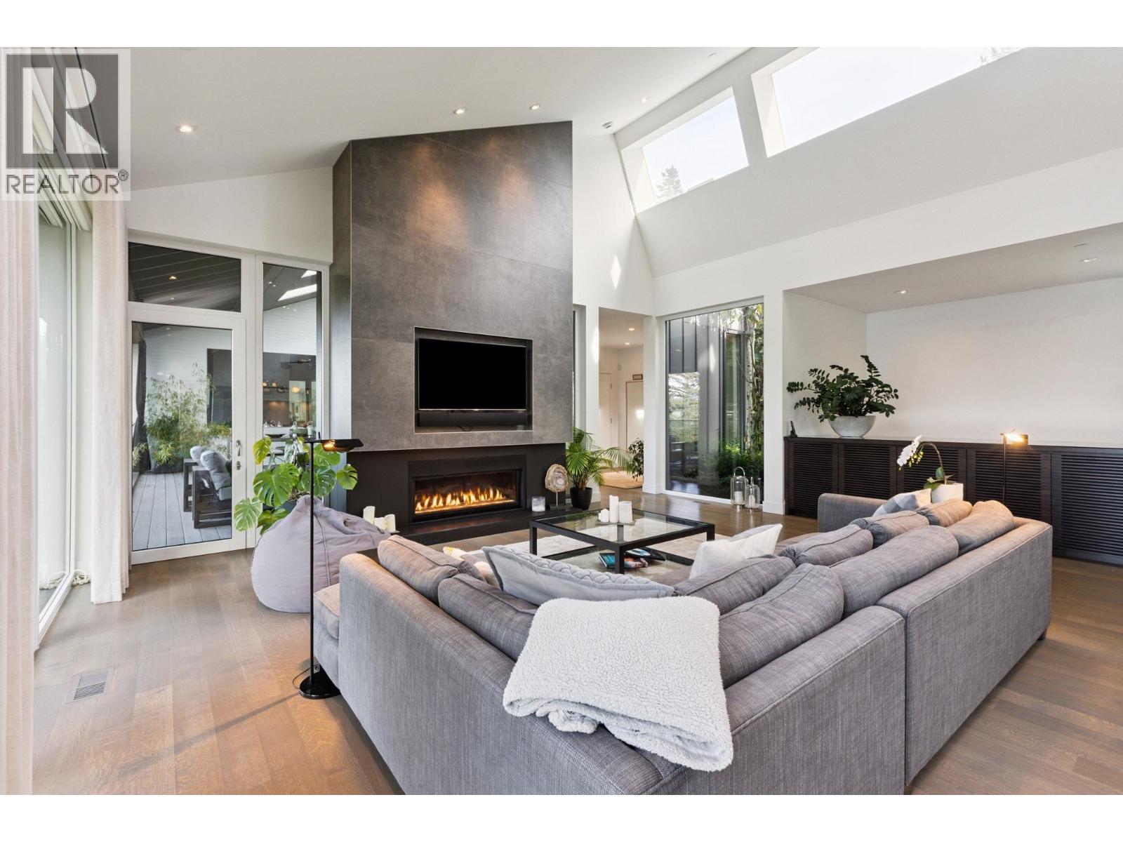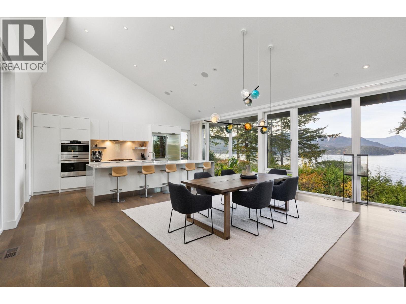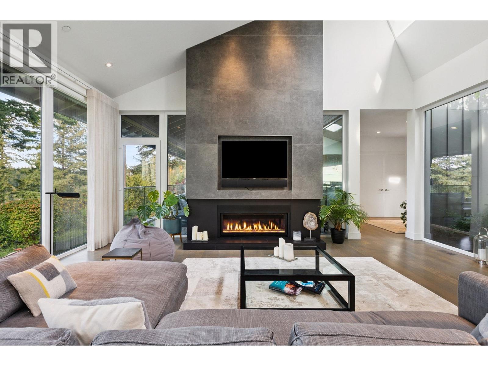 Designed by acclaimed architect Randy Bens, this remarkable 4-bedroom, 4-bath modern home blends light, nature, and design in perfect harmony. Floor-to-ceiling glass frames breathtaking views of Vancouver Island, Howe Sound and Bowen Island, creating a seamless indoor-outdoor flow. A heated, covered terrace extends living and entertaining year-round, while solar panels and smart batteries enhance sustainability. The open plan includes a chef´s kitchen, soaring great room, and multiple decks ideal for sunset gatherings. Set on a private, beautifully landscaped lot, this home offers quiet luxury and serenity just minutes from the city-a stunning retreat where architecture, ocean, and nature unite. (id:58403)