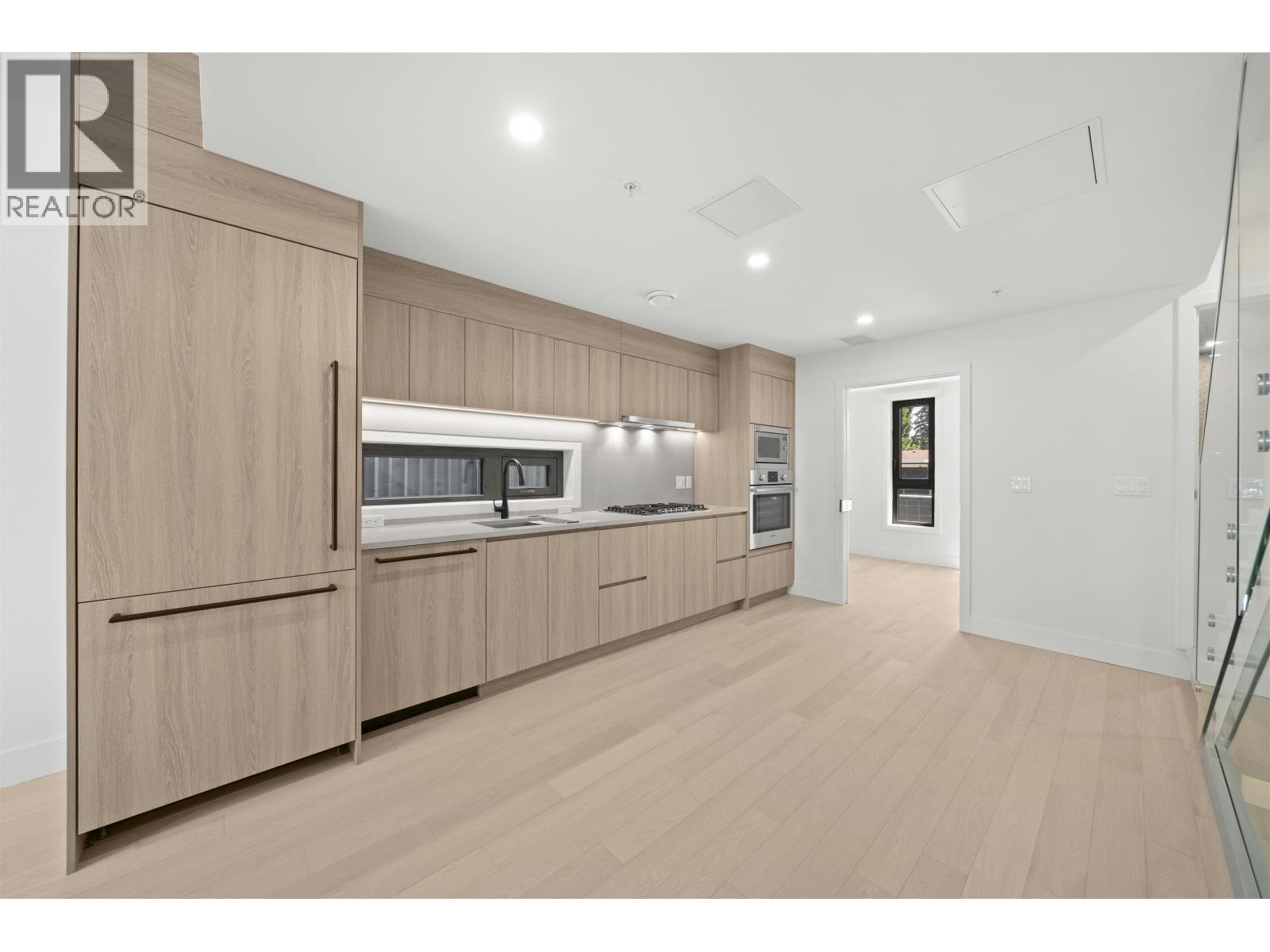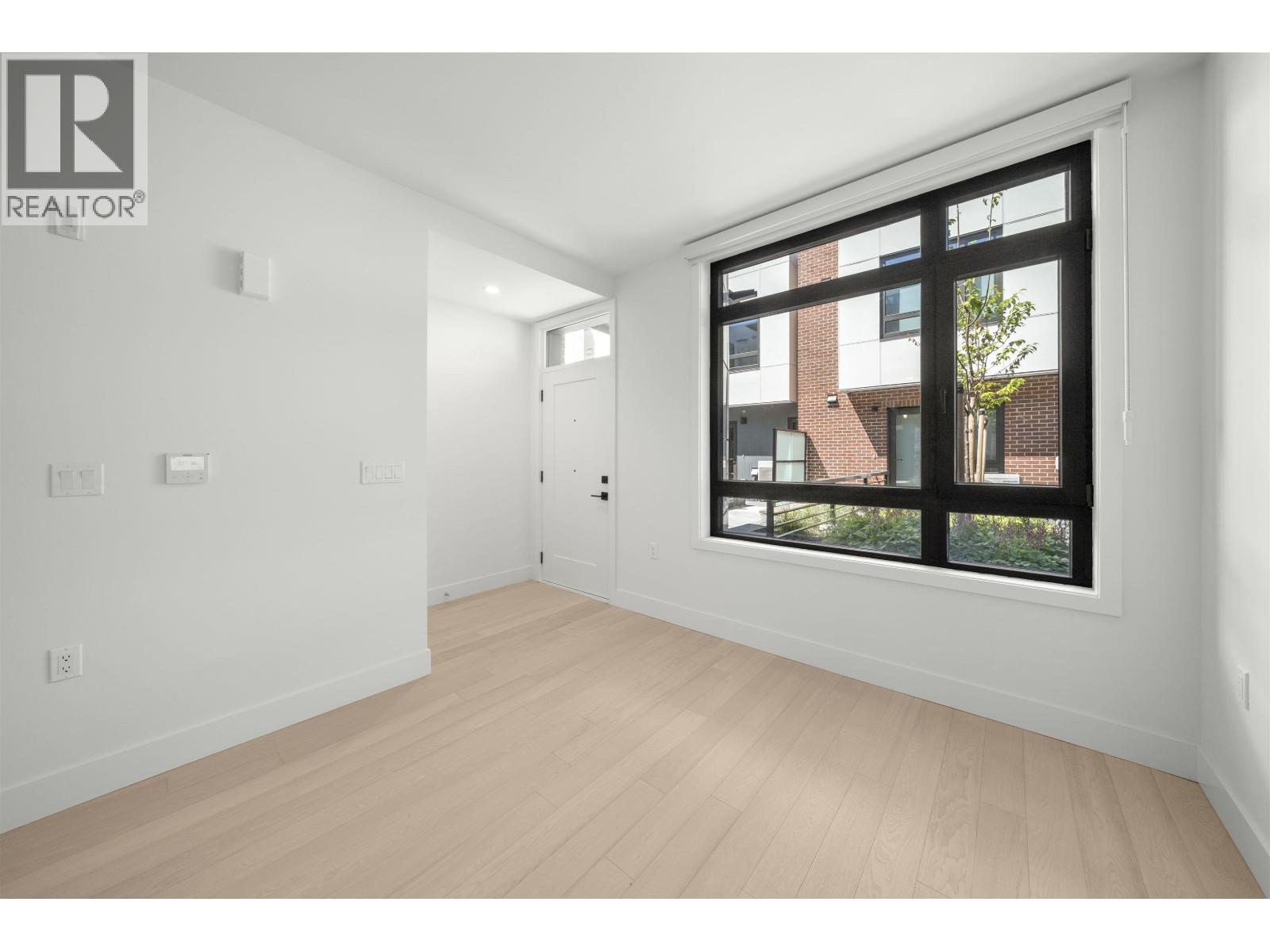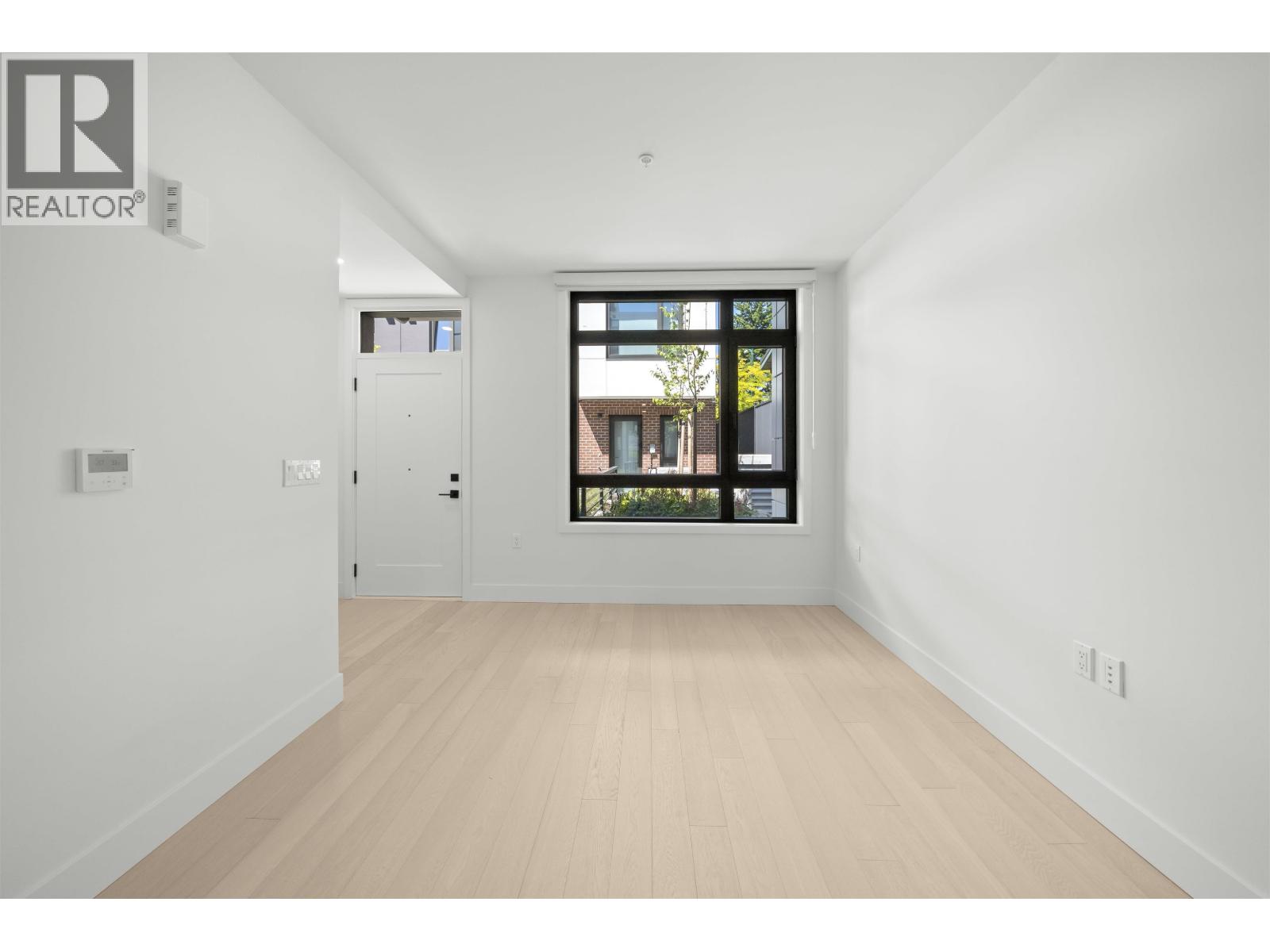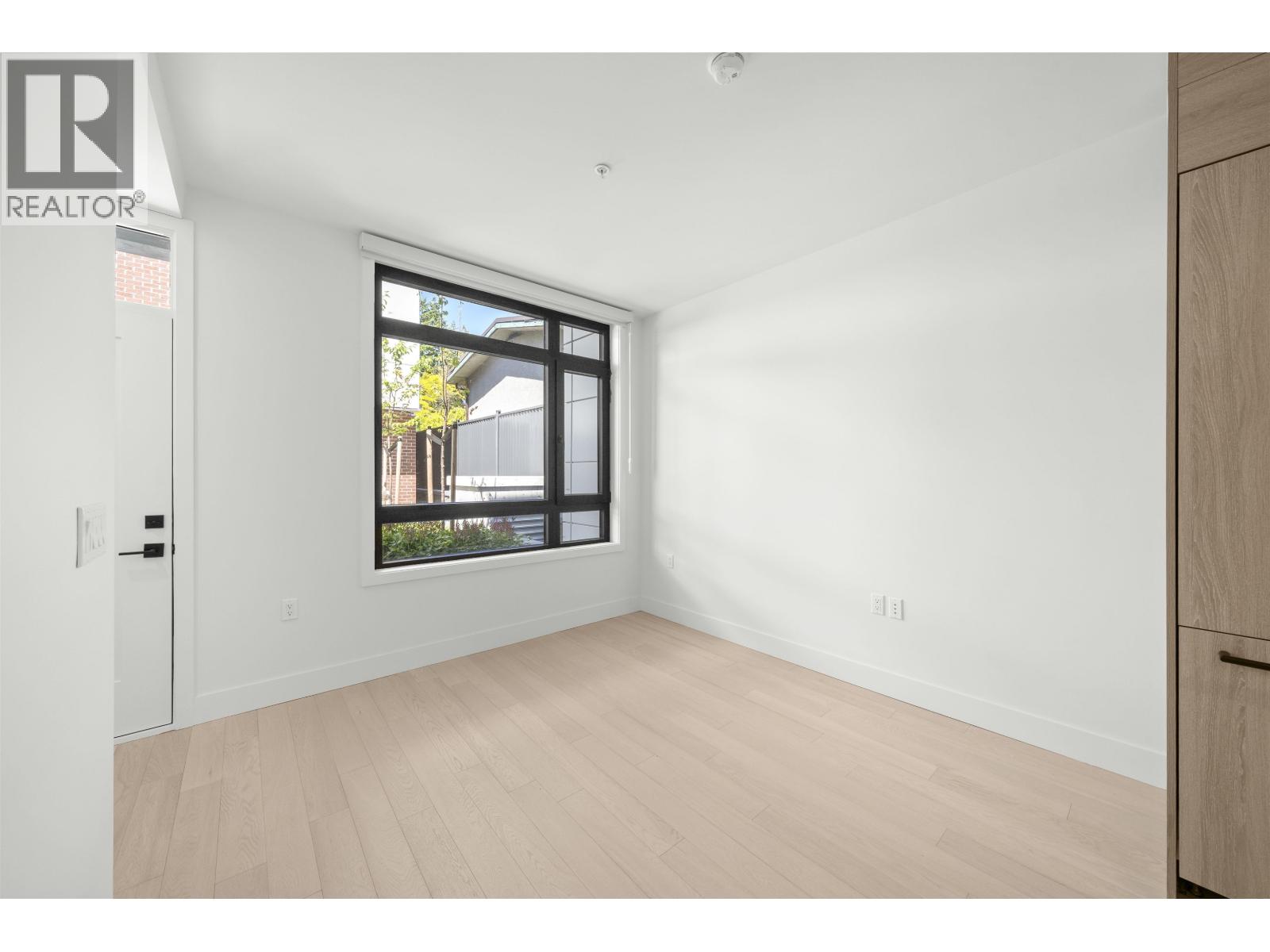 Welcome to WEST OAK by Shokai Properties - this stunning corner, east-facing townhome offers 2 Bedrooms, 3 Bathrooms + 2 Flex spaces in the heart of Oakridge. The main-floor den is large enough to serve as an additional bedroom and comes with a full bath - perfect for in-laws or guests. Enjoy entertaining on your expansive 259 sf private rooftop patio with city and neighborhood views. Designed for sophisticated living, this home features hardwood flooring throughout, fully tiled bathrooms, and a window niche in the kitchen that floods the space with natural light. Ideally located just steps from Oakridge Mall, the Canada Line SkyTrain, parks, restaurants, grocery stores, and top-rated schools - everything you need is within walking distance. 1 parking + 1 storage locker included. (id:58403)
