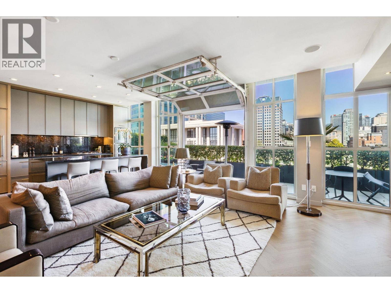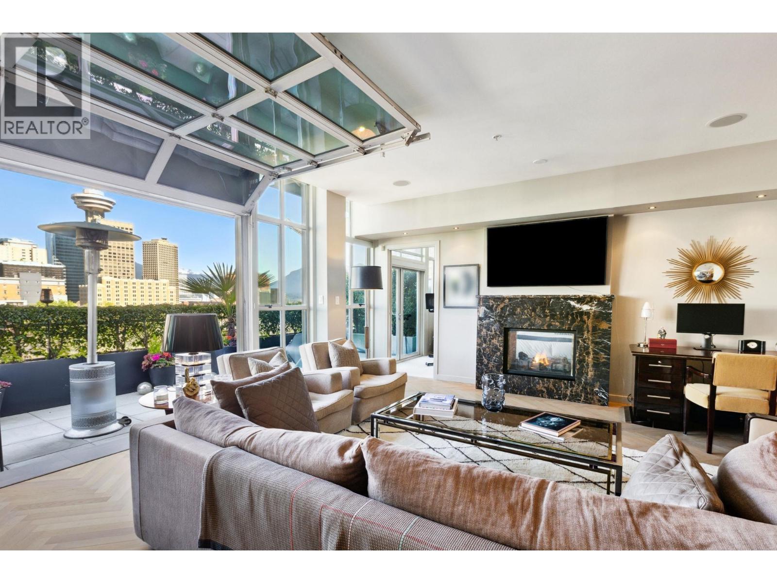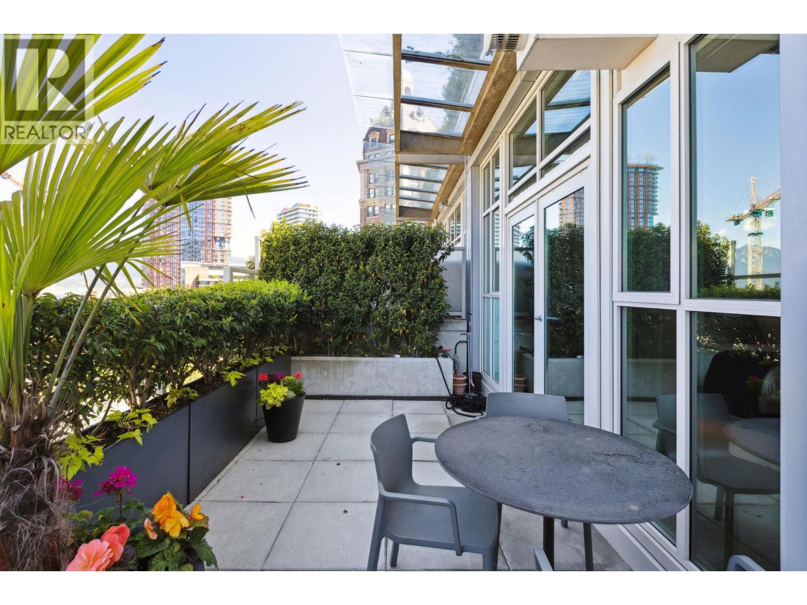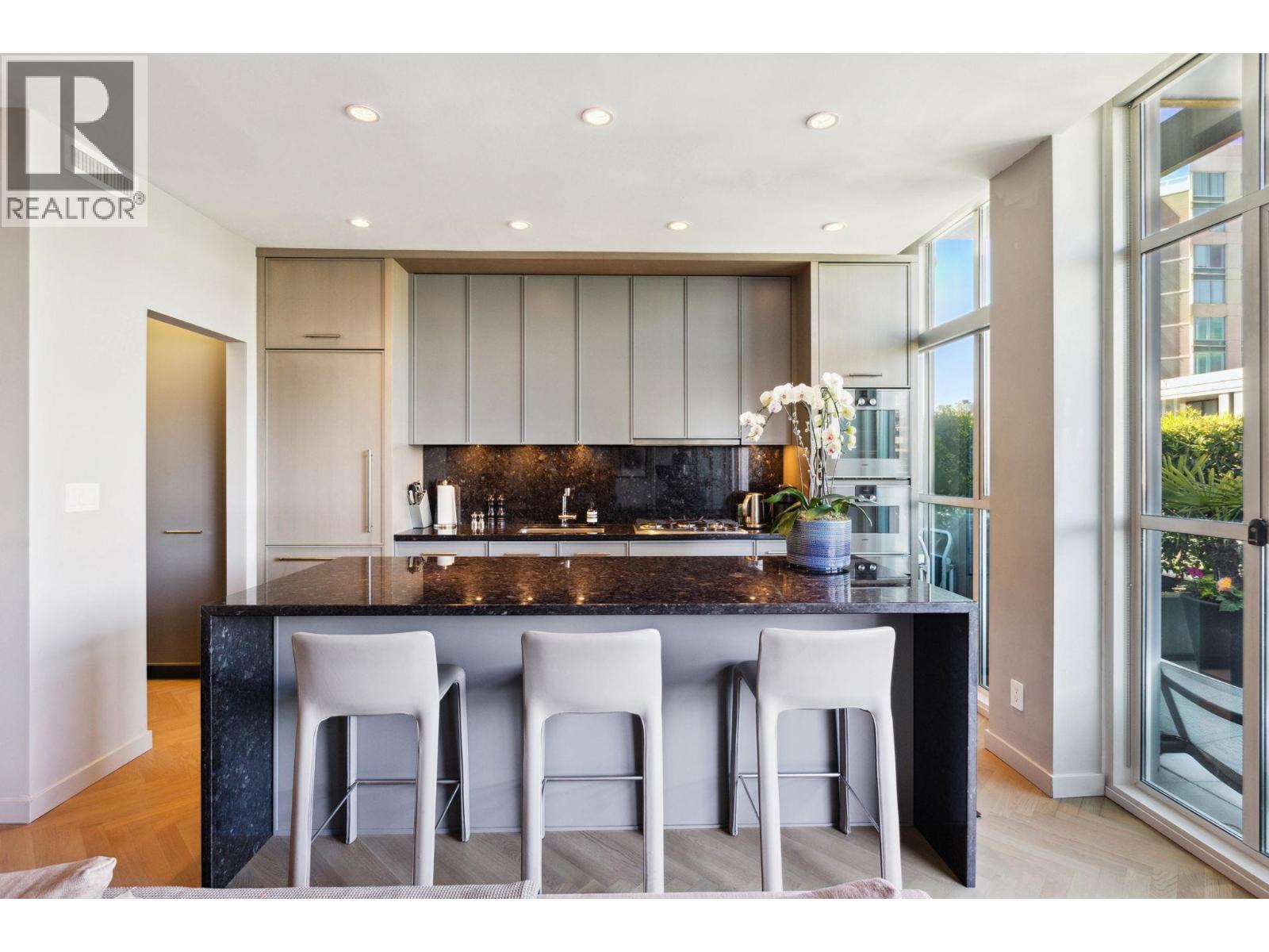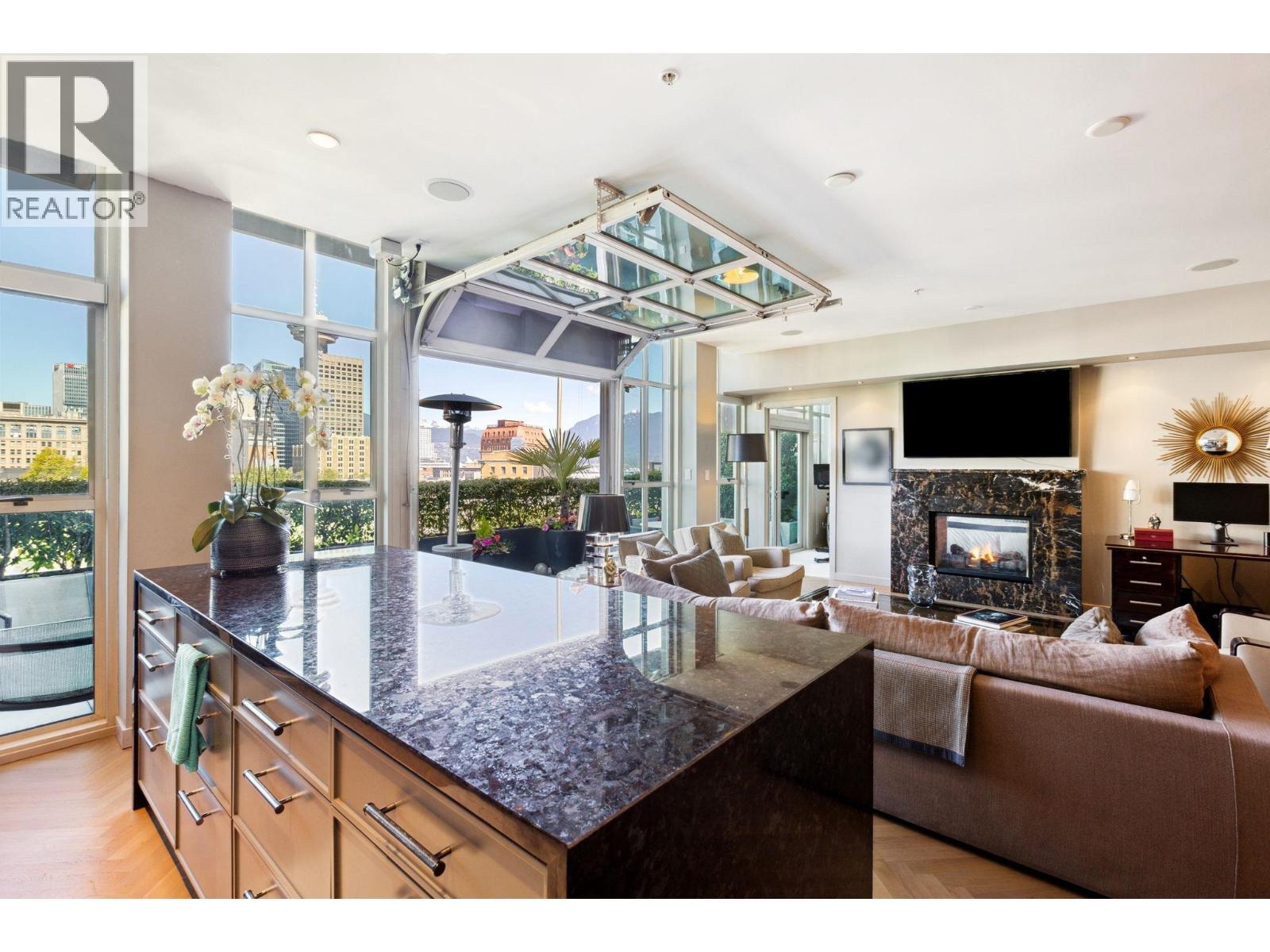 Experience elevated indoor-outdoor living at The Crane. This renovated sanctuary features a gourmet kitchen with Gaggenau/Subzero appliances, custom cabinetry, granite counters, and a wine fridge. A garage-style door opens to 300+ square ft of patio space. Inside, herringbone oak floors and a Murphy bed offer style and flexibility. The second bath includes a steam shower, while the spacious primary boasts a marble fireplace and spa-like ensuite with soaker tub and marble finishes. The 600+ square ft rooftop patio offers stunning North Shore and downtown views. (id:58403)