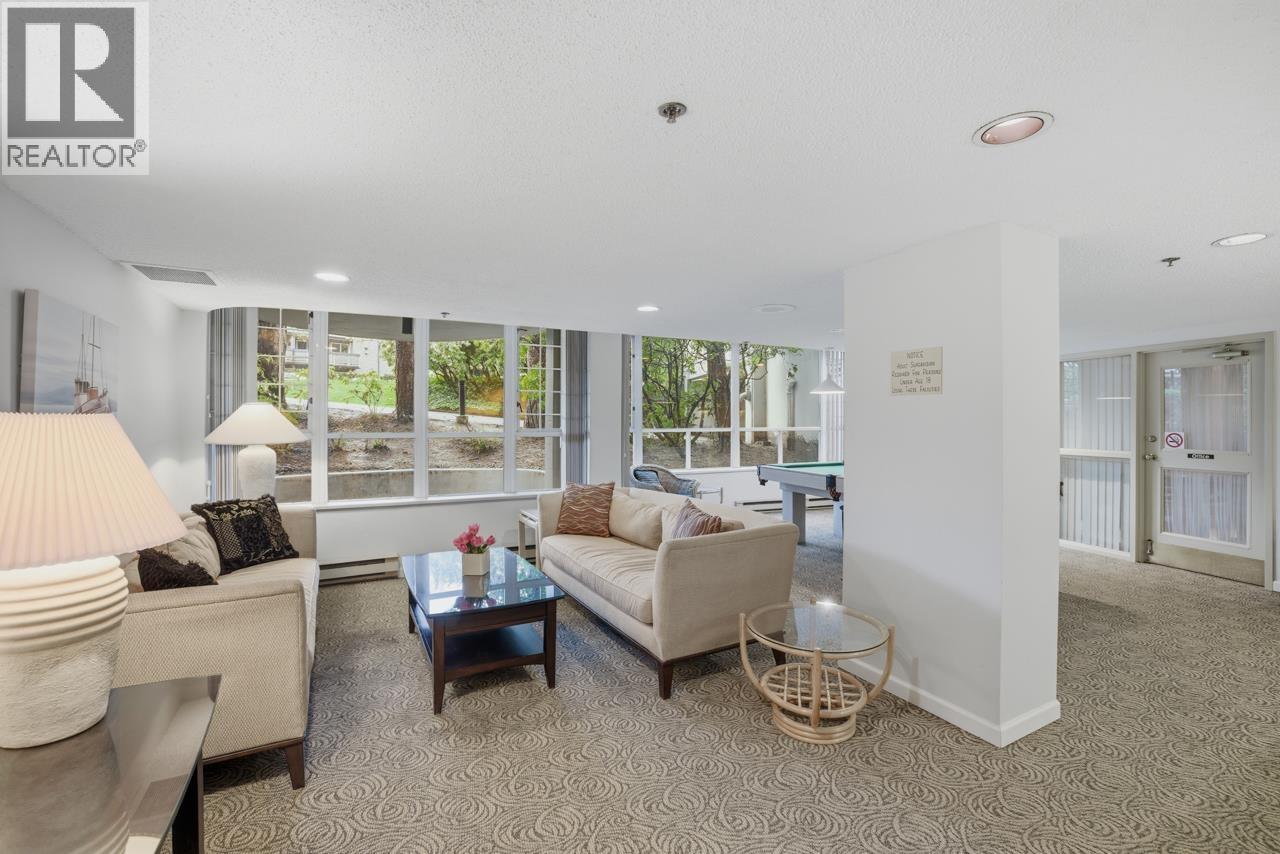 This elegant 2-bed, 2-bath home sits in a solid concrete building and comes with a big, breezy deck looking out to the evergreen slopes of Mt. Seymour. The space feels thoughtfully put together, with the kitchen at the centre, in-suite laundry, and a bonus space for storage or a cozy den. The building offers a gym, hot tub, common room, garden plots, large grounds, shared EV charging, and friendly neighbours with a proactive strata. The building was recently painted and has had the deck and parking membranes replaced. Includes 1 parking. Wheelchair accessible. 1 cat, 2 birds, fish allowed now! Steps to Parkgate Village, hiking trails, the local community centre and library, Seymour Golf Club and Northlands Golf. Open Houses: Thurs, April 16, 10-12pm; Sat, April 18 & Sund, April 19, 2-4pm. (id:58403)