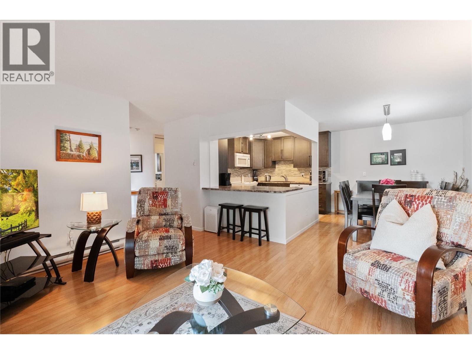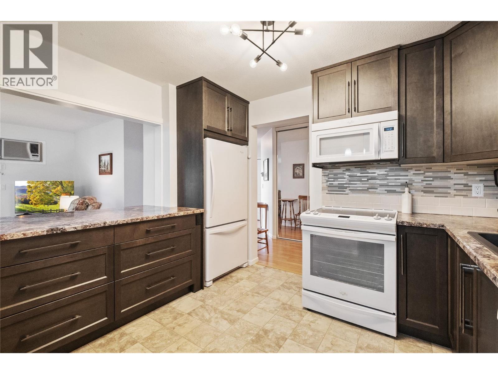 Top-floor unit at Peachtree Place Estates with 2 bedrooms and 2 full bathrooms. This home has been thoughtfully updated with new flooring, windows, and lighting, along with a redesigned kitchen featuring custom cabinets that extend to the ceiling and additional cabinetry topped by a wide countertop with seating. Take in the mountain views from the enclosed patio, updated with new energy-efficient windows and custom blinds, creating a cozy additional seating area. Ideally located across from Ben Lee Park and just steps to groceries and transit, this is an excellent choice for convenient, walkable living. Parking and storage locker included. Restrictions: Rentals allowed, cats allowed with restrictions, sorry no dogs. (id:58403)
