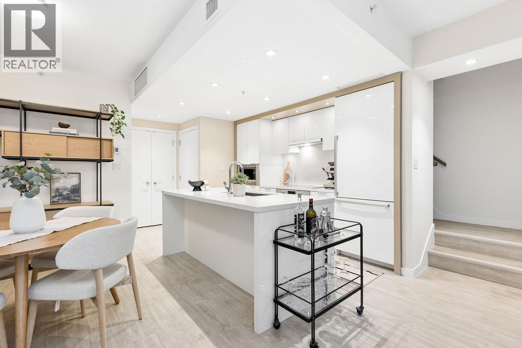 Welcome to this exceptional 2BED + DEN + FLEX TOWNHOME at VODA, a quality concrete building by CONCERT. With a PRIVATE ENTRANCE, this home spans two levels, providing separation between living and sleeping areas. Open-concept main floor features chef-inspired kitchen, OVERSIZE ISLAND with counter seating, bright living and dining areas which flow out to your PRIVATE PATIO. Unwind upstairs in your primary suite with walk-through closet & SPA-LIKE ENSUITE. The 2nd bedroom perfect for home office or guests. Soak in the sunset from your PRIVATE COVERED BALCONY. Enjoy year round comfort with AIR-CONDITIONING & premium amenities incl full-time CONCIERGE, FULLY EQUIPPED GYM, lounge, & rooftop deck with gardens. Just steps to the SEAWALL, SKYTRAIN, breweries, cafés, and restaurants. Includes 1 parking. (id:58403)