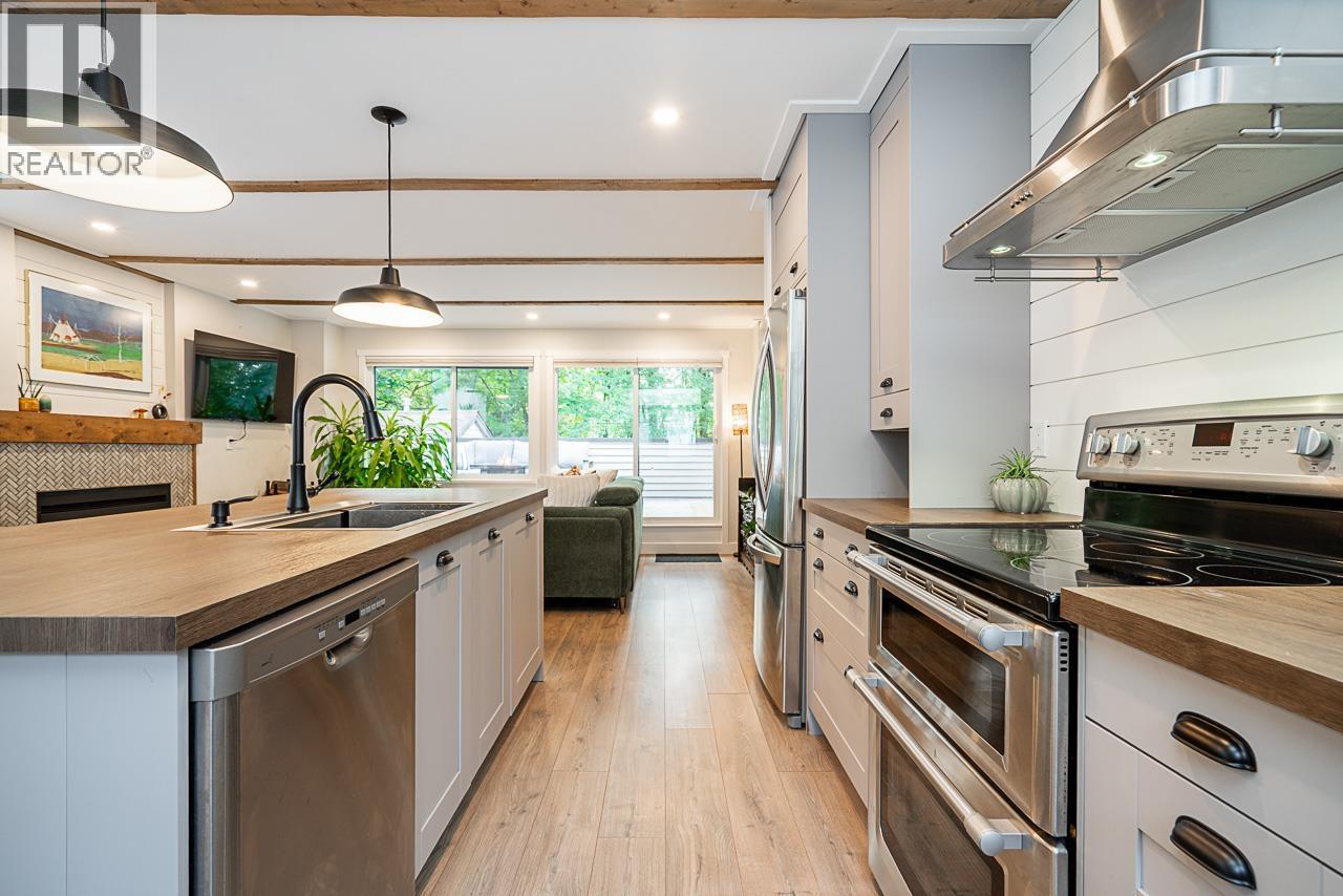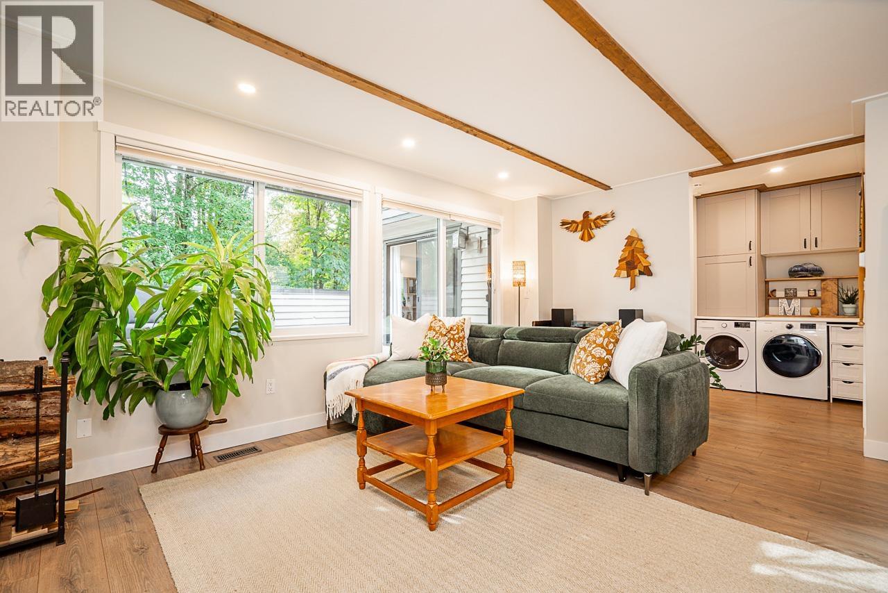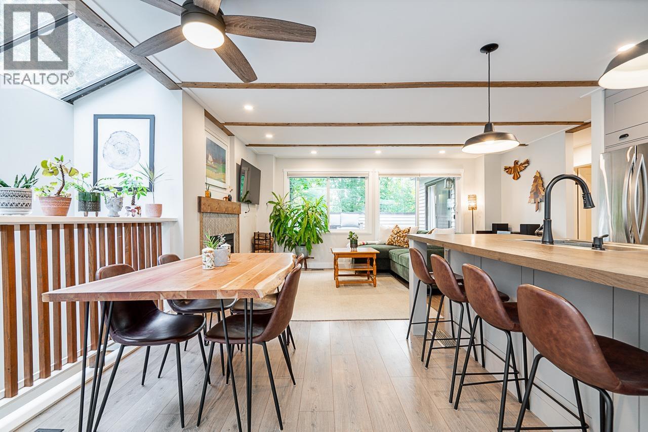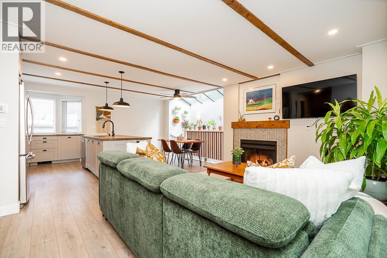 Your Trailside Sanctuary Awaits in Simon Fraser Village! Discover the perfect combination of mountain serenity and urban convenience in this single-level townhome. This beautiful, quiet end-unit property is your private retreat, featuring a large, South-facing deck overlooking a peaceful greenbelt-ideal for relaxing or entertaining in your own nature-filled escape. Inside, this bright and spacious 2-bedroom home is filled with natural light from a skylight and new, expansive windows and sliding doors throughout. The thoughtful, single-level layout is both functional and welcoming, with an open-concept living area that flows effortlessly to the outdoors. You'll appreciate the modern touches, including stainless steel appliances and a warm fireplace to cozy up to on winter nights. The community features a pool, sauna, and squash court. Enjoy an unbeatable location directly across from Forest Grove Elementary, surrounded by hiking trails, and moments from golf, SFU, shopping, and SkyTrain. Pets welcome! (id:58403)