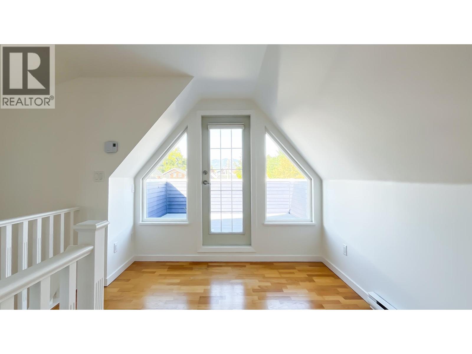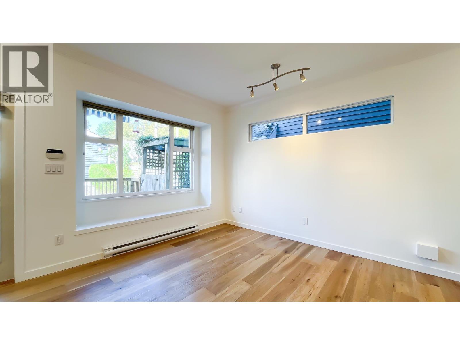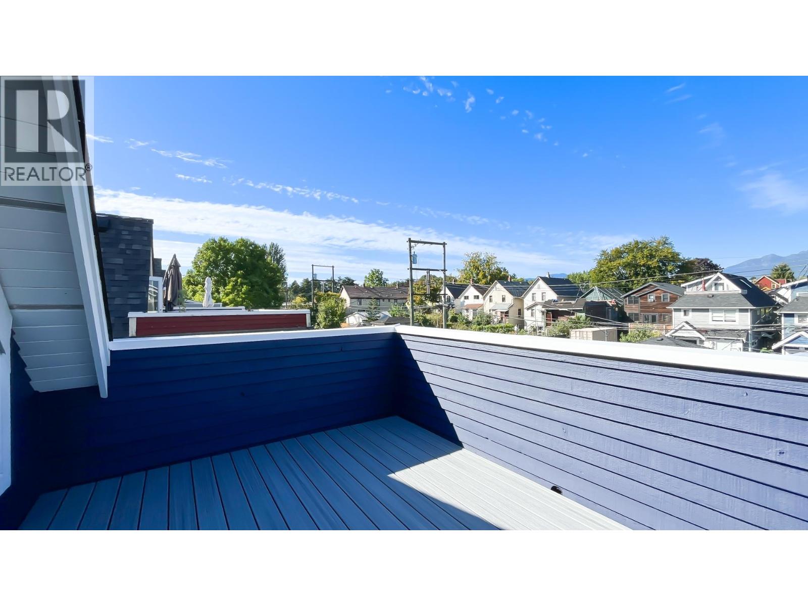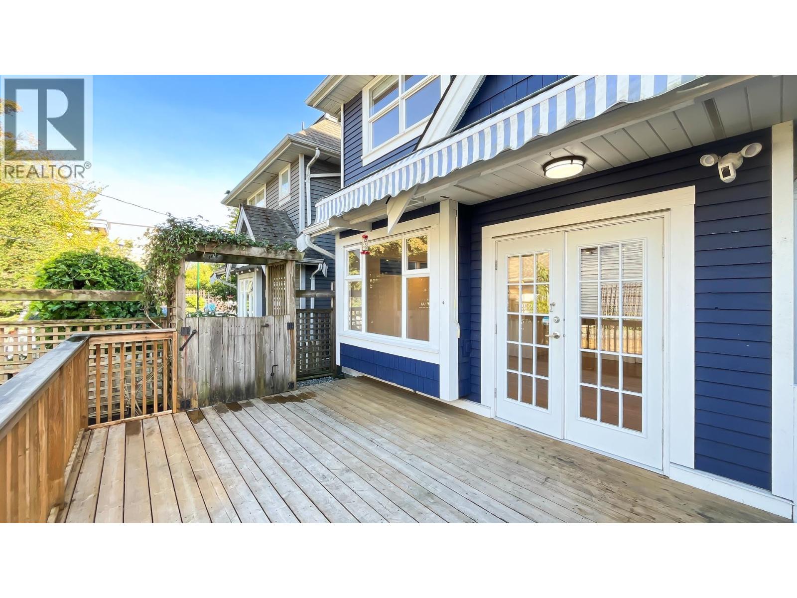 NO STRATA FEES for this 1/2 Duplex on this quiet, peaceful rear facing lot. Beautiful Oak Hardwood floors throughout, featuring french doors through to a private deck and fenced yard with garden. Great for children, pets or entertaining. 2Bed/2bath home with ensuite in master bedroom. Master features a large walk-in closet. The top floor includes a den, or 3rd bedroom, that leads to a gorgeous rooftop deck with stunning mountain views. Recently Remodeled kitchen and tastefully painted throughout. Single car garage with lane access includes lots of storage space. Only 3 blocks from the new St. Paul's hospital. This home is surrounded by parks, schools and local shops and cafes. (id:58403)