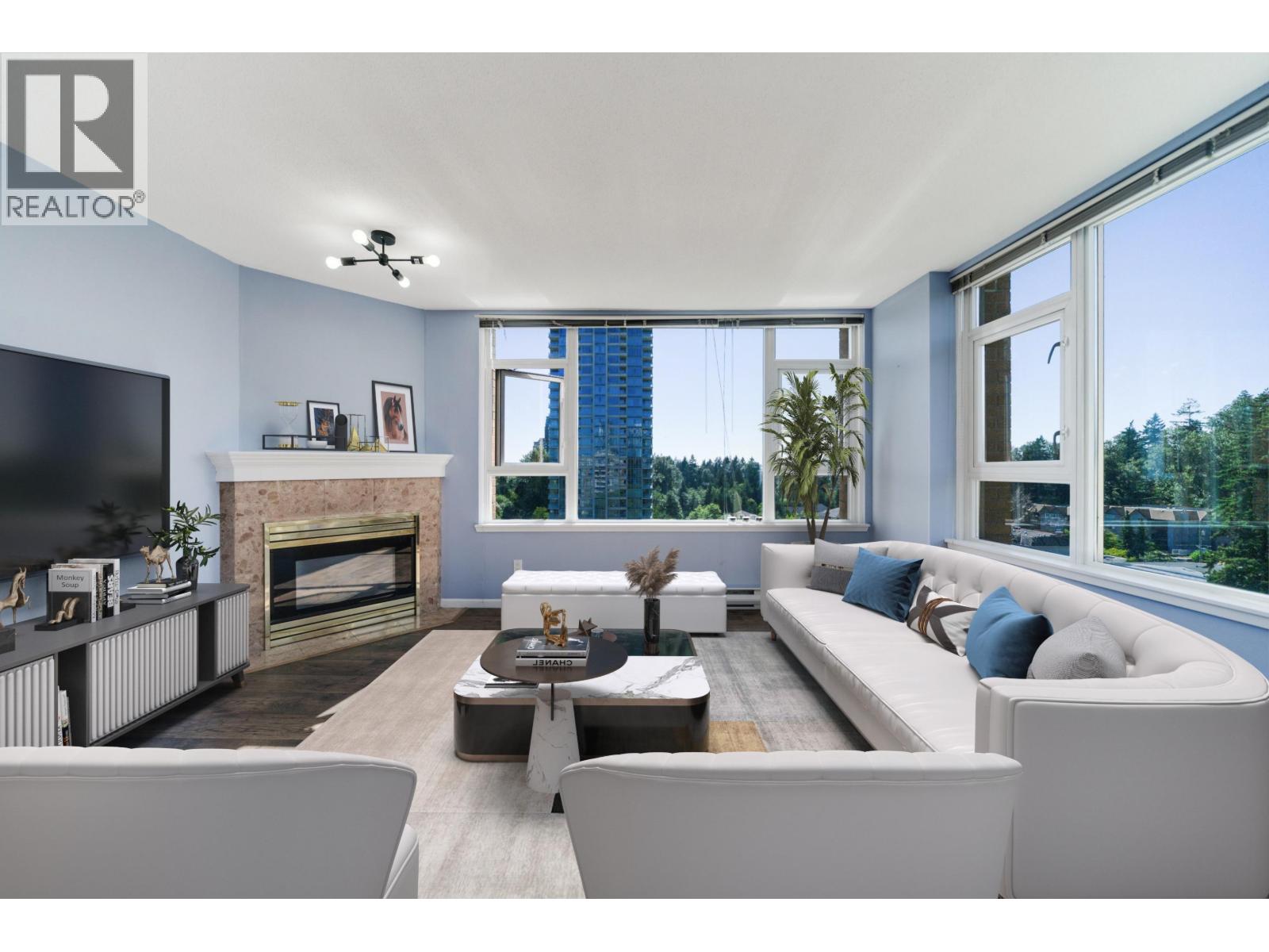Welcome to your Sub-penthouse home at "The Parkhill" - A concrete BOSA building. This bright & spacious 2-bed, 2-bath home features stunning sunset views and a large covered balcony (24'x7'). The NW corner unit home boasts floor-to-ceiling windows, generously sized rooms, updated kitchen with newer appliances, new bathroom vanities, fresh paint, high-end flooring, in-suite laundry, & gas fireplace. Includes 1 parking, in-suite storage, + oversized storage locker. Perfect walkability to SkyTrain & Highgate Village (500m), Edmonds CC. Building amenities: bike room, sauna, exercise room, party room & EV charging. Recent building updates include rainscreen, windows, refreshed lobby/common areas, plumbing upgrades, roof, and new elevators already paid for(2026). OPEN HOUSE SUN NOV 9th 1-3PM (id:58403)