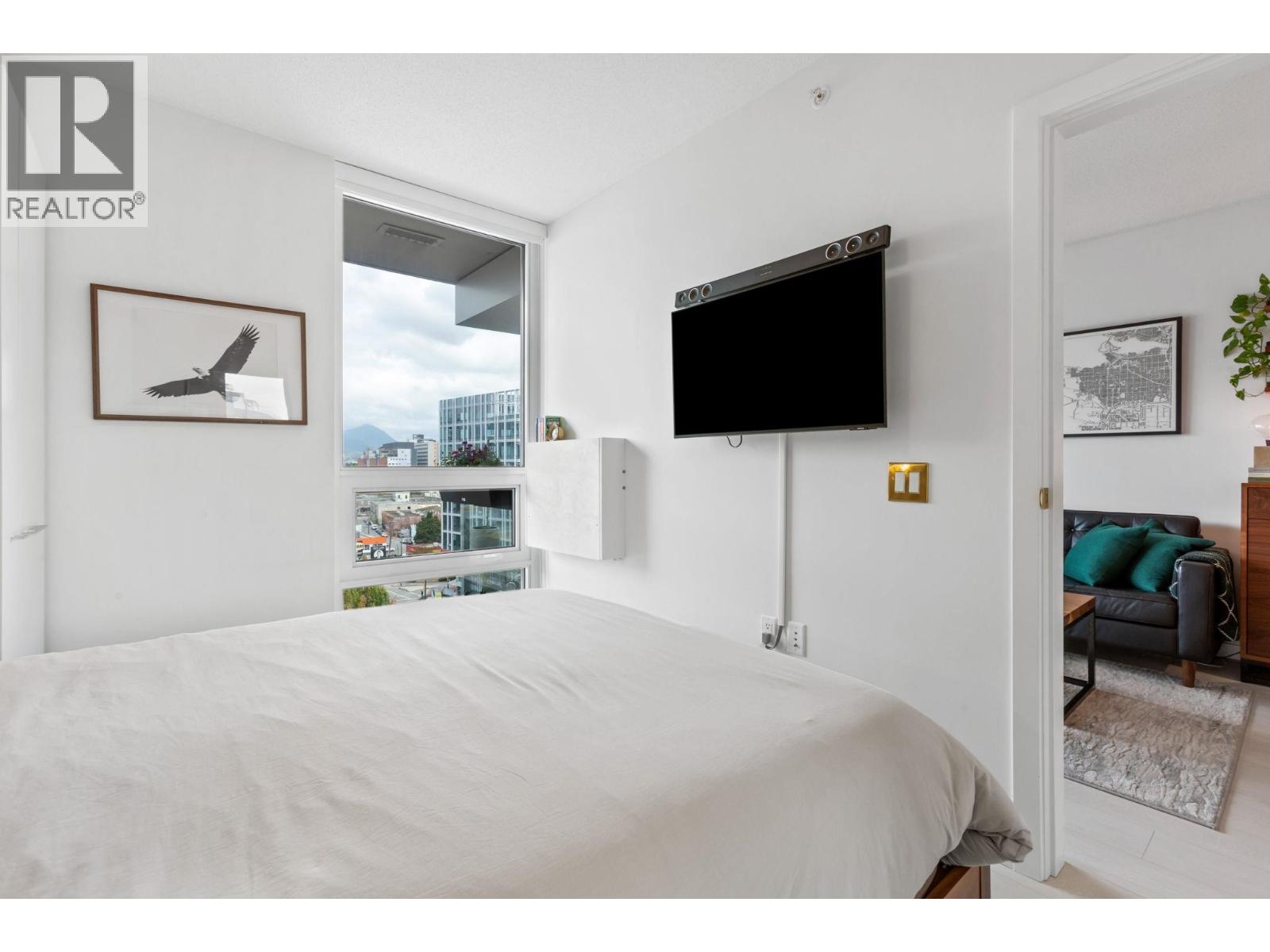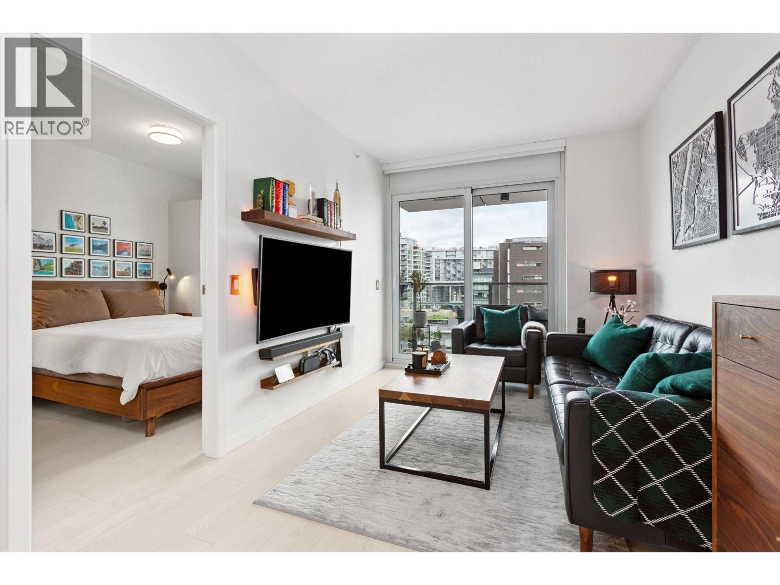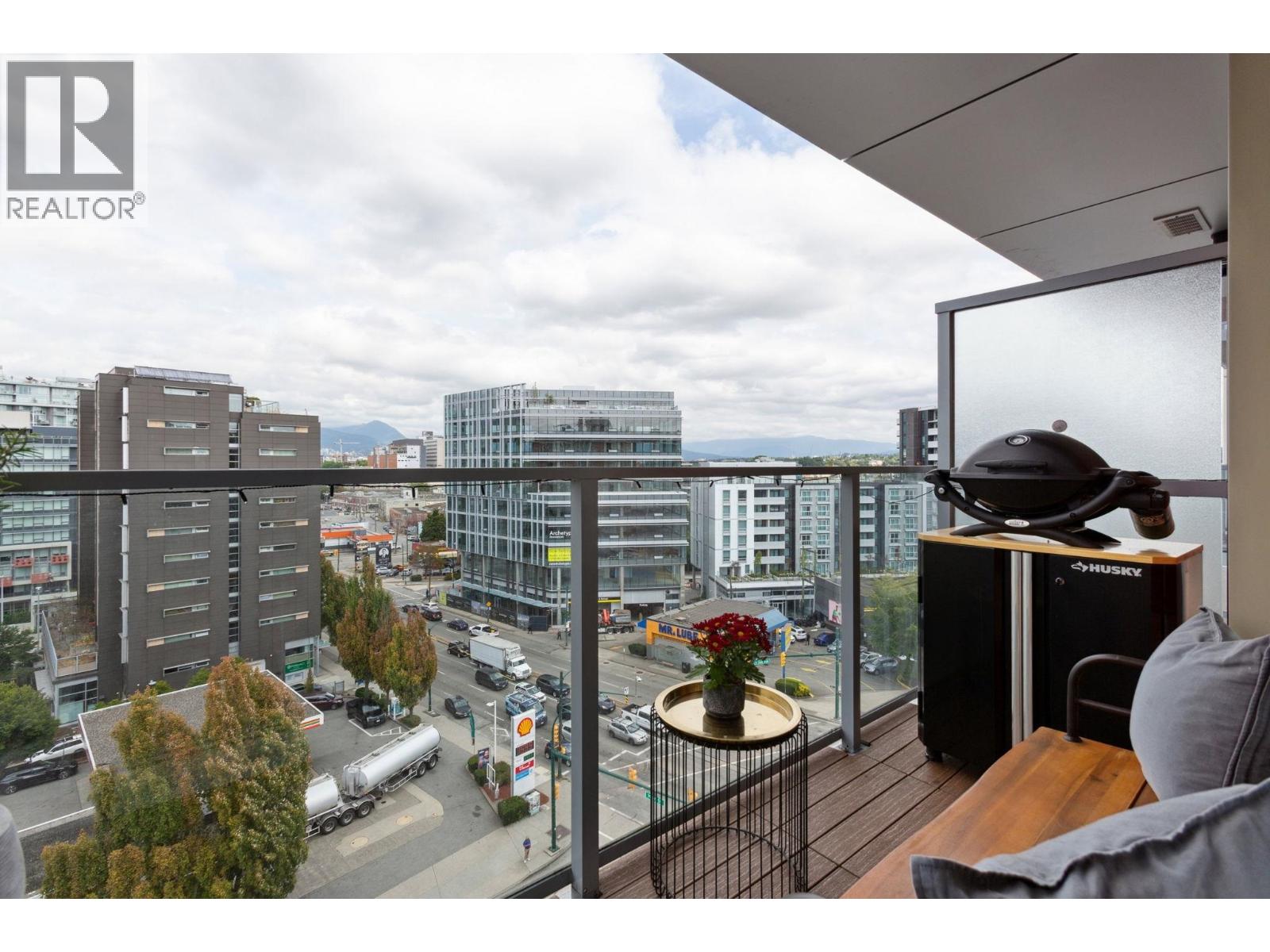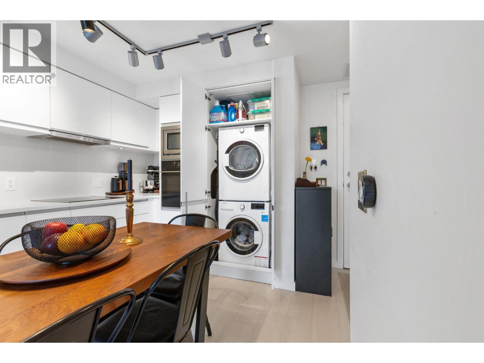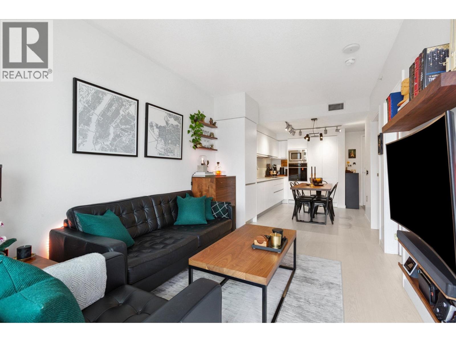 Super functional and bright 1 bed & den in a nearly new air-conditioned boutique building in Mount Pleasant/Olympic Village with city and mountain views! The sleek kitchen is equipped with integrated Liebherr/Porter&Charles appliances, stone counters and plenty of storage space, flowing on durable laminate flooring into the living room & covered balcony. The spacious bedroom features custom built-ins & large window inviting exciting city lights. This meticulously maintained home features roller blinds and many thoughtful upgrades throughout. Building amenities include a fitness centre, party room and rooftop deck with BBQ, dining areas, lounges & garden plots. Steps to SkyTrain, breweries, SeaWall, community centre, shopping, cafes & Emily Carr. (id:58403)