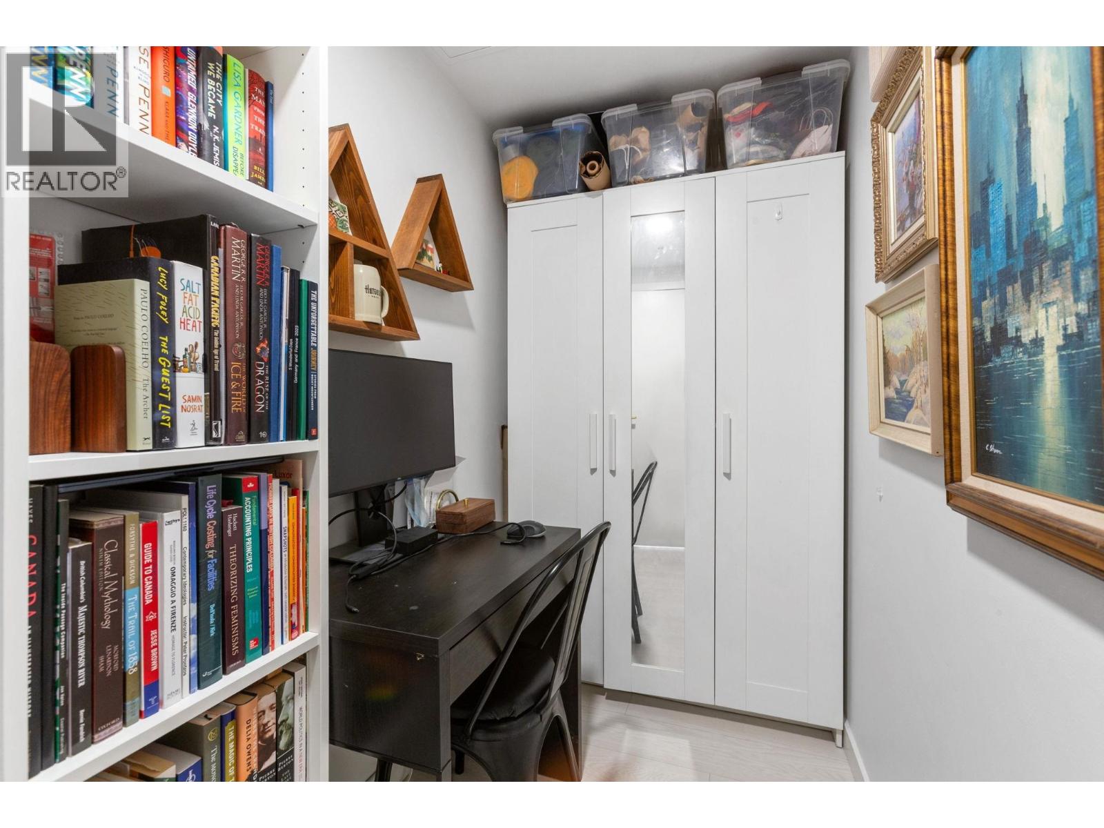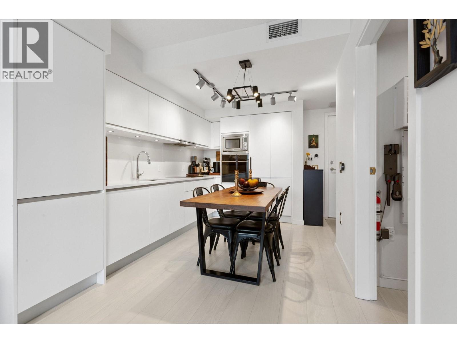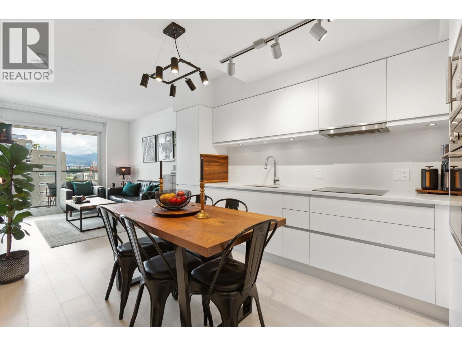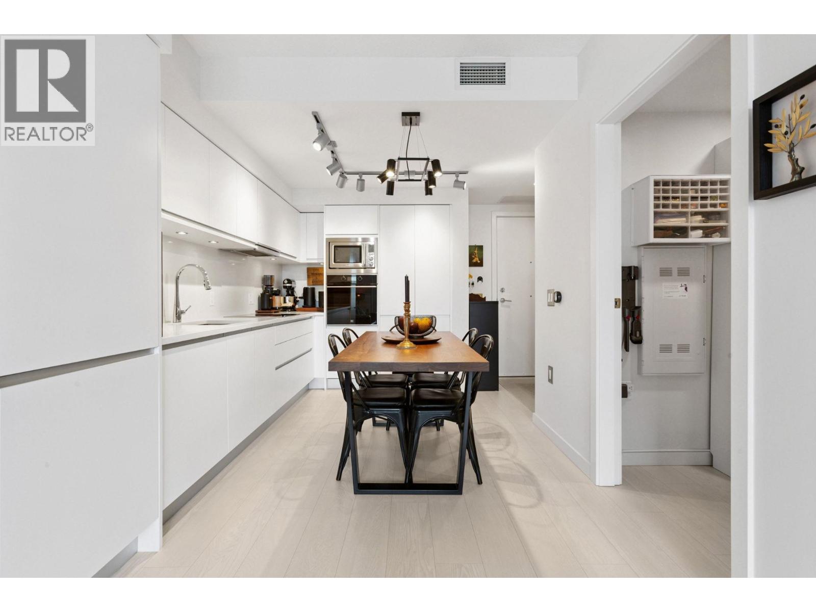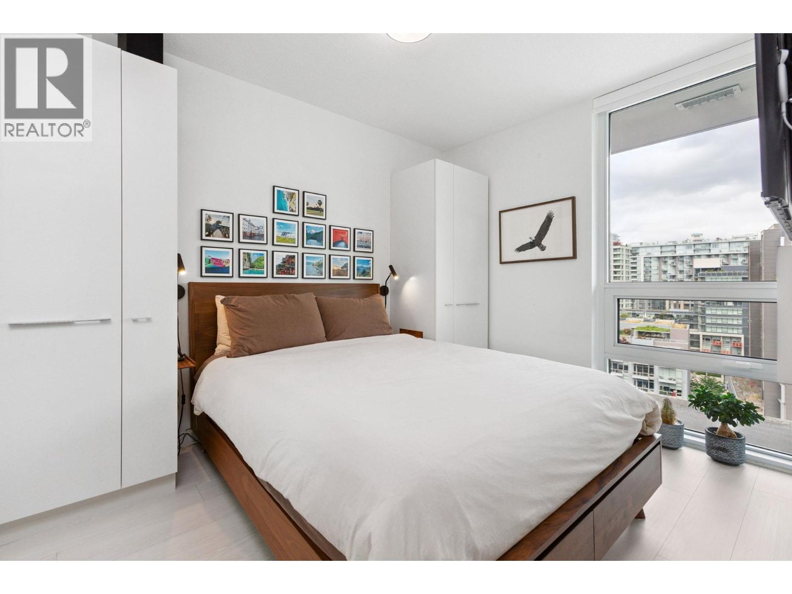 Super functional and bright 1 bed & den in a nearly new air-conditioned boutique building in Mount Pleasant/Olympic Village with city and mountain views! The sleek kitchen is equipped with integrated Liebherr/Porter&Charles appliances, stone counters and plenty of storage space, flowing on durable laminate flooring into the living room & covered balcony. The spacious bedroom features custom built-ins & large window inviting exciting city lights. This meticulously maintained home features roller blinds and many thoughtful upgrades throughout. Building amenities include a fitness centre, party room and rooftop deck with BBQ, dining areas, lounges & garden plots. Steps to SkyTrain, breweries, SeaWall, community centre, shopping, cafes & Emily Carr. (id:58403)