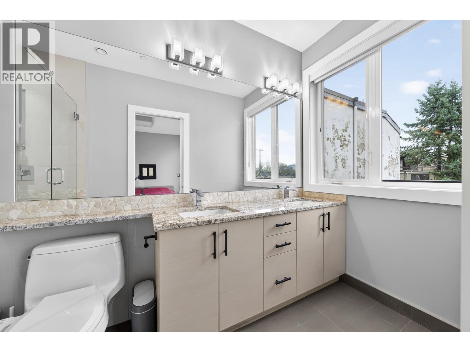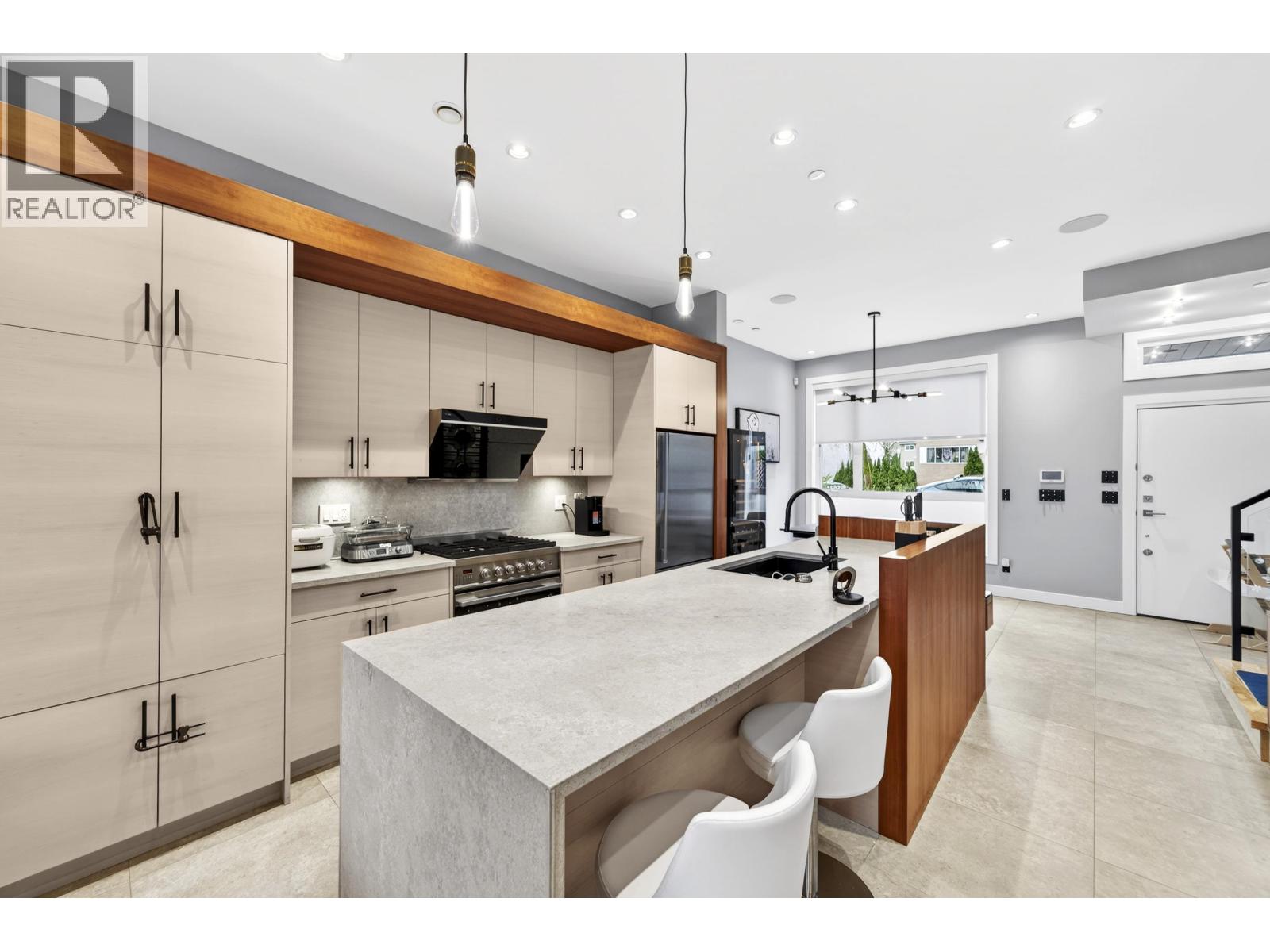Modern luxury meets thoughtful design in this beautifully crafted, energy-efficient home with south-facing exposure. Featuring soaring ceilings, custom maple & cherry wood millwork, Italian tile accents & a striking 50" linear electric fireplace, the bright open main floor is both elegant & inviting. Gourmet granite kitchen with high-end appliances, custom cabinetry & oversized island. 3 spacious bedrooms & 2 baths upstairs. Enhanced comfort with radiant in-floor heating, A/C, HRV, water filtration system & built-in stair lighting. Legal 1 bedroom suite with high quality finishes. Enjoy seamless indoor-outdoor living with multiple balconies and a private, low-maintenance outdoor space with BBQ area. Close to shopping, parks, and top schools. (id:58403)