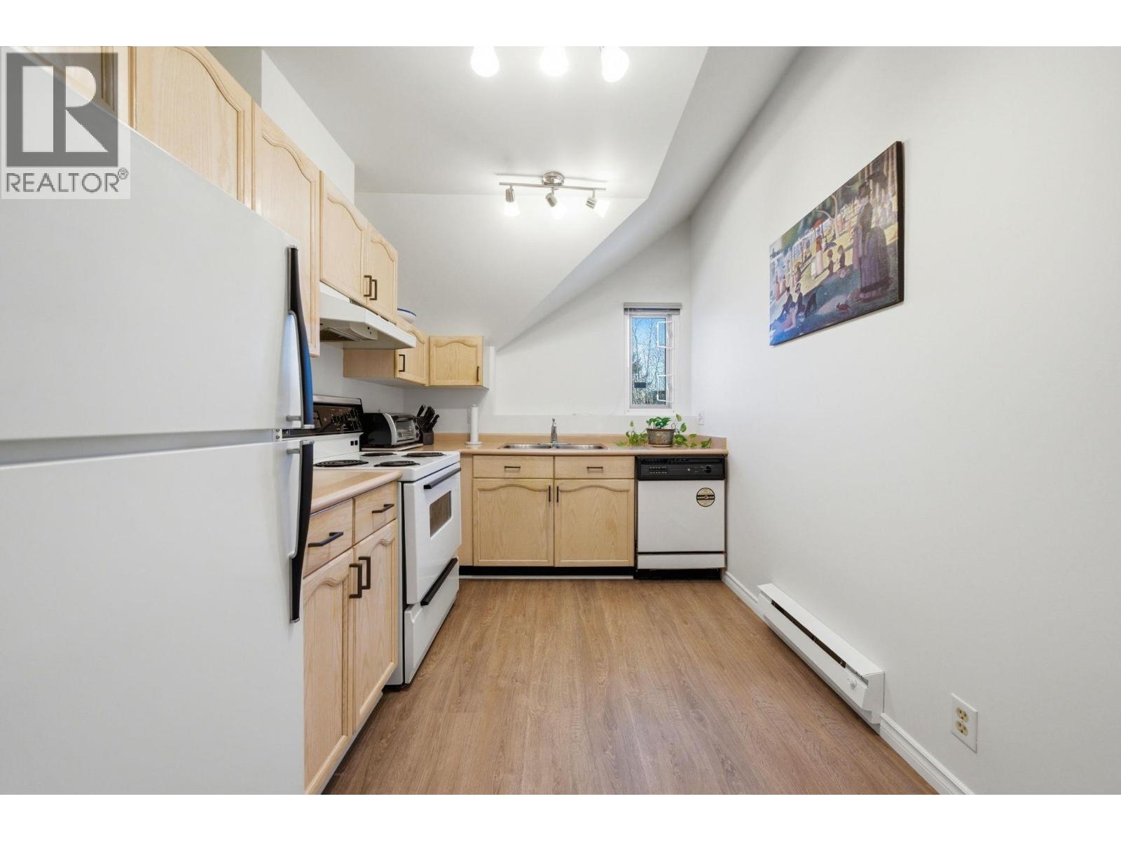 Penthouse living just steps from Trout Lake. Located on a tree-lined street near transit, restaurants, and shopping, this freshly painted and spacious home offers bright, top-floor living in one of Vancouver´s most walkable locations. Featuring three skylights, a 12' vaulted ceiling, and both east and west exposures, the space is filled with natural light. Enjoy the functionality of in-suite laundry and ample storage, along with the charm of a gas fireplace and a mountain view from the balcony. Cared for by its sole owner for over three decades, this home is part of a highly proactive strata with significant building upgrades completed over the past decade. Open House-Thursday April 2nd 5-6PM, Saturday April 4th 2-4PM. (id:58403)