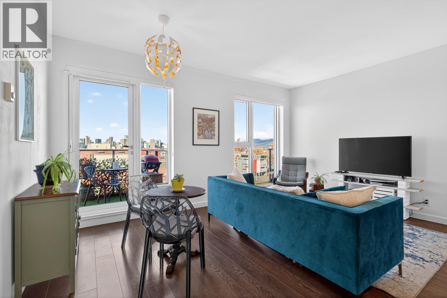 Rare Penthouse opportunity at stylish Strathcona Village! This exceptional 1-bedroom + flex home features breathtaking city, water, and mountain views, plus an efficient open-concept layout with no wasted space! Contemporary finishes includes quartz countertops, s/s appliances, and sleek modern cabinetry. Enjoy excellent amenities inc fully equipped fitness centers, party & meeting rooms and rooftop terraces with panoramic views of the North Shore Mountains. Ideally located in vibrant East Vancouver, just minutes to downtown and Commercial Drive, with popular cafés, restaurants, and daily conveniences nearby. Includes 1 parking stall! *OPEN HOUSES; Mar 21&22: 2-4PM* (id:58403)