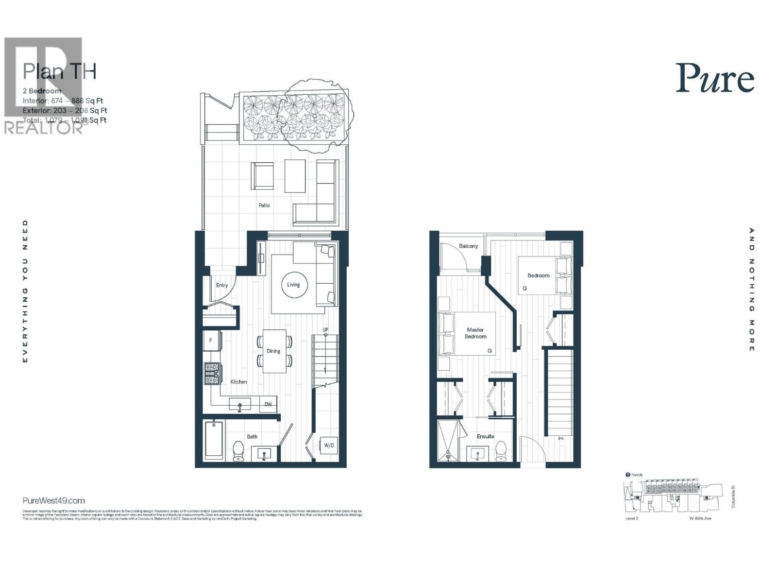 Introducing Pure, a 'biophilic centered' designed condo development with pure intention. Pure is centrally located at 49th & Columbia, across from the popular Langara Park, in the West Side´s rapidly evolving Cambie corridor. Coming home never felt this good. Comfort and functionality have been prioritized above all else. Our homes offer two nature infused colour palettes inspired by water and earth that give interiors a warm, seamless feel. This concrete Townhome plus EV ready parking features 2bed2bath on 2 levels. Easy access to your storage room which is conveniently located on the same floor. Contact us for our buyer's incentives. Completion Spring 2026 (id:58403)